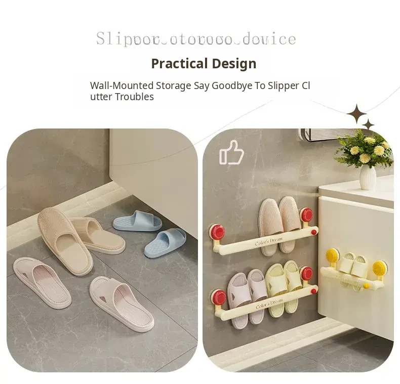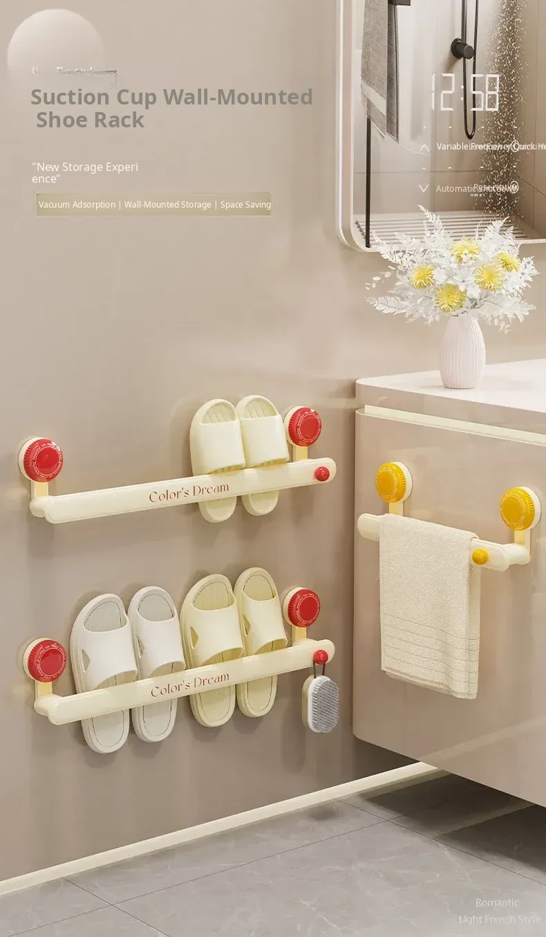 Suction Cup Bathroom Slipper Rack - No Drill Wall-Mounted Storage Solution for Home, Multi-Functional Drainage Organizer for Toilets and Showers, Keep Your Bathroom Tidy and Stylish!
