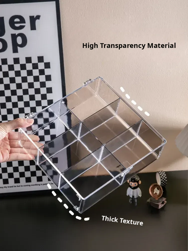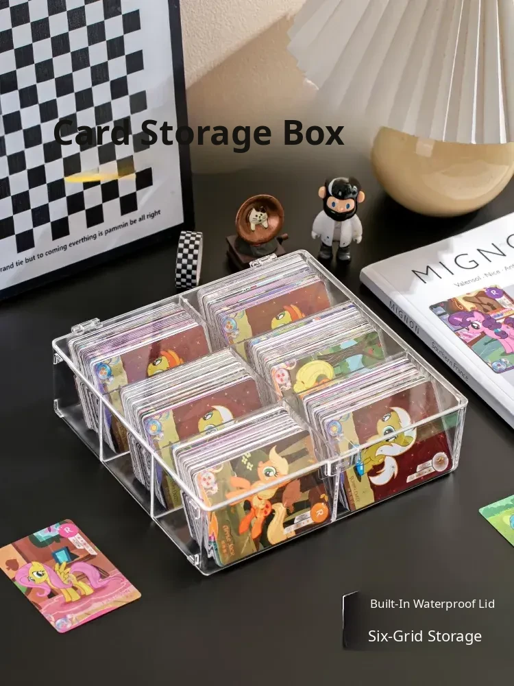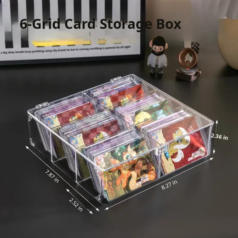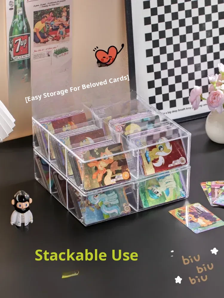 Transparent Card Storage Box with Lid - Large Capacity Organizer for Collectible Star Cards, Dustproof Design, and Divided Compartments for Desktop Use