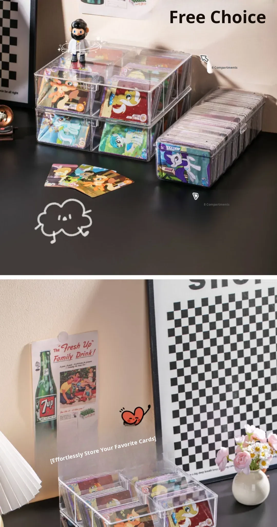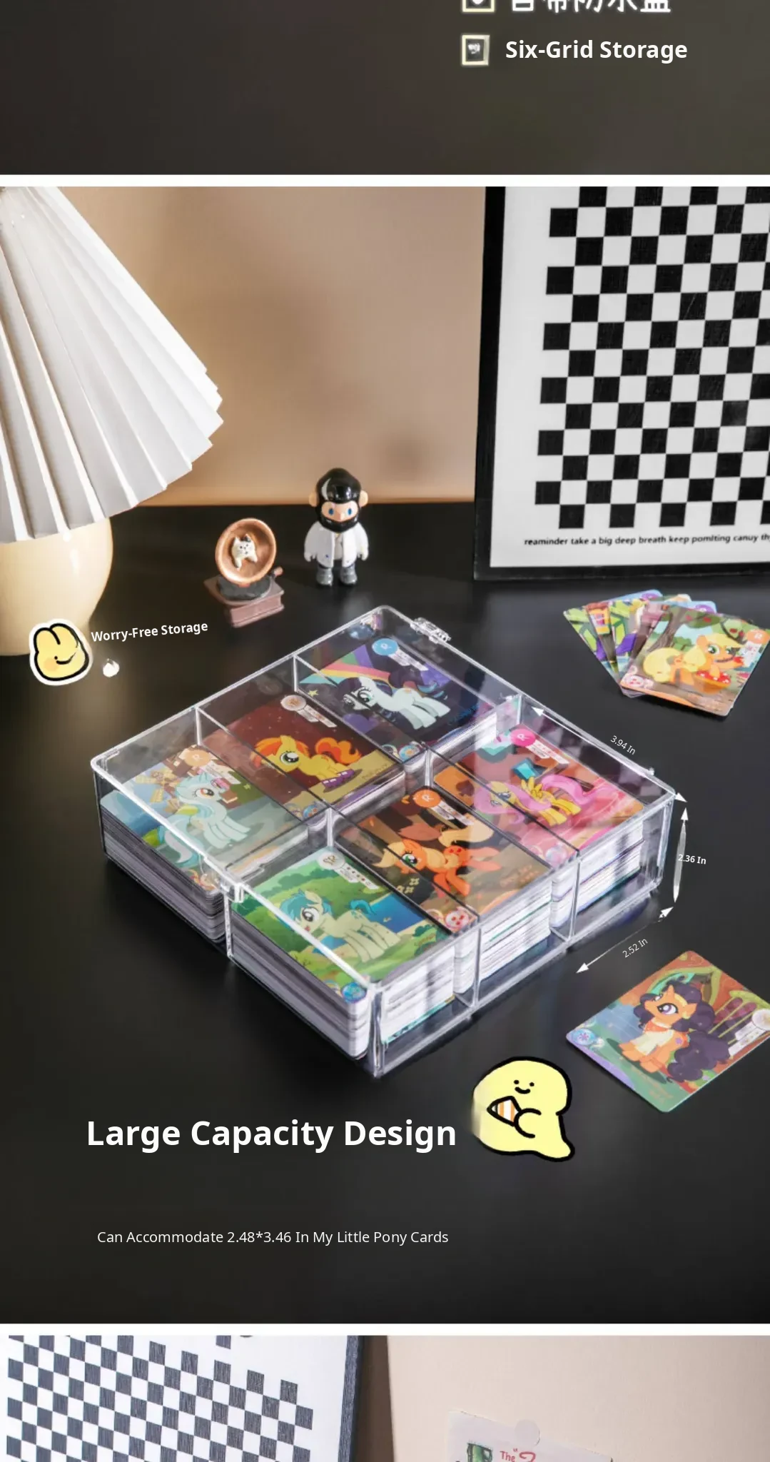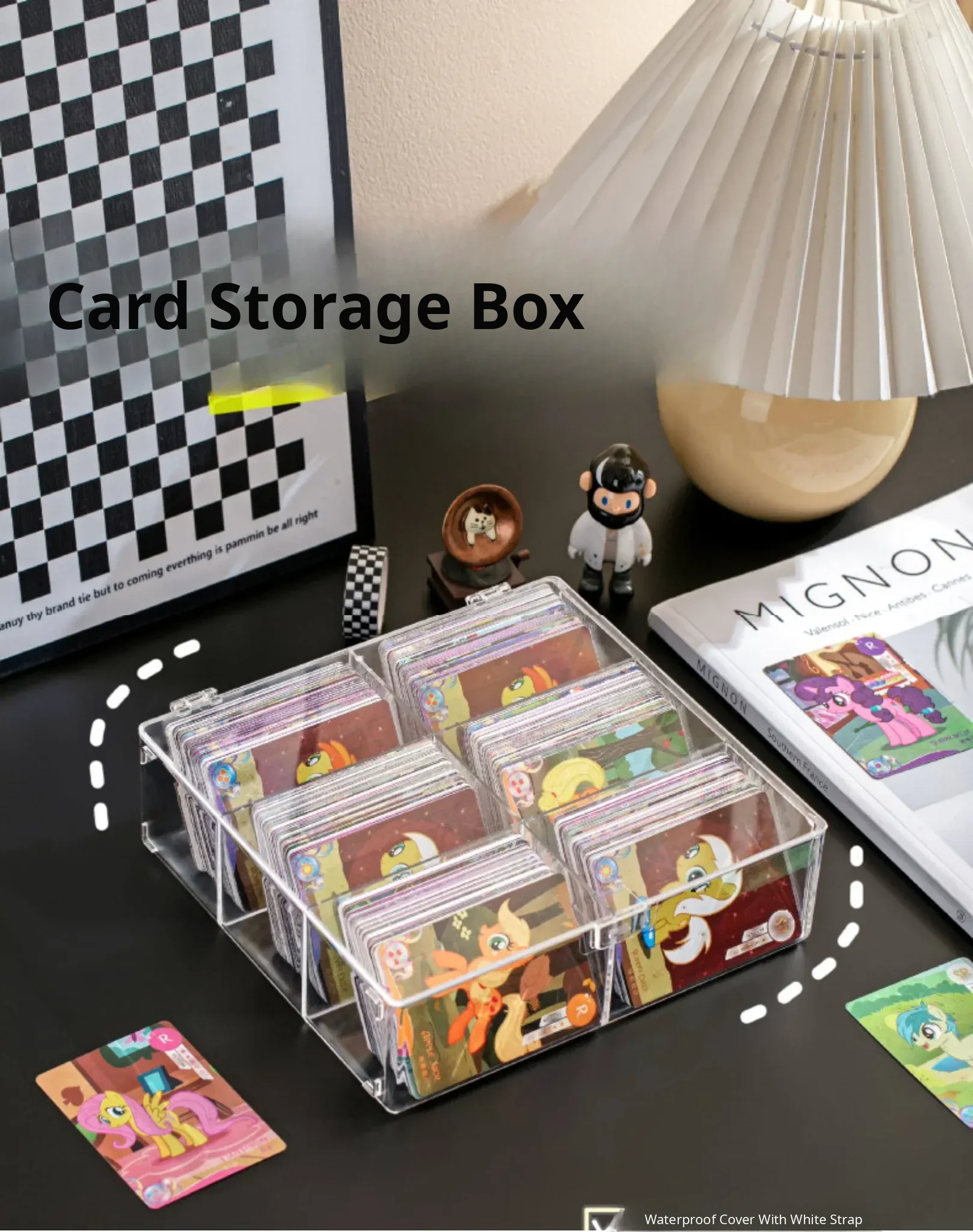 Transparent Card Storage Box with Lid - Large Capacity Organizer for Collectible Star Cards, Dustproof Design, and Divided Compartments for Desktop Use