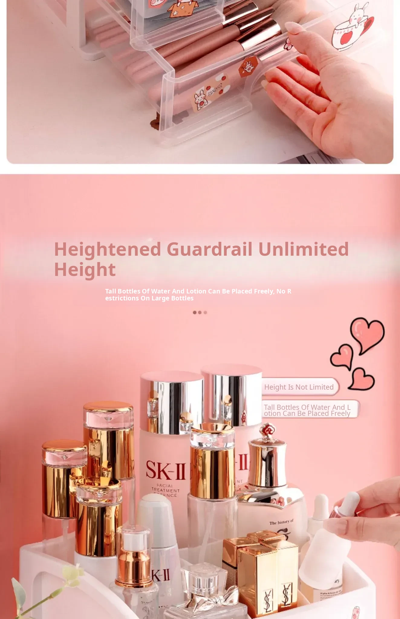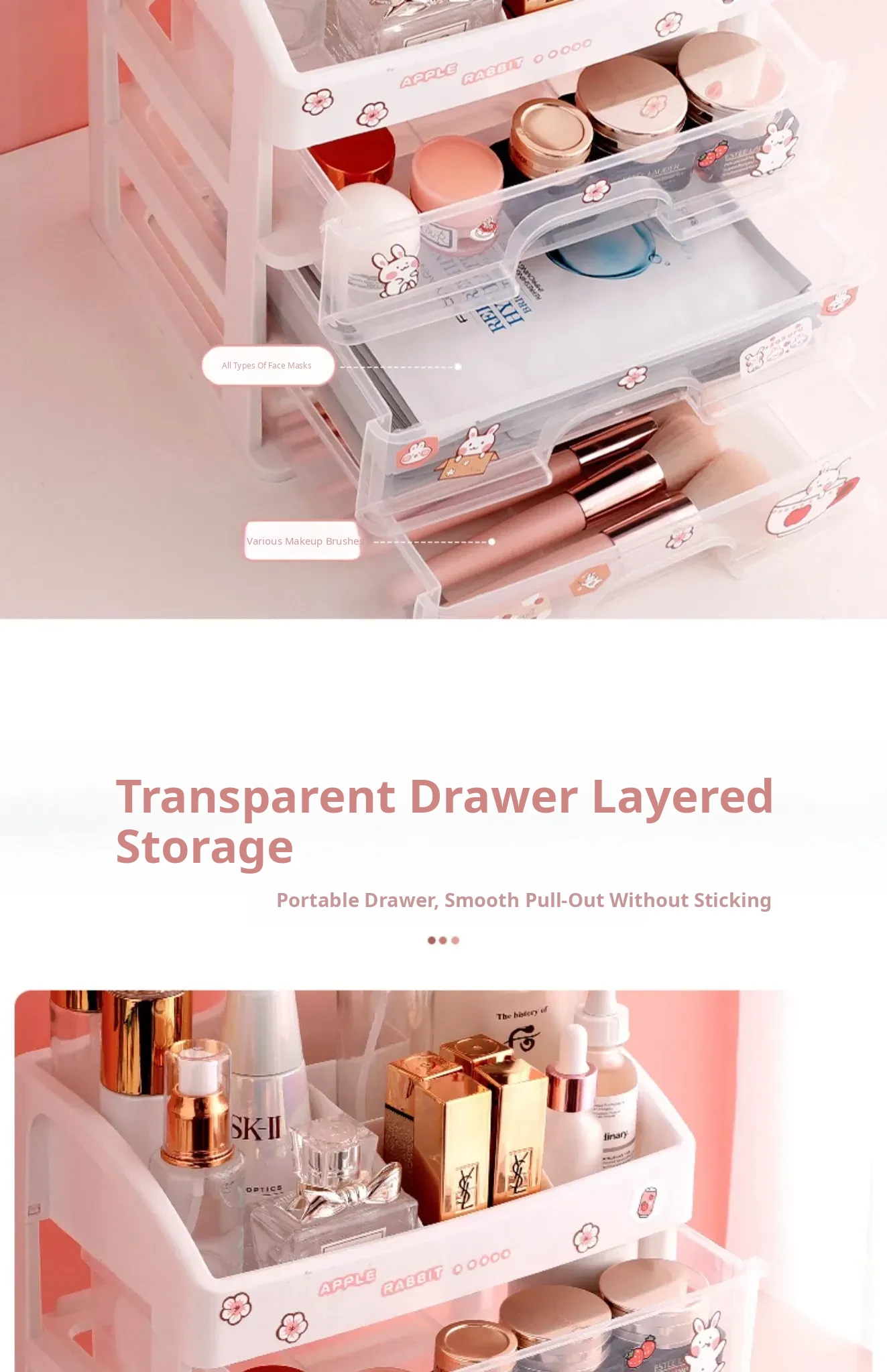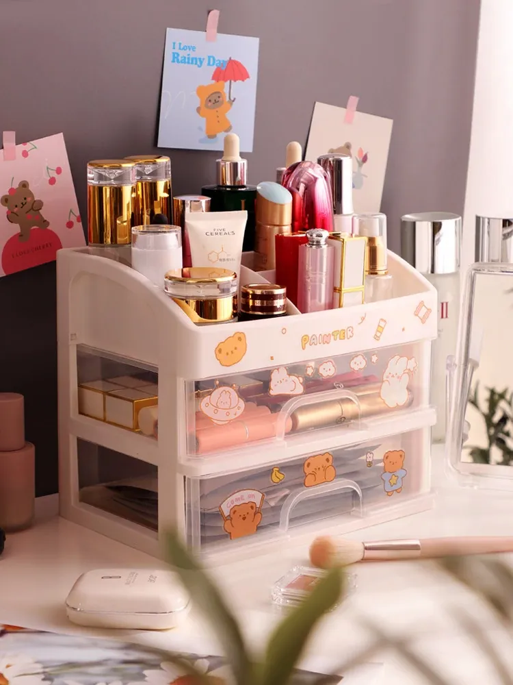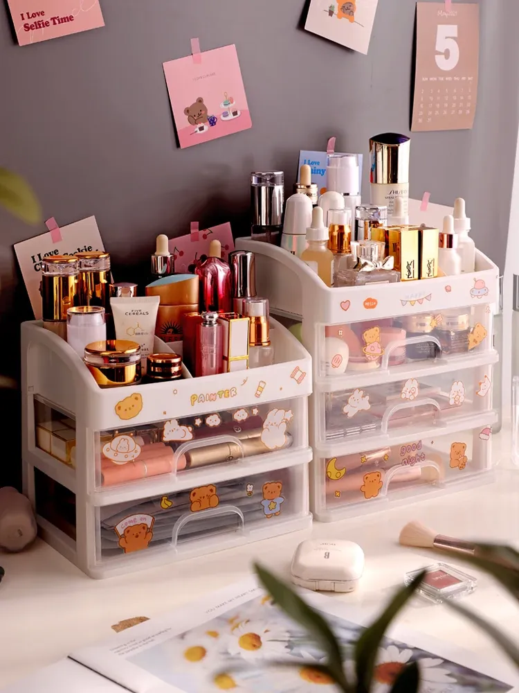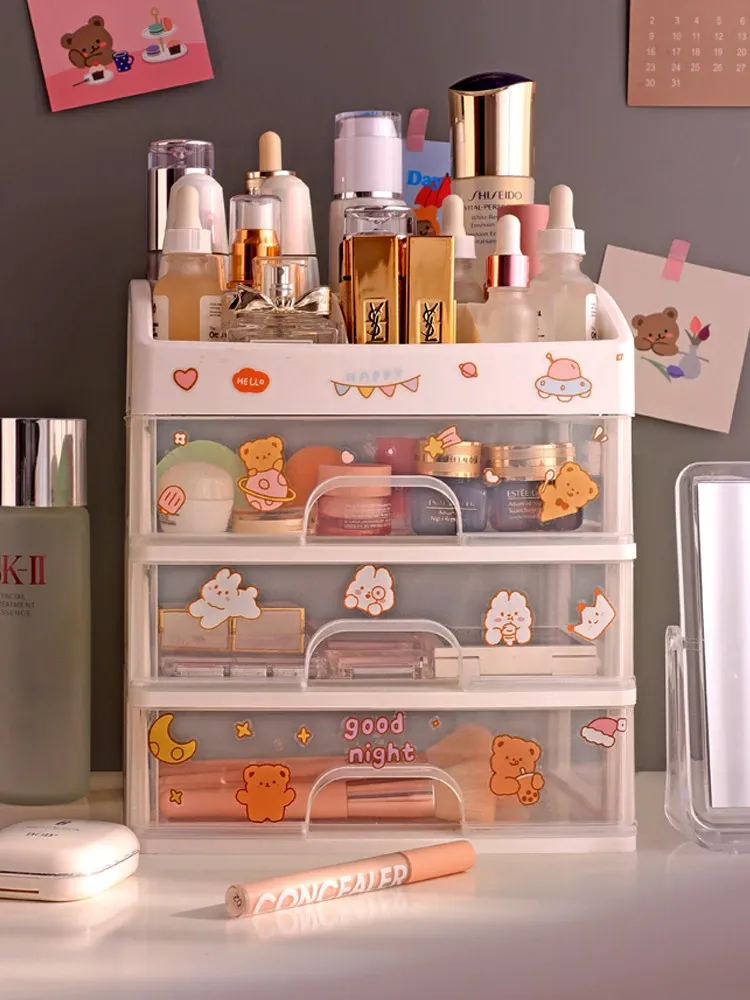 Transparent Makeup Organizer with Drawer - Large Capacity Desktop Storage for Lipsticks and Masks, Perfect for Home and Dorm Use