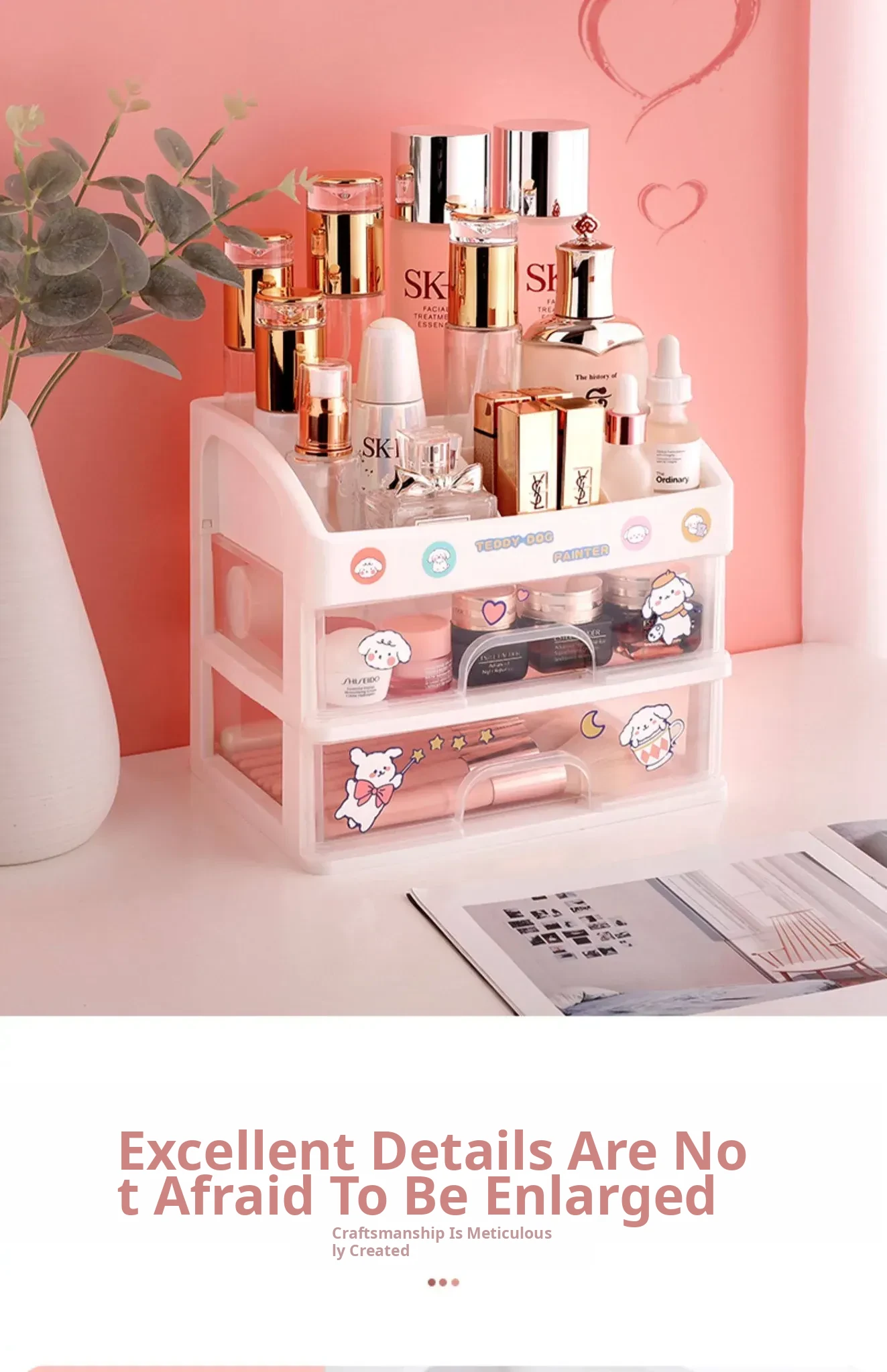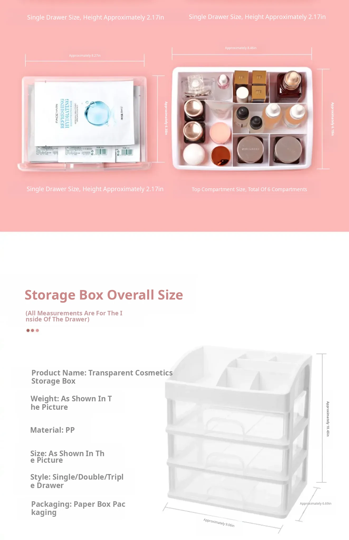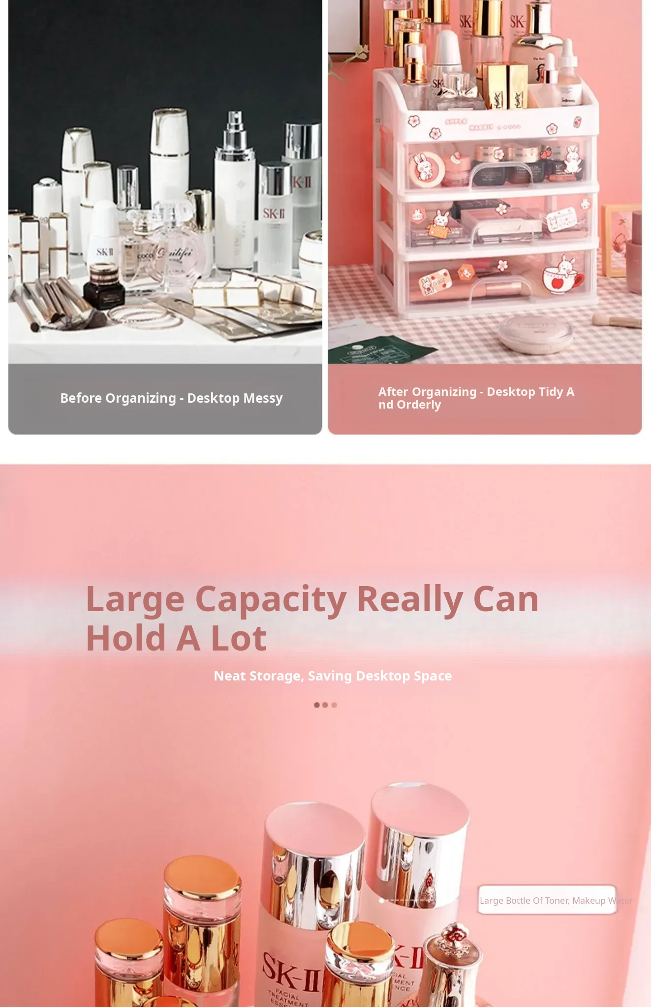 Transparent Makeup Organizer with Drawer - Large Capacity Desktop Storage for Lipsticks and Masks, Perfect for Home and Dorm Use