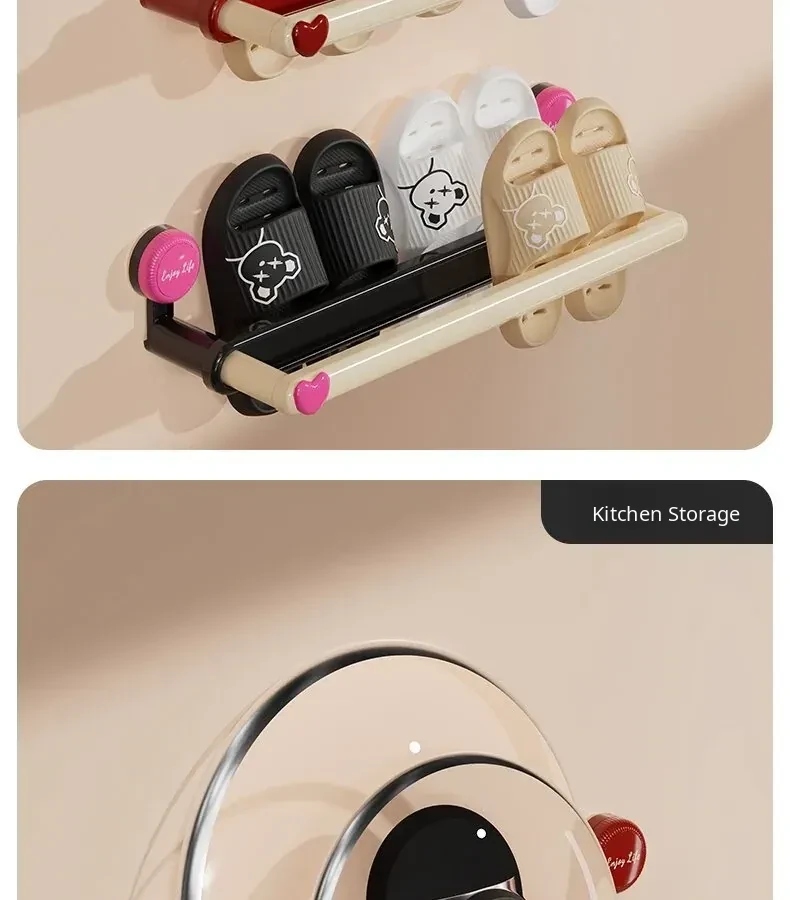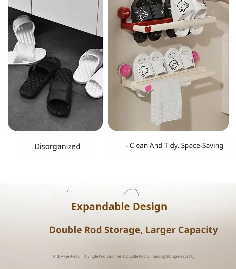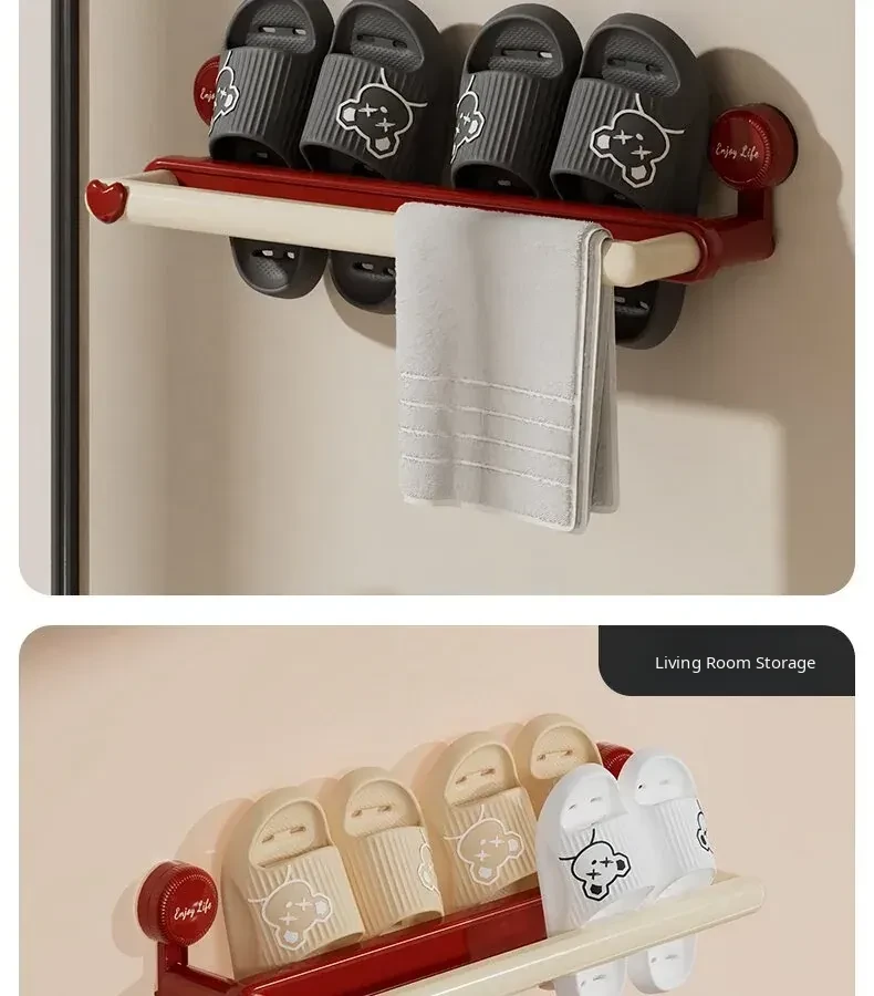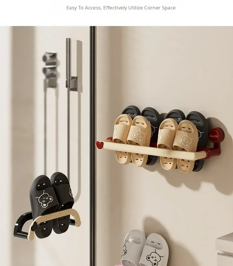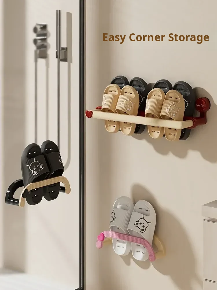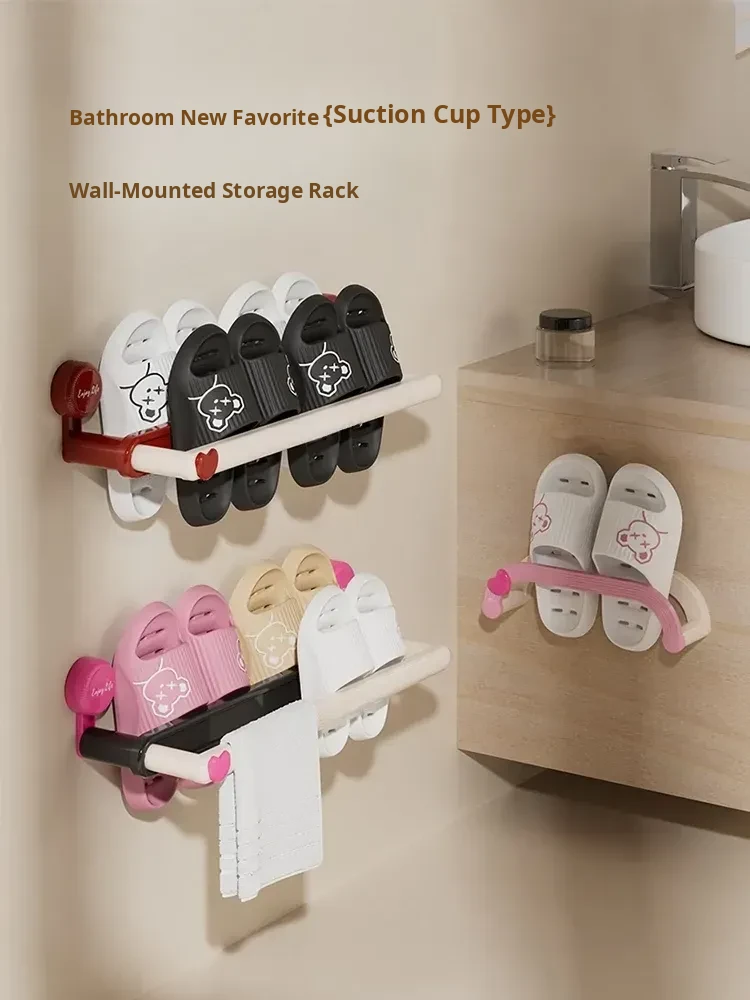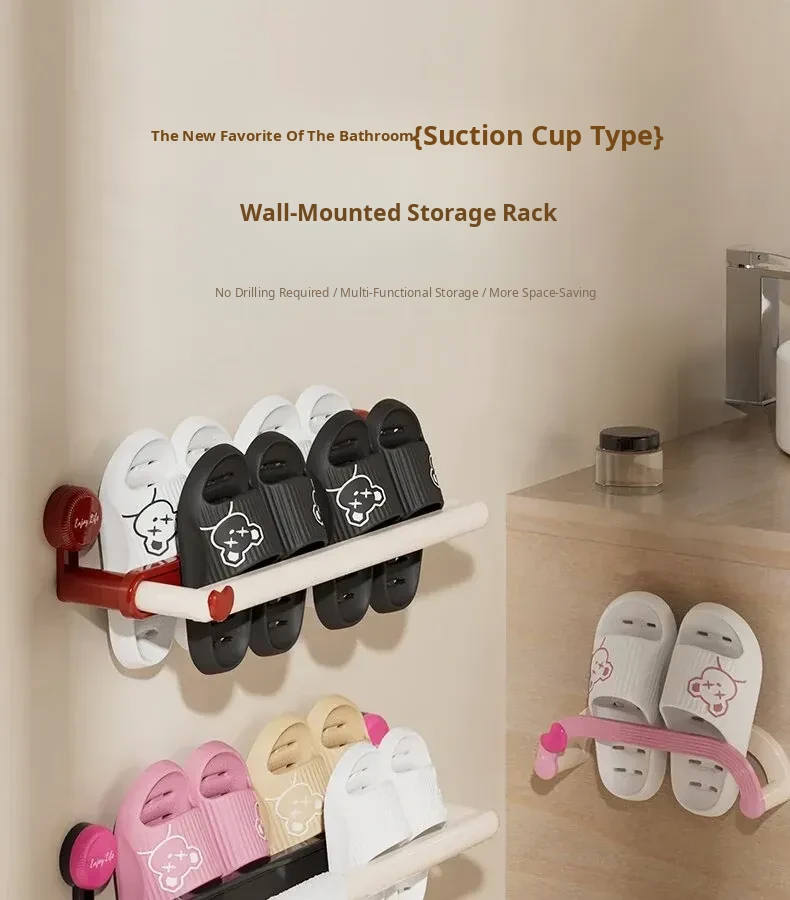 Wall-Mounted Suction Cup Shoe Rack - No Drilling Required! Perfect Bathroom Storage Solution for Organizing Slippers and Shoes, Space-Saving Bathroom Organizer for Toilets and Showers.