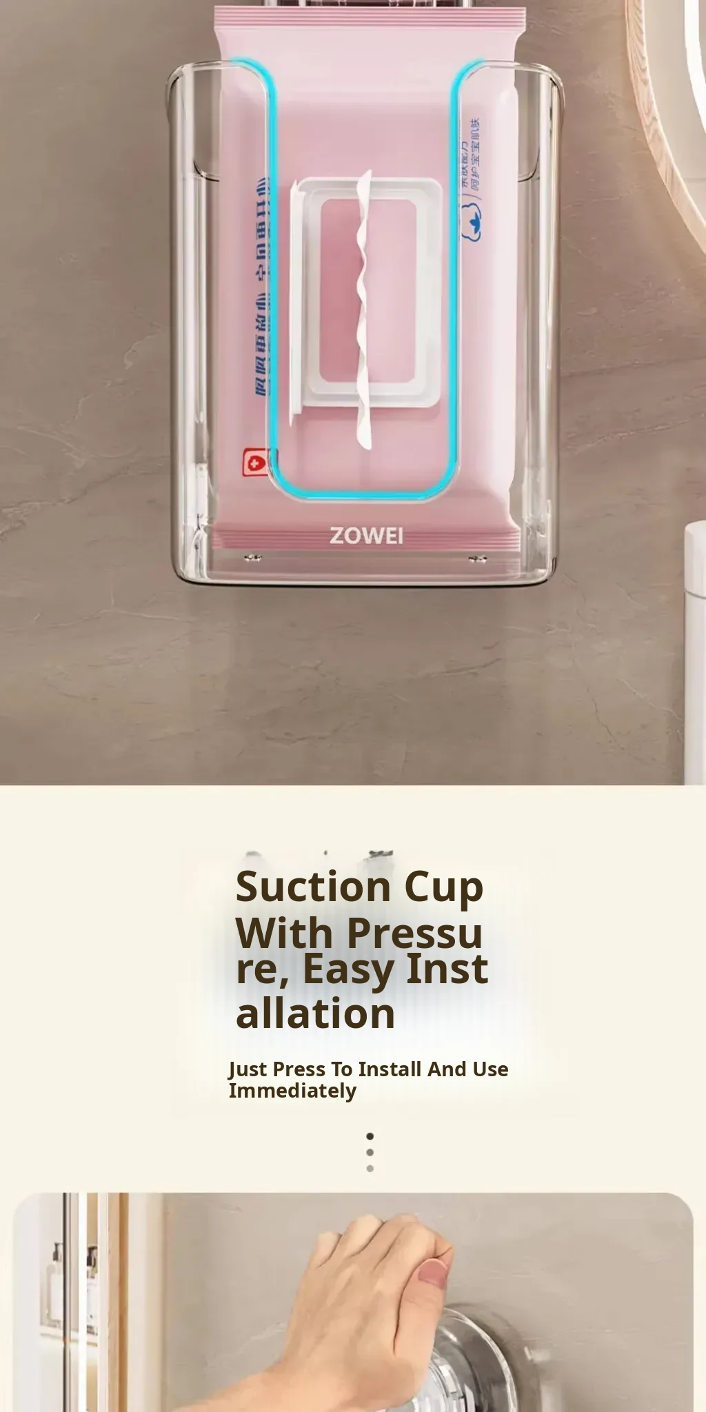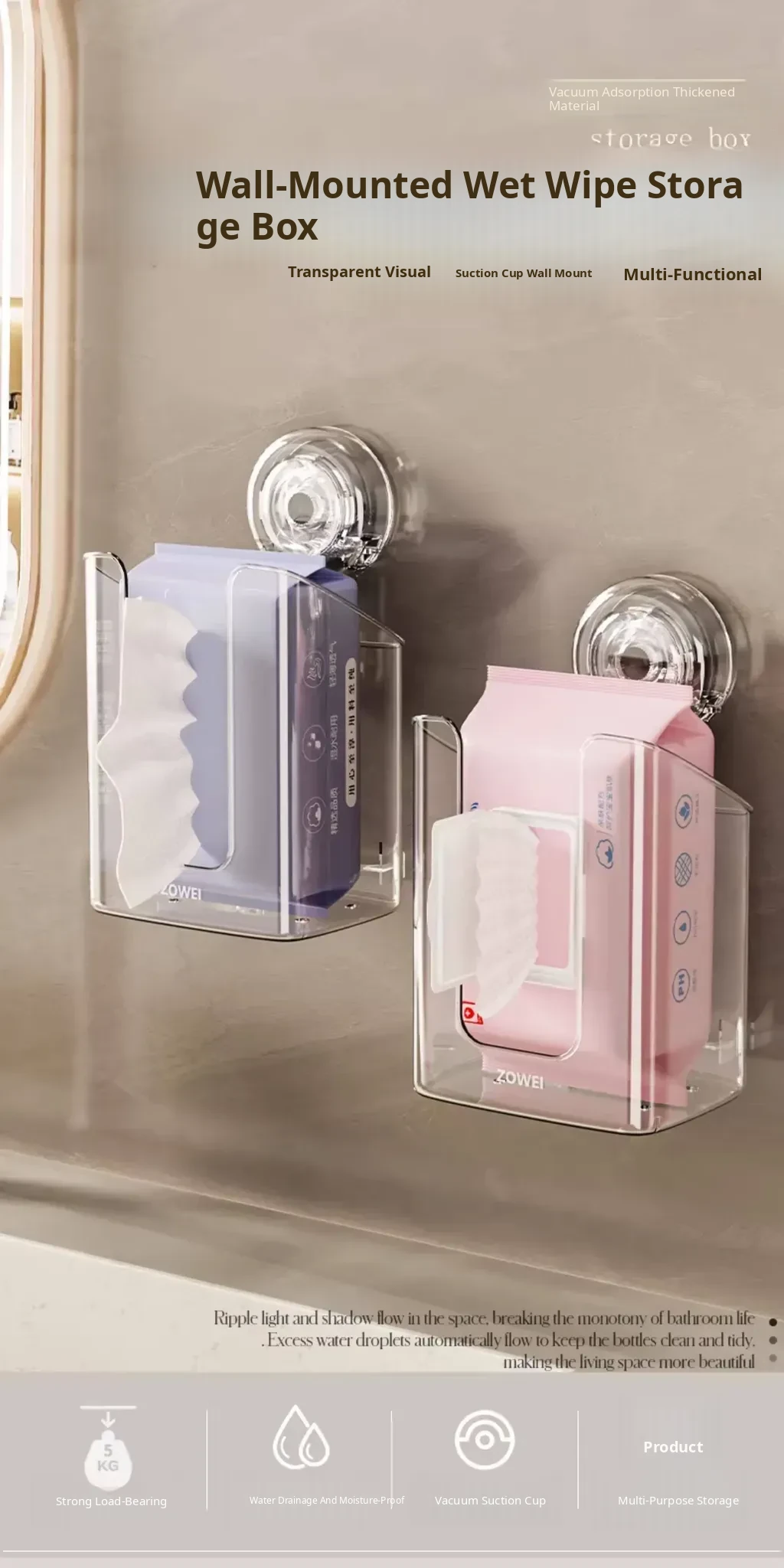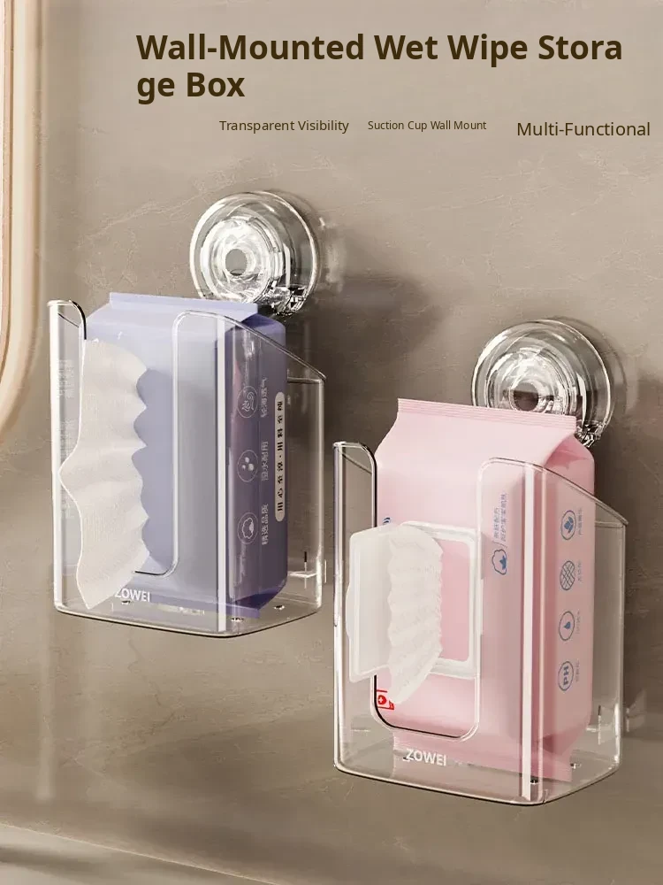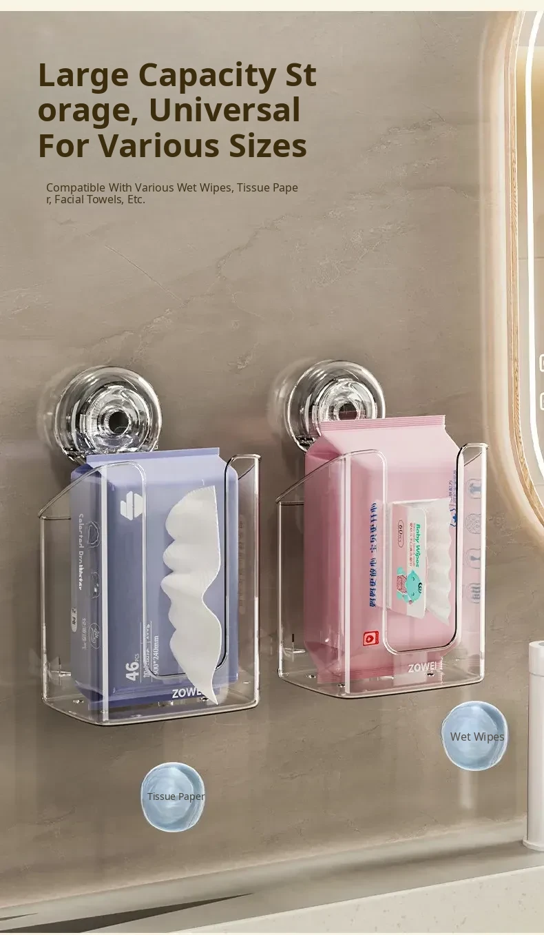 Wall-Mounted Suction Cup Wet Wipe Dispenser - Versatile Storage Box for Bathroom, Kitchen, and Face Towels - Maximize Space with This Large Hanging Tissue Holder