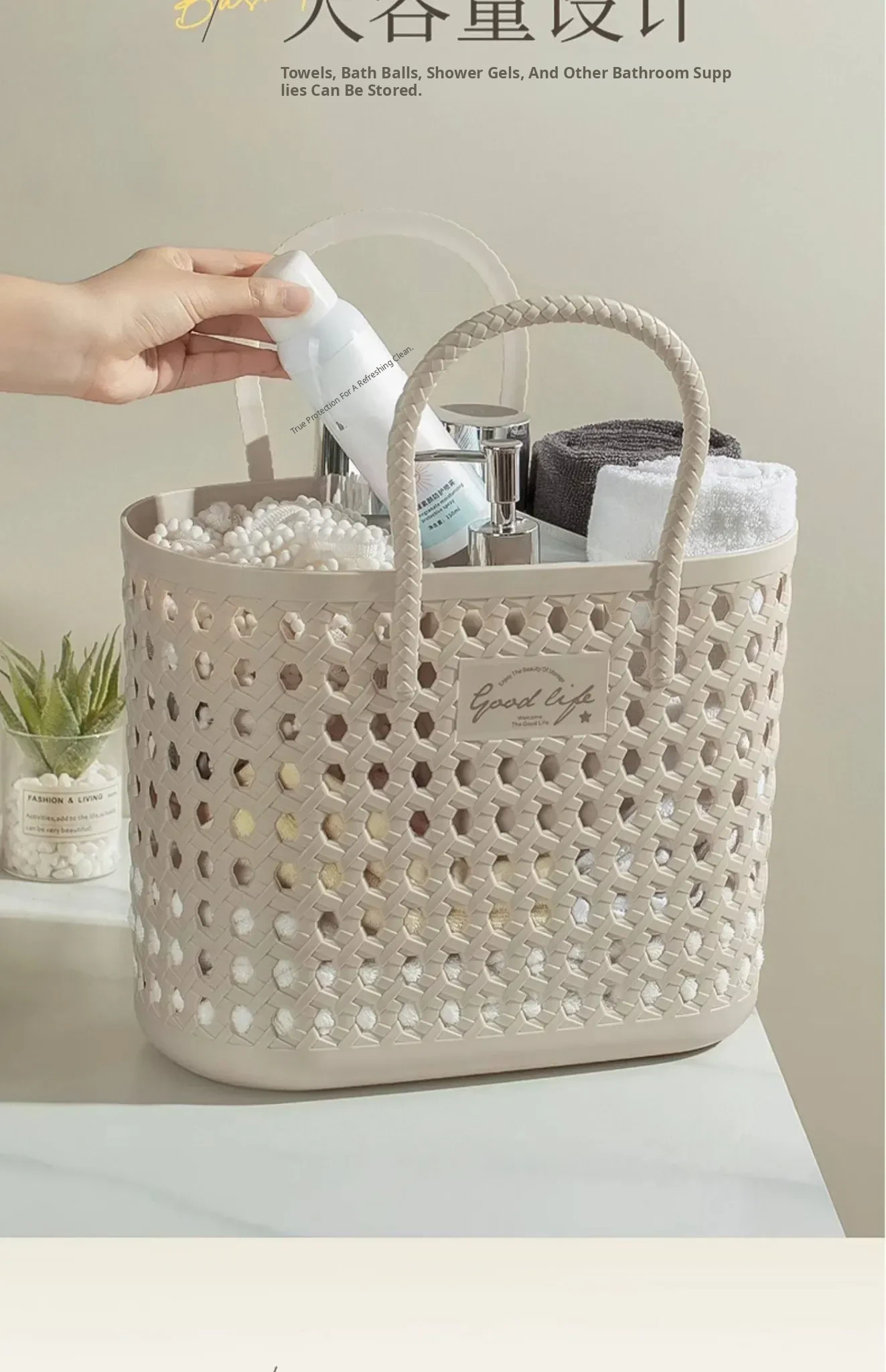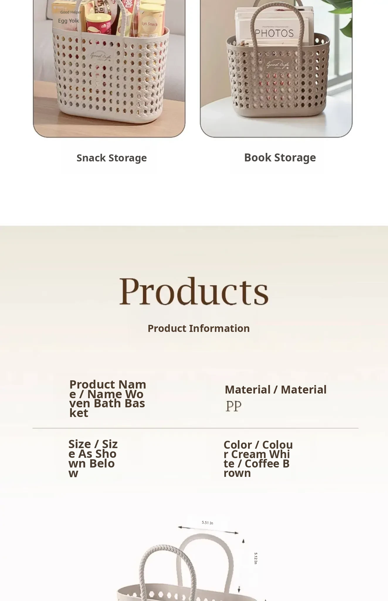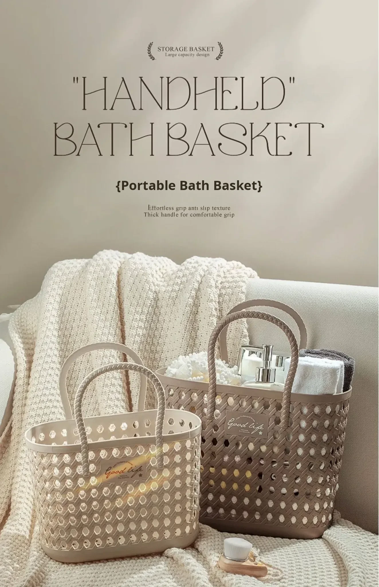 Woven Bathing Basket - Stylish Storage for Dorms, Perfect for Toiletries, Vegetables, Snacks & More - Chic Handheld Wicker Baskets for Organizing Your Space