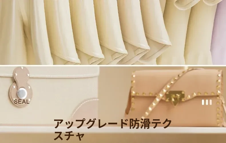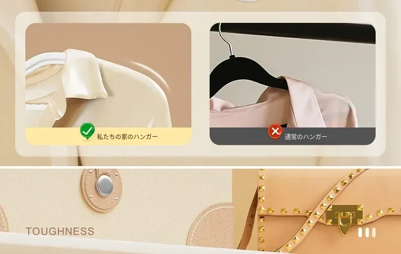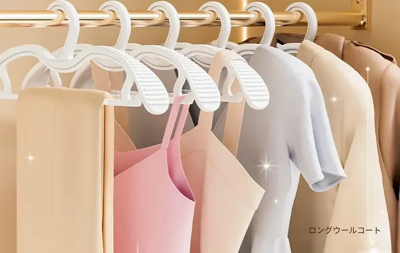 整理師専用ハンガー - 形崩れ防止!家で使える滑り止め&肩の角が出ない無痕設計。2025年新作の収納ハンガーで、衣類を美しく整頓!