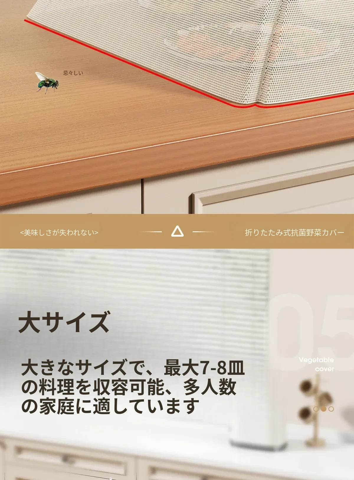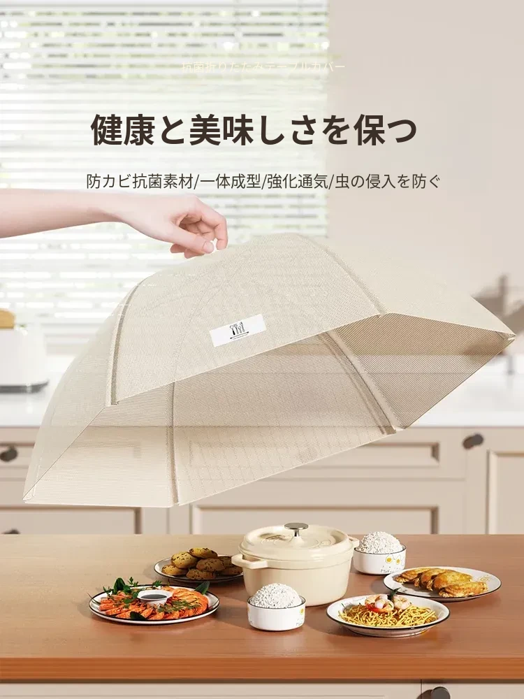 抗菌テーブルカバー2025新作!家庭用折りたたみ式カバー、食材や残り物を虫やハエから守る、安心・清潔の食卓を実現!