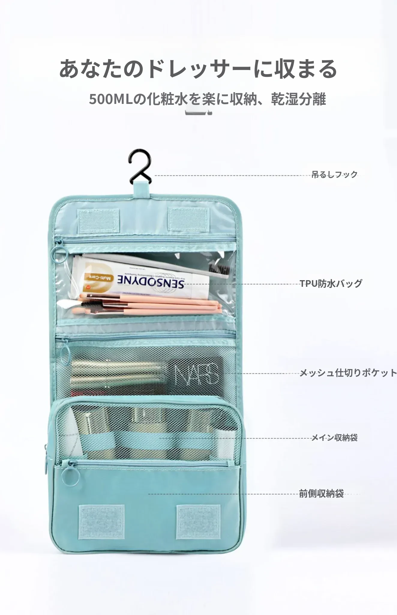 ライトブルー【フック付き 湿気分離】