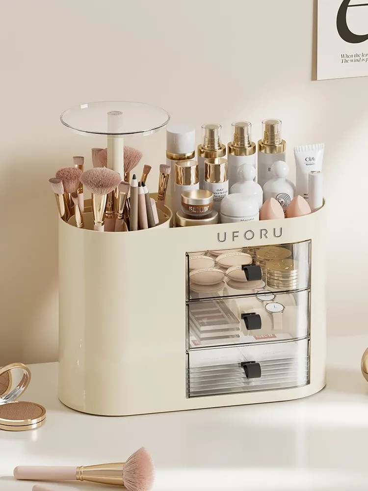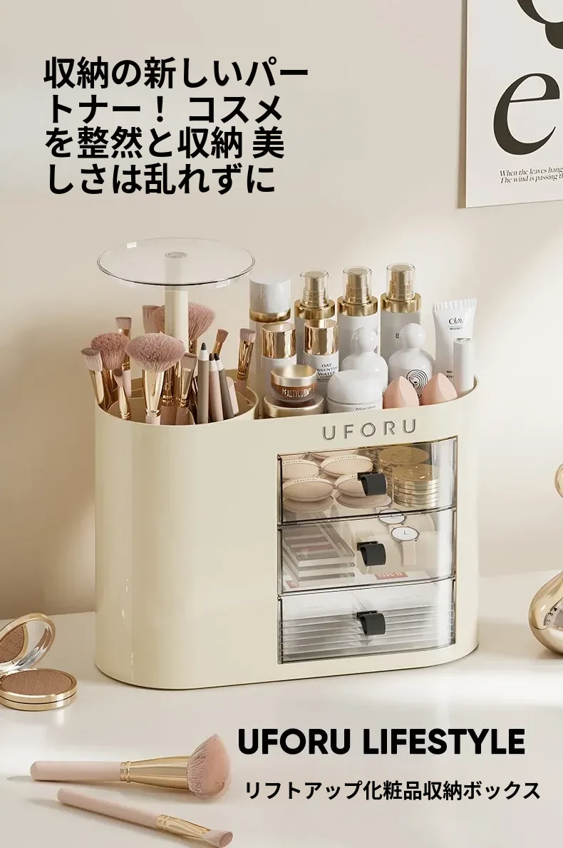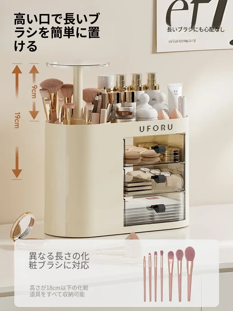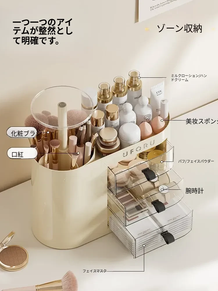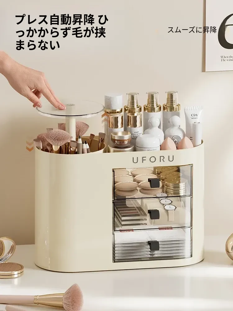 2025年新作!おしゃれな化粧品収納ボックス - デスクトップ用スキンケア&メイクアップ台、埃を防ぎ、化粧ブラシを整理できる高級感溢れるディスプレイラック!