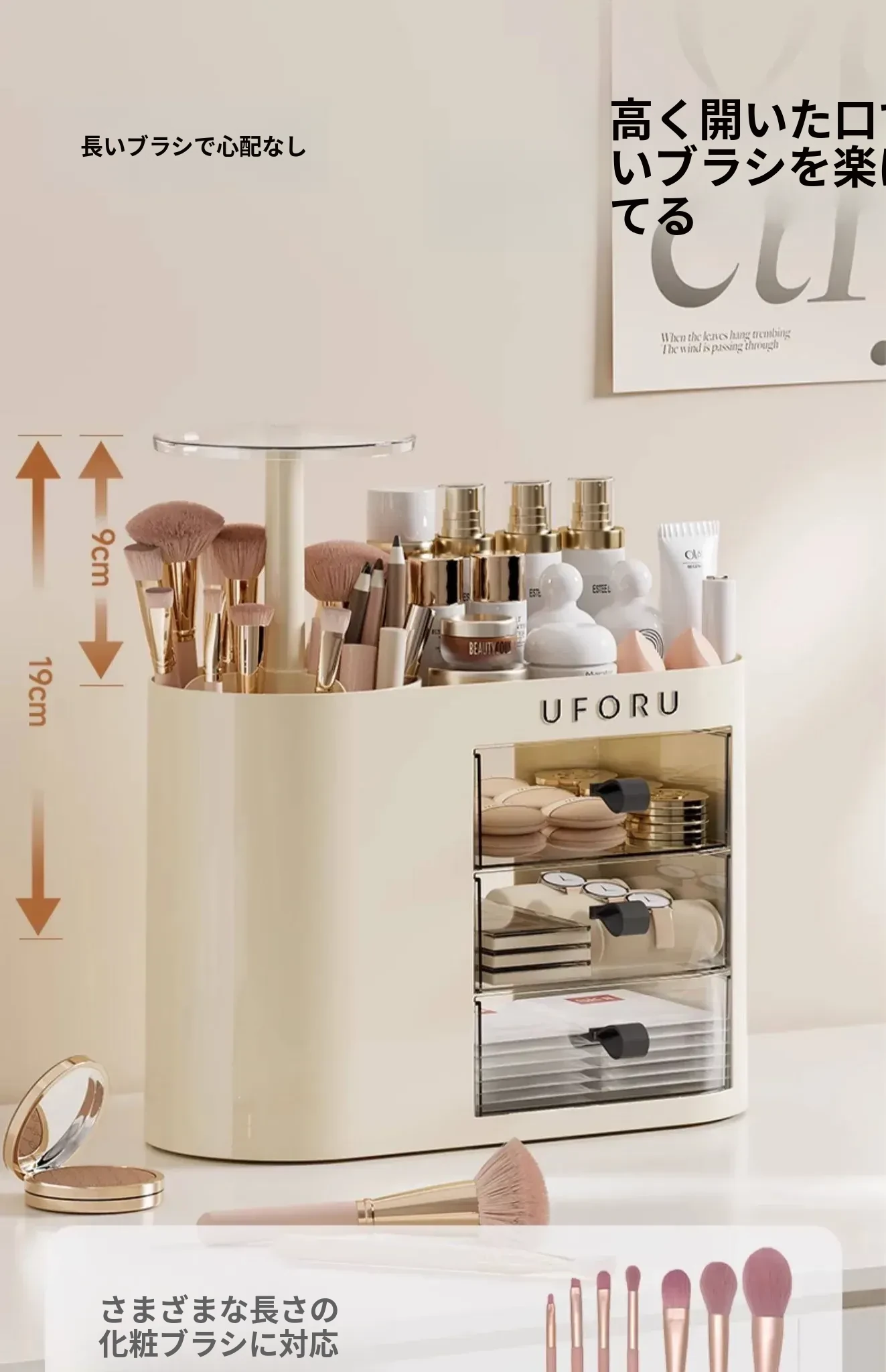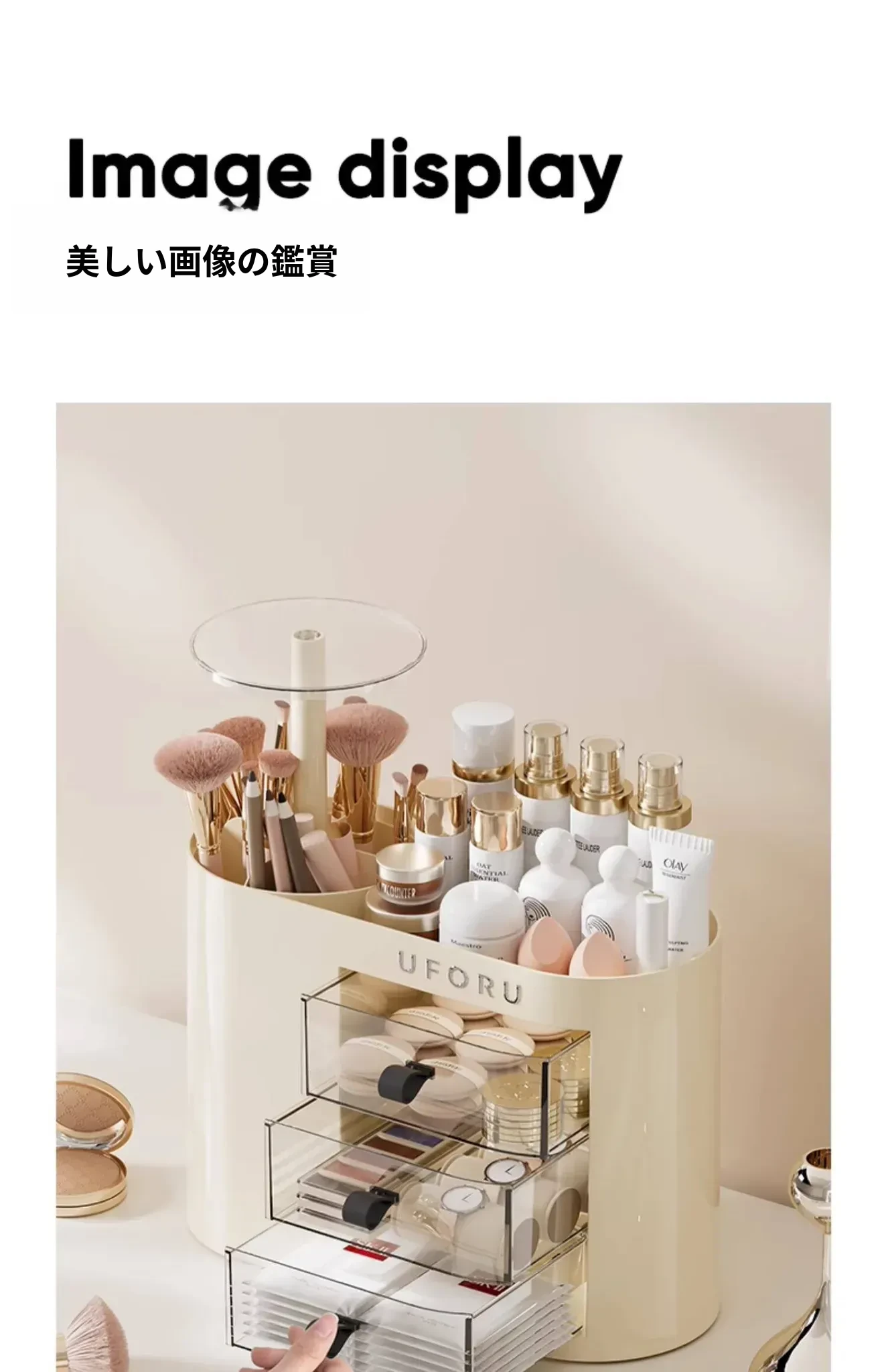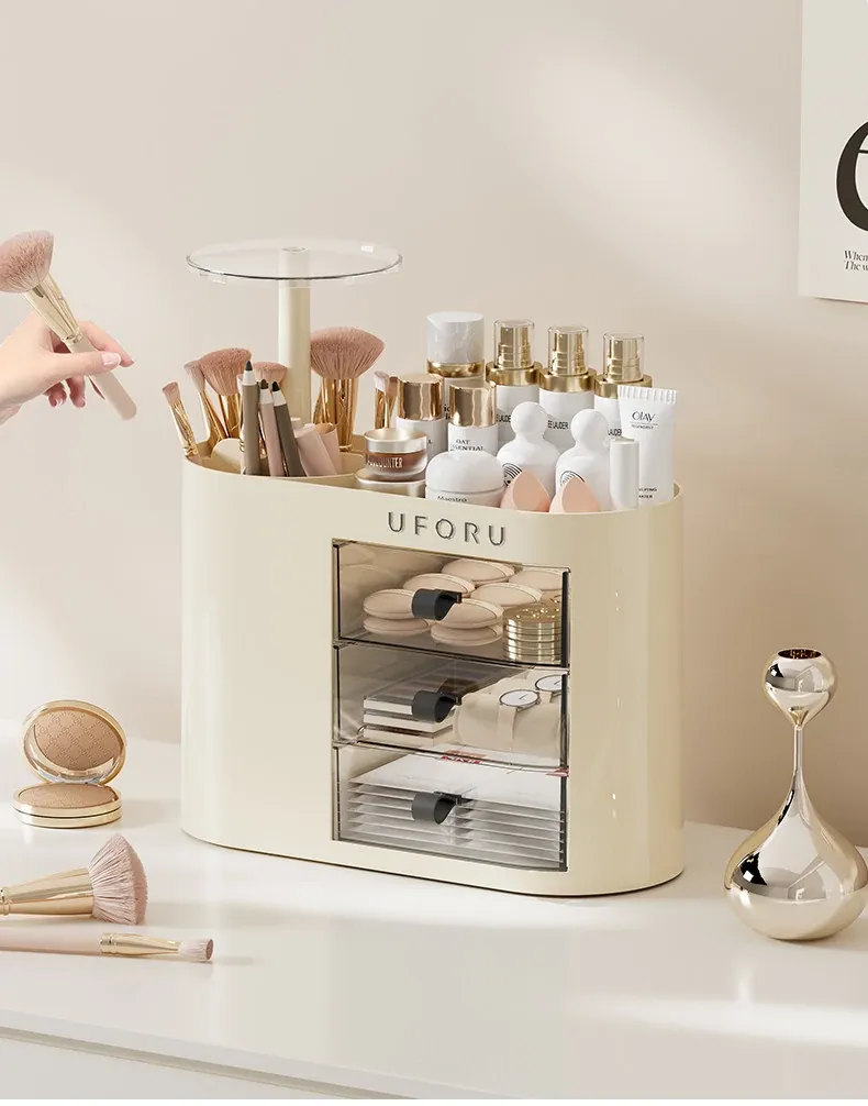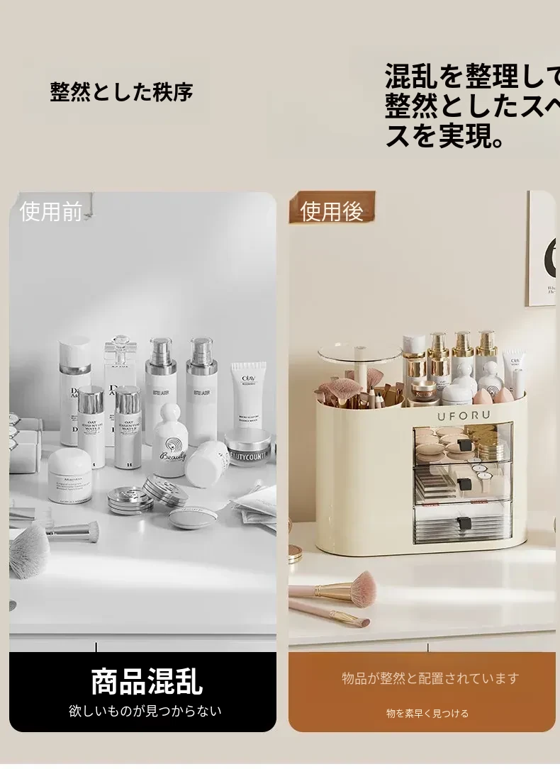 2025年新作!おしゃれな化粧品収納ボックス - デスクトップ用スキンケア&メイクアップ台、埃を防ぎ、化粧ブラシを整理できる高級感溢れるディスプレイラック!