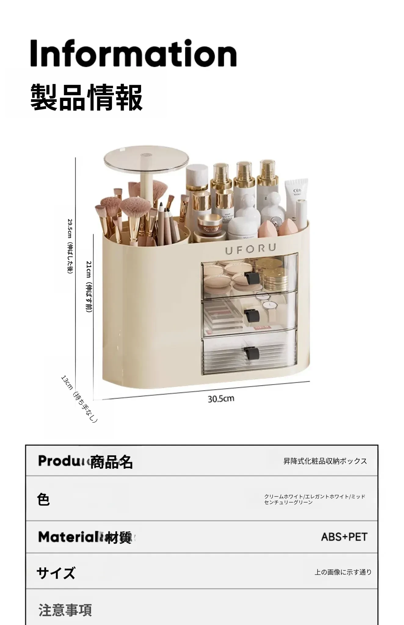 クリームホワイト⭐【押し上げ昇降|多層仕切り】