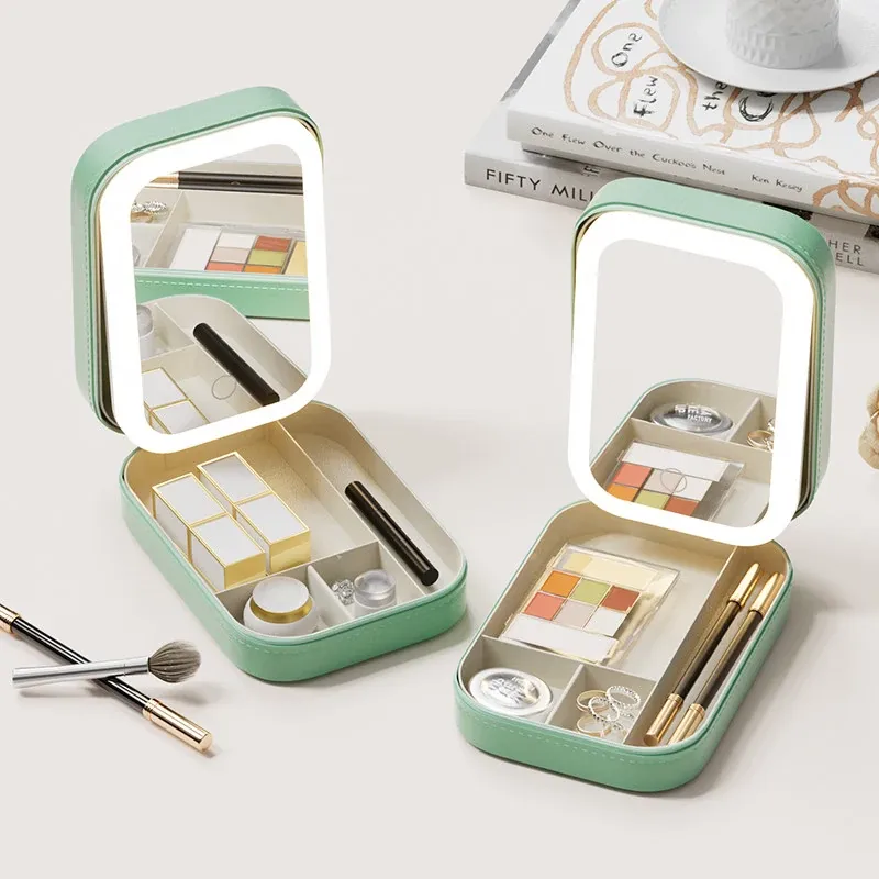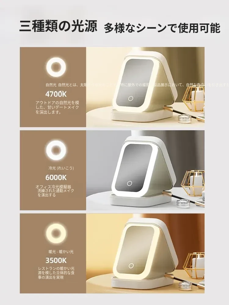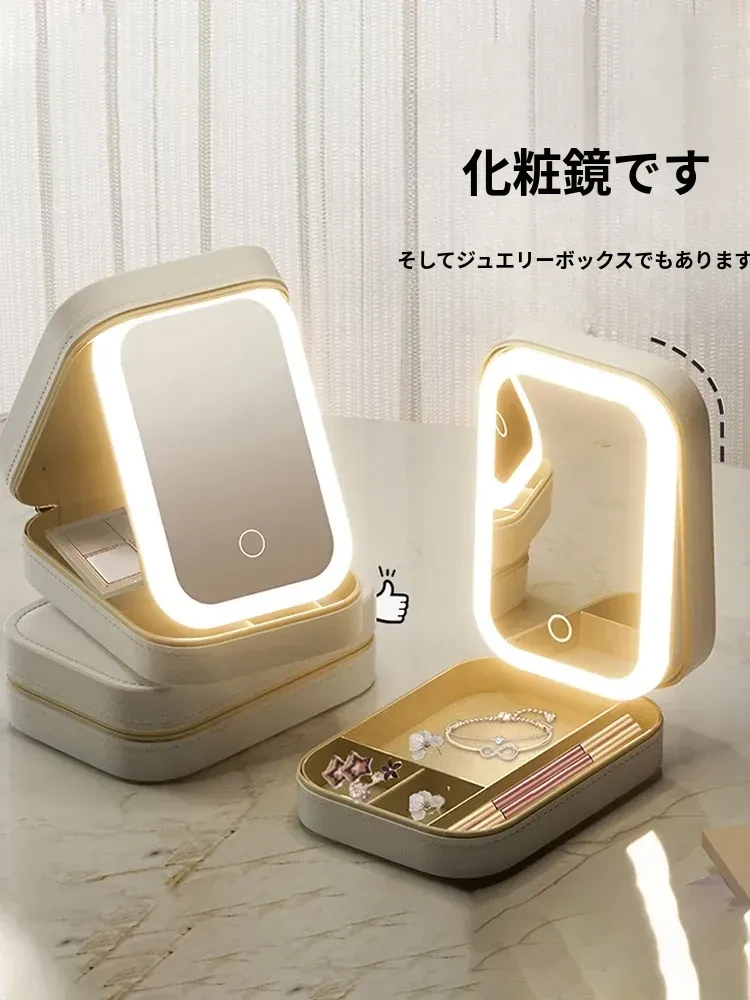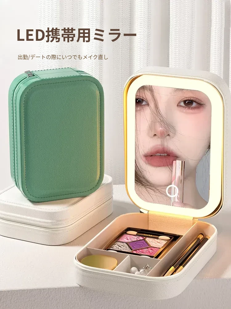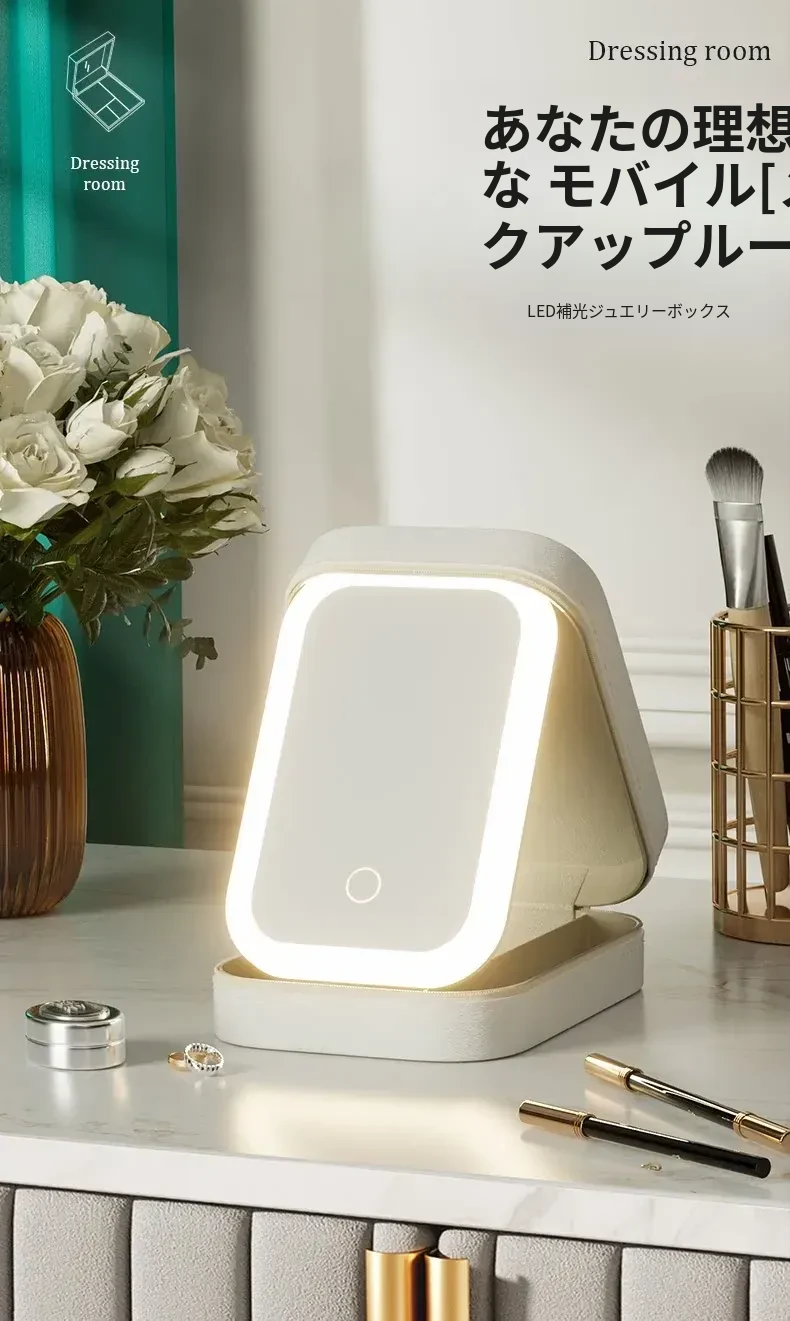 2025年版LEDミラー付き化粧ポーチ - 折りたたみ式・携帯便利!おしゃれなインスタ風デザインで、女性のメイク道具をすっきり収納。どこでも美しさをキープ!