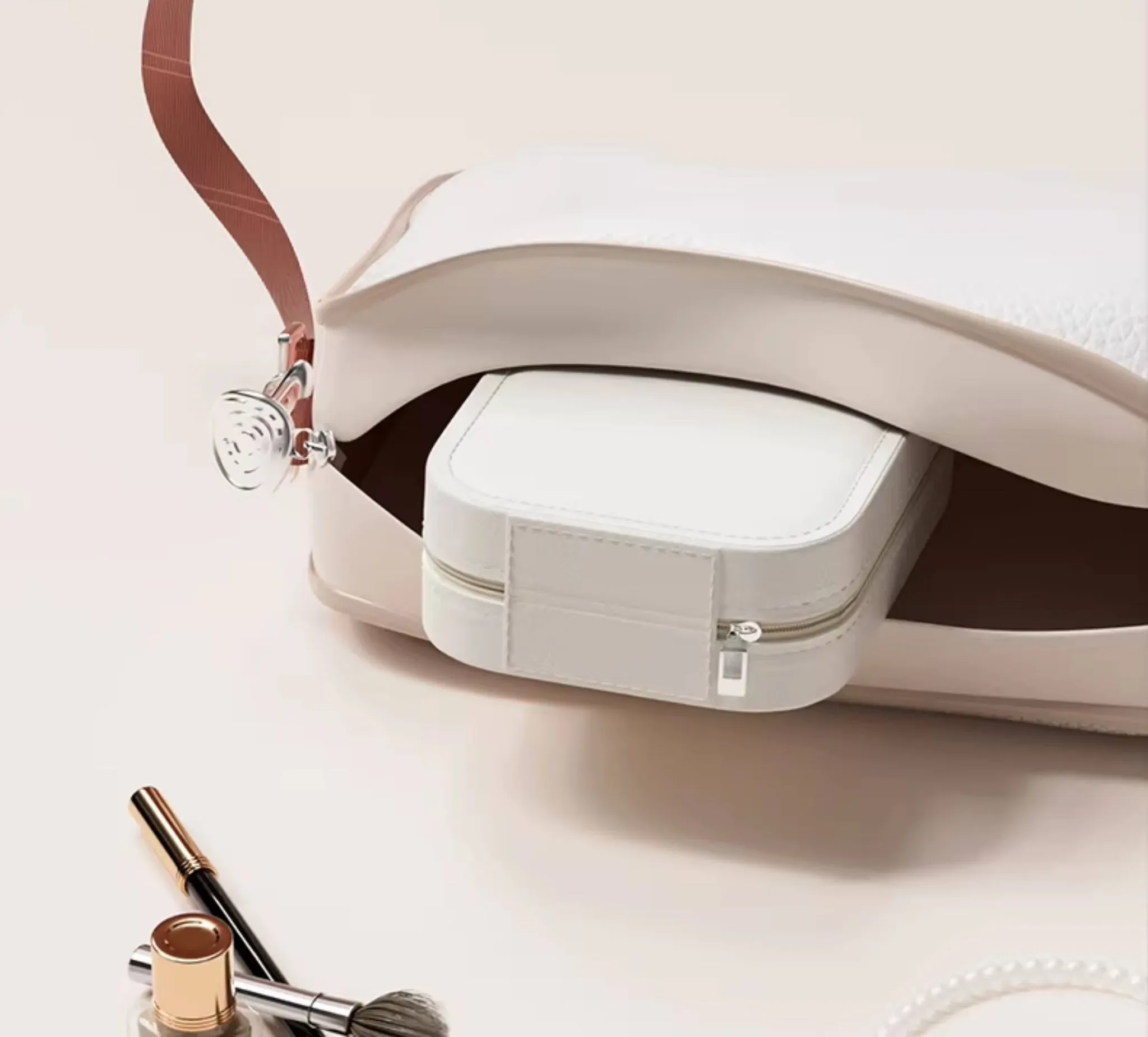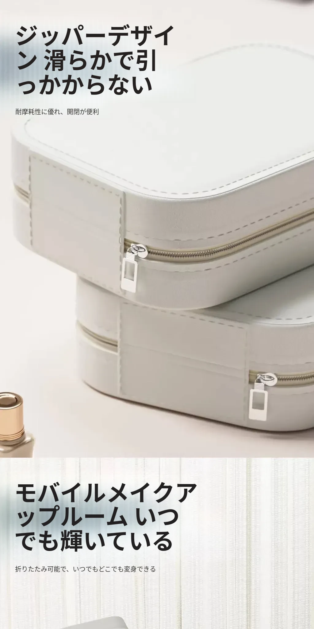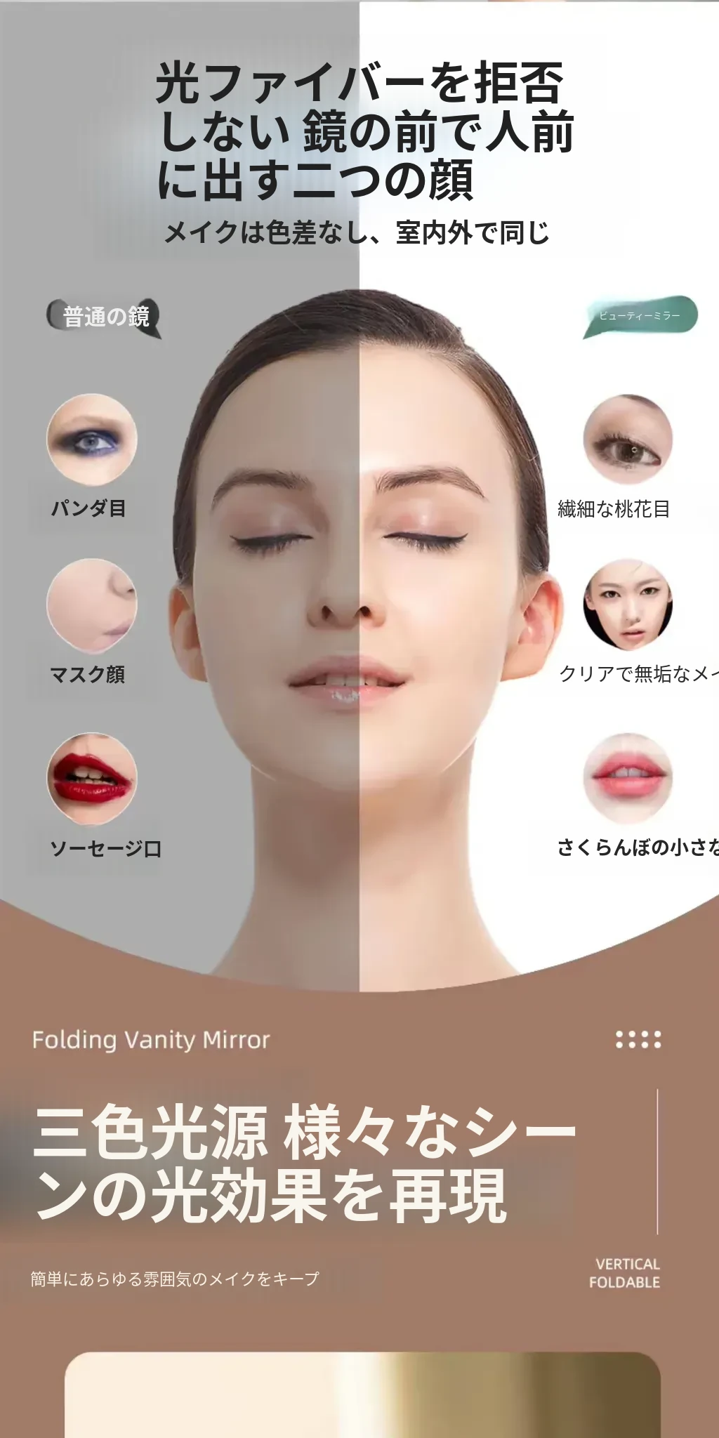 2025年版LEDミラー付き化粧ポーチ - 折りたたみ式・携帯便利!おしゃれなインスタ風デザインで、女性のメイク道具をすっきり収納。どこでも美しさをキープ!