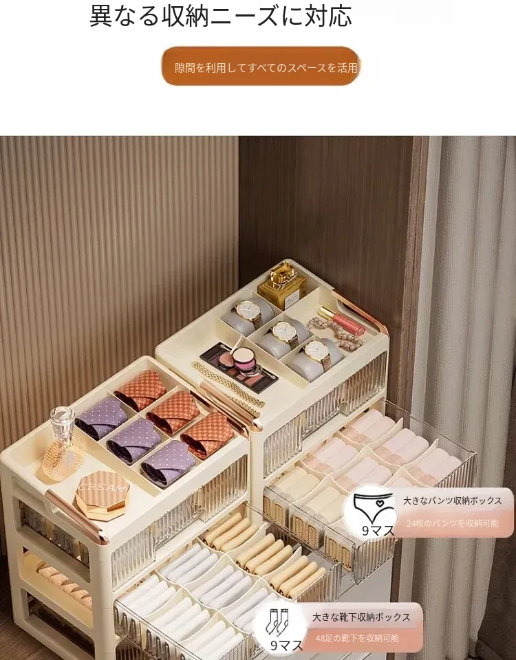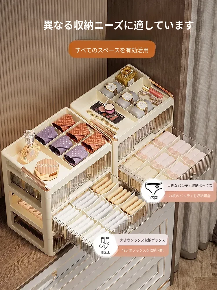 高級感あふれる3in1収納ボックス!下着・靴下・小物をすっきり整理できる引き出し式仕切り収納。おしゃれで実用的な家庭用オーガナイザー、新デザインでお部屋をスッキリ整えましょう!