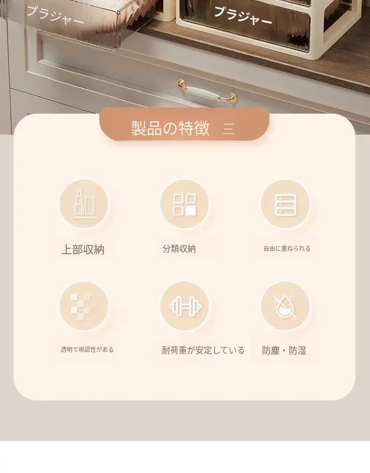 3段【靴下・パンティ・ブラジャー】収納可能な引き出し、スムーズな引き出し操作❤安定した設置
