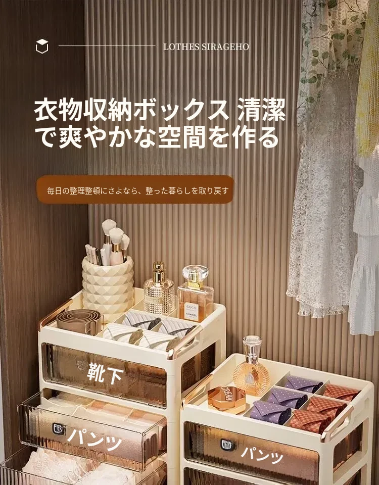 4段【靴下&パンティー&ブラジャー&ネクタイ】収納可能なスムーズな引き出し❤安定して置けます