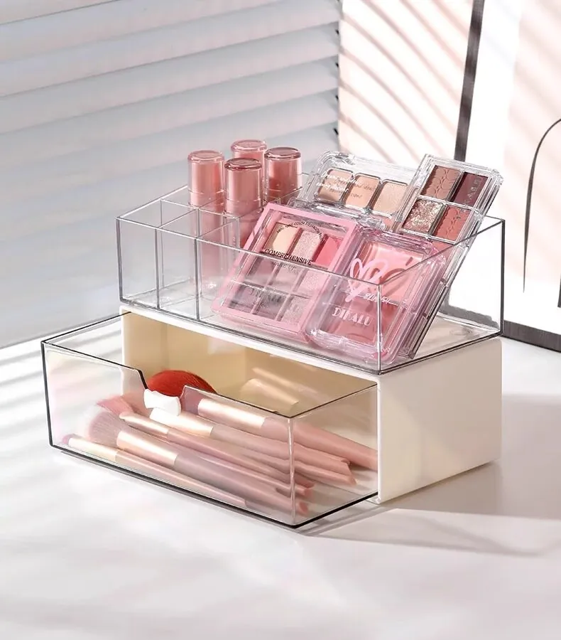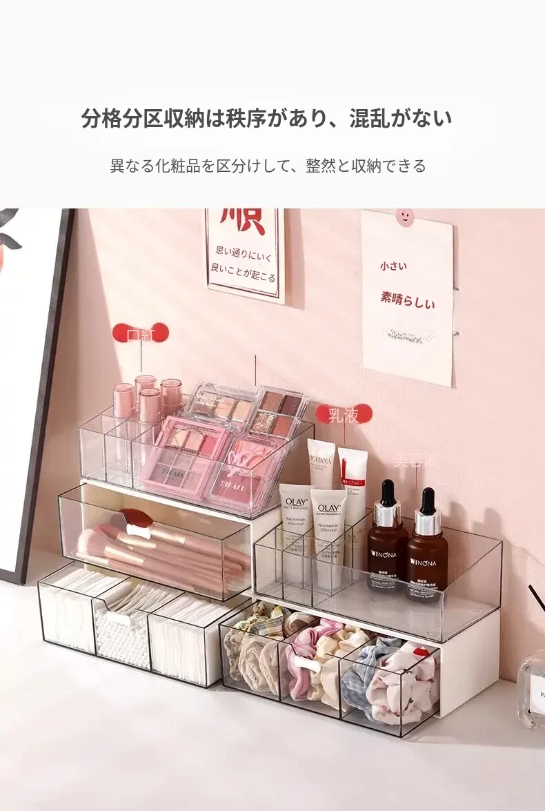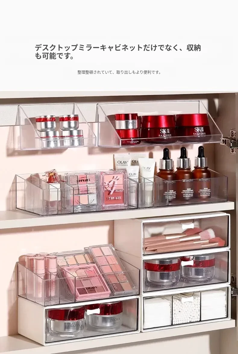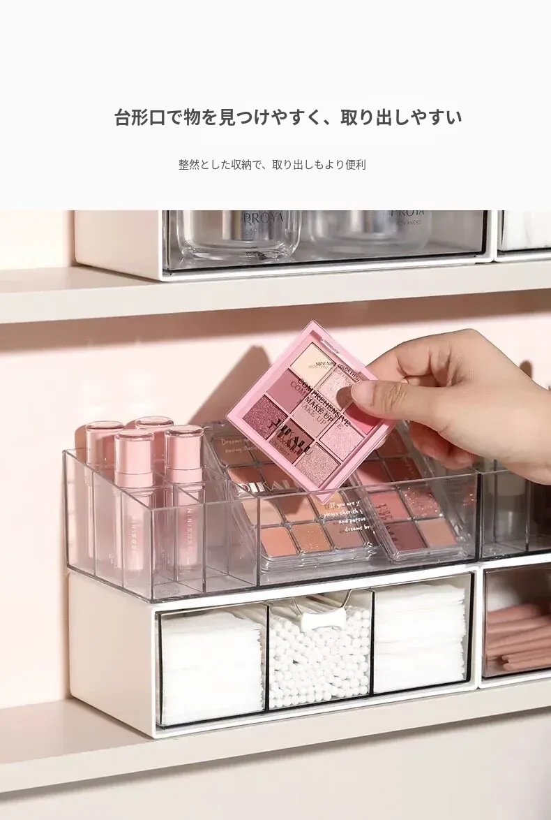 透明アクリル化粧品収納ボックス - 引き出し式デスクオーガナイザー!オフィスや自宅の小物整理に最適!美しく整った空間を実現し、使いやすさを追求したデザイン。あなたのメイクアップをスタイリッシュに演出します!