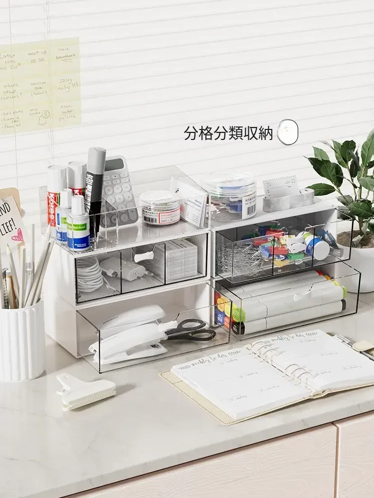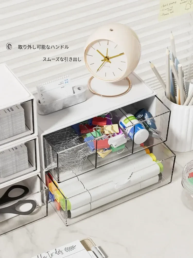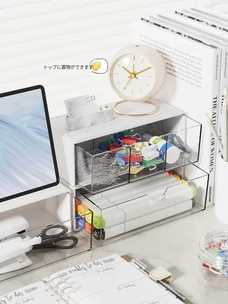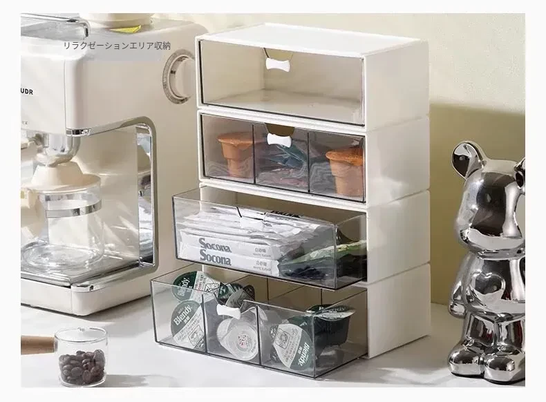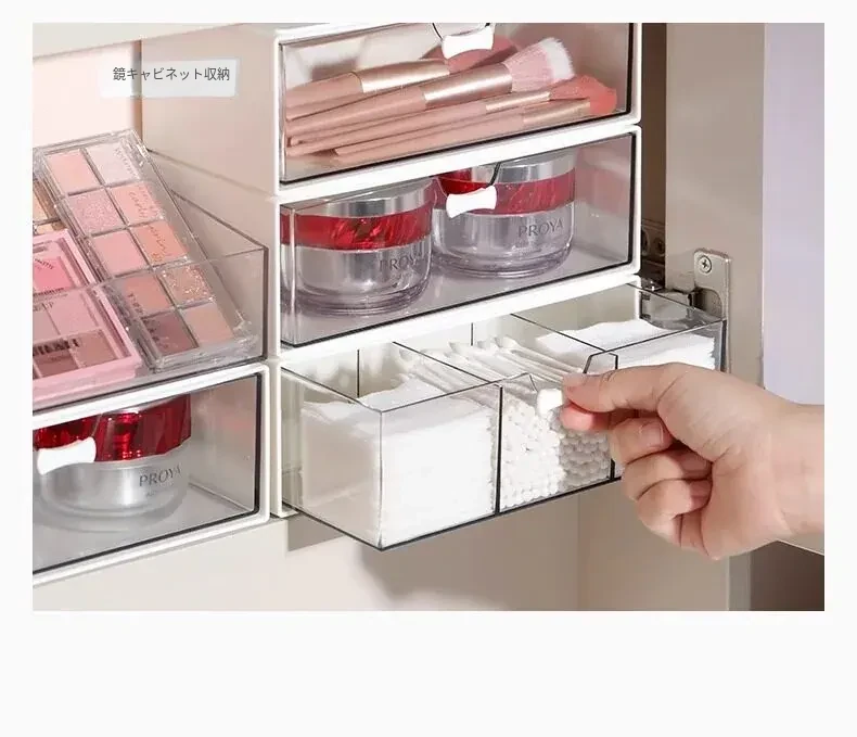 透明アクリル化粧品収納ボックス - 引き出し式デスクオーガナイザー!オフィスや自宅の小物整理に最適!美しく整った空間を実現し、使いやすさを追求したデザイン。あなたのメイクアップをスタイリッシュに演出します!