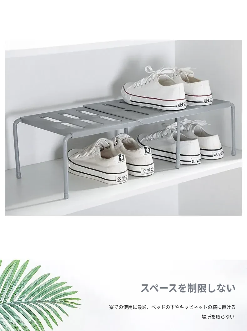 二段式靴ラック - スペースを節約する調整可能なシューサポート!学生寮にも最適な多層伸縮式デザインで、靴をすっきり整理!あなたの靴を美しく収納しましょう。