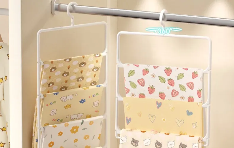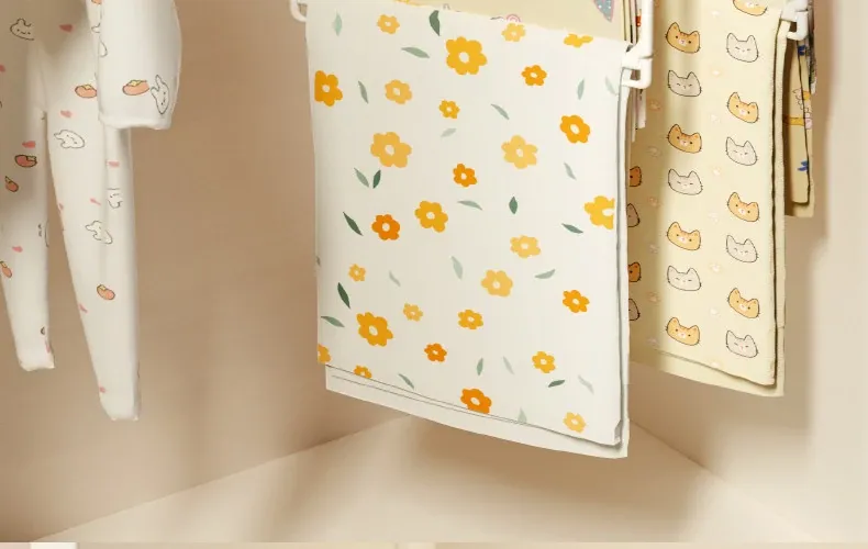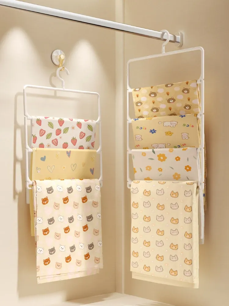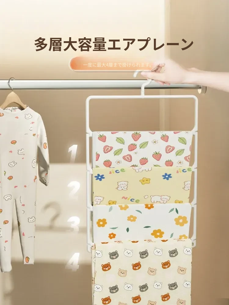 赤ちゃんのバスタオル収納便利グッズ!赤ちゃん専用タオル折りたたみハンガー、子供用クローゼットに最適。多機能クリップ付き、靴下や衣類もかけられる!整理整頓が楽しくなるアイテムです。