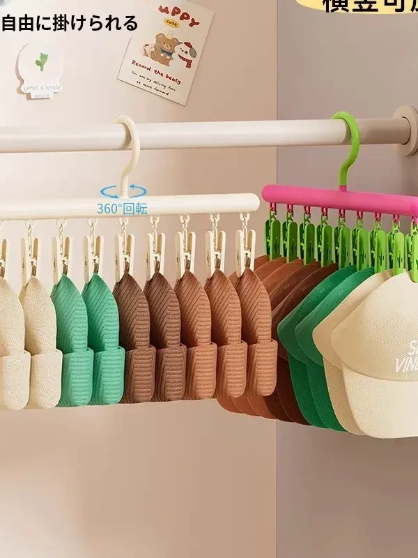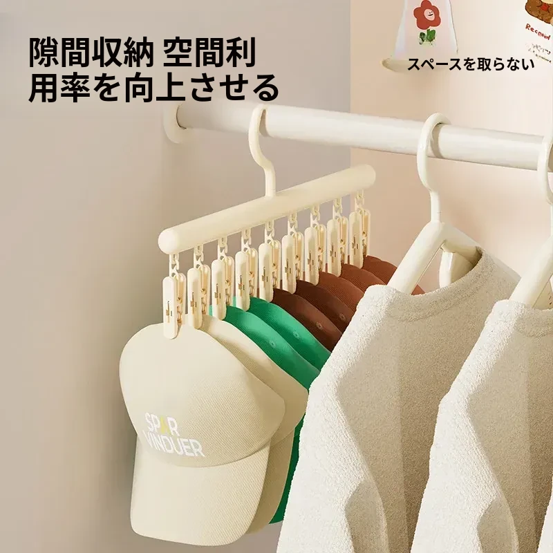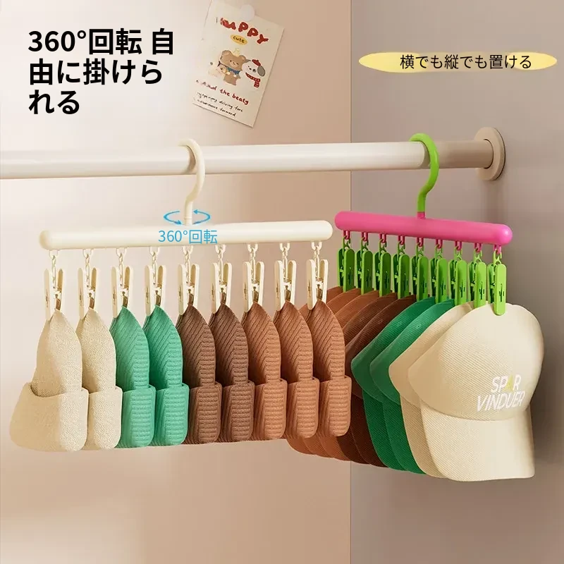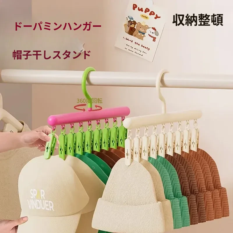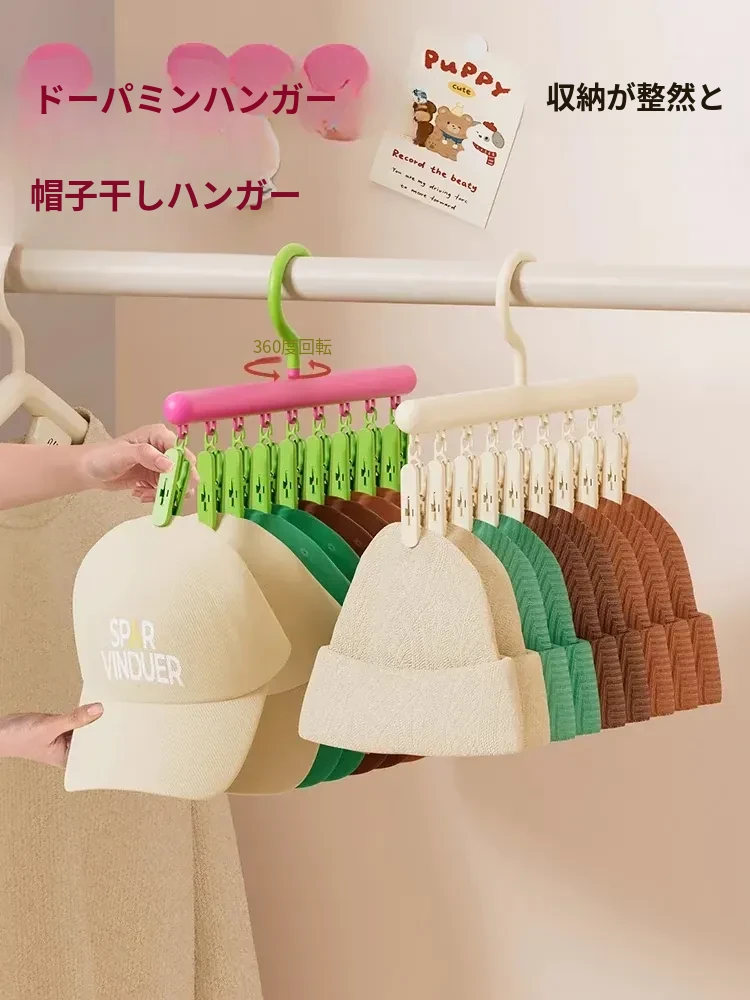 ドーパミンキャップ収納神器!家庭用クローゼットに最適な多機能クリップ式回転ハンガー。無痕で使いやすく、寮生活にもぴったりな衣類干しラック!