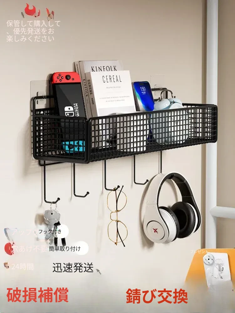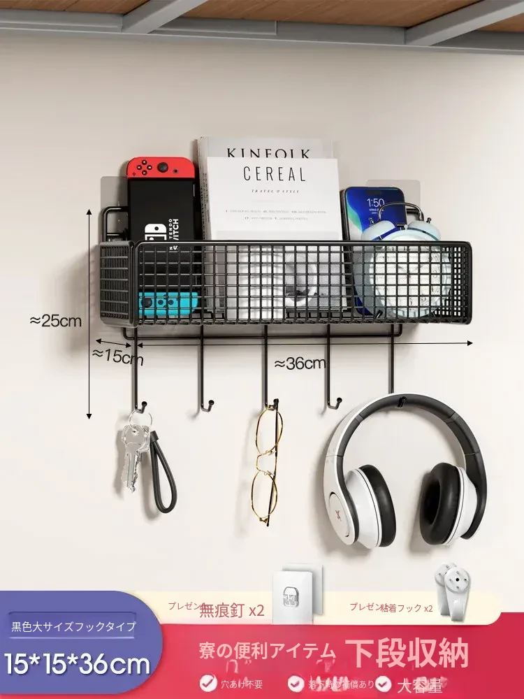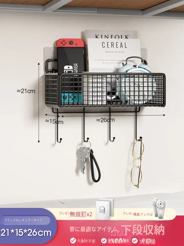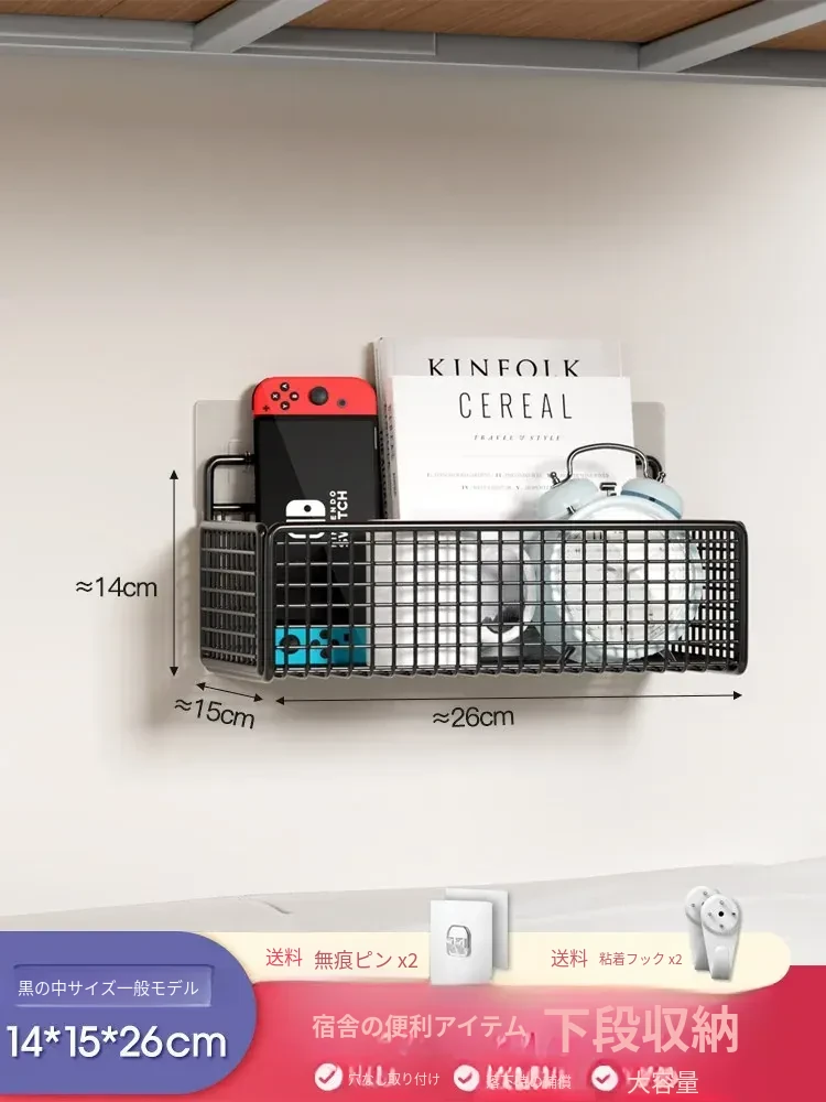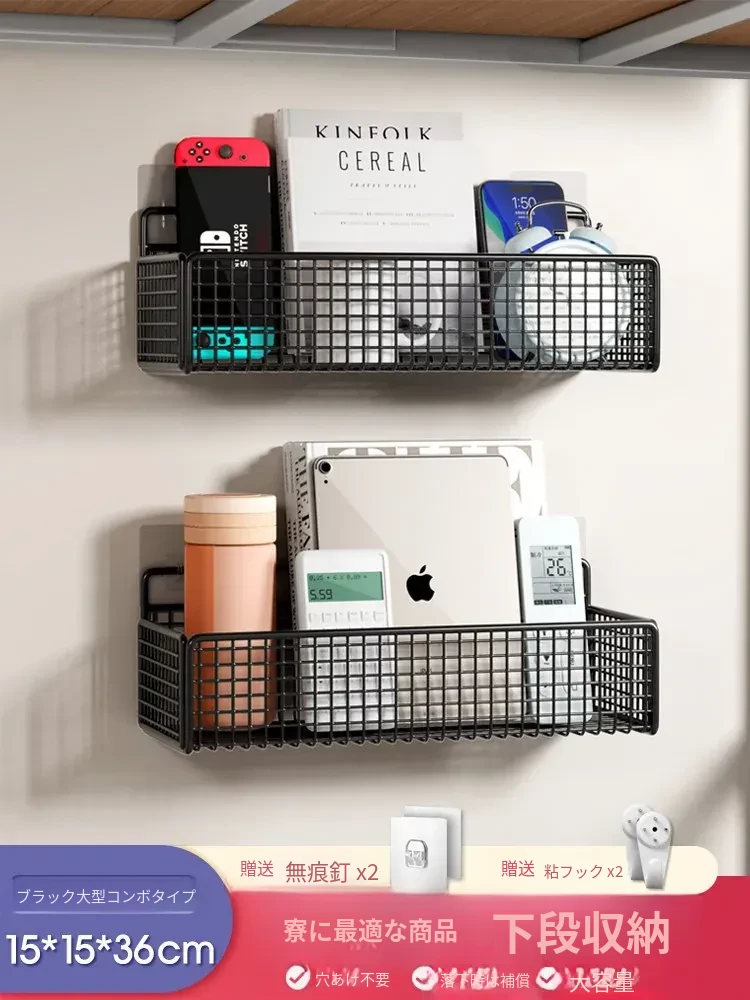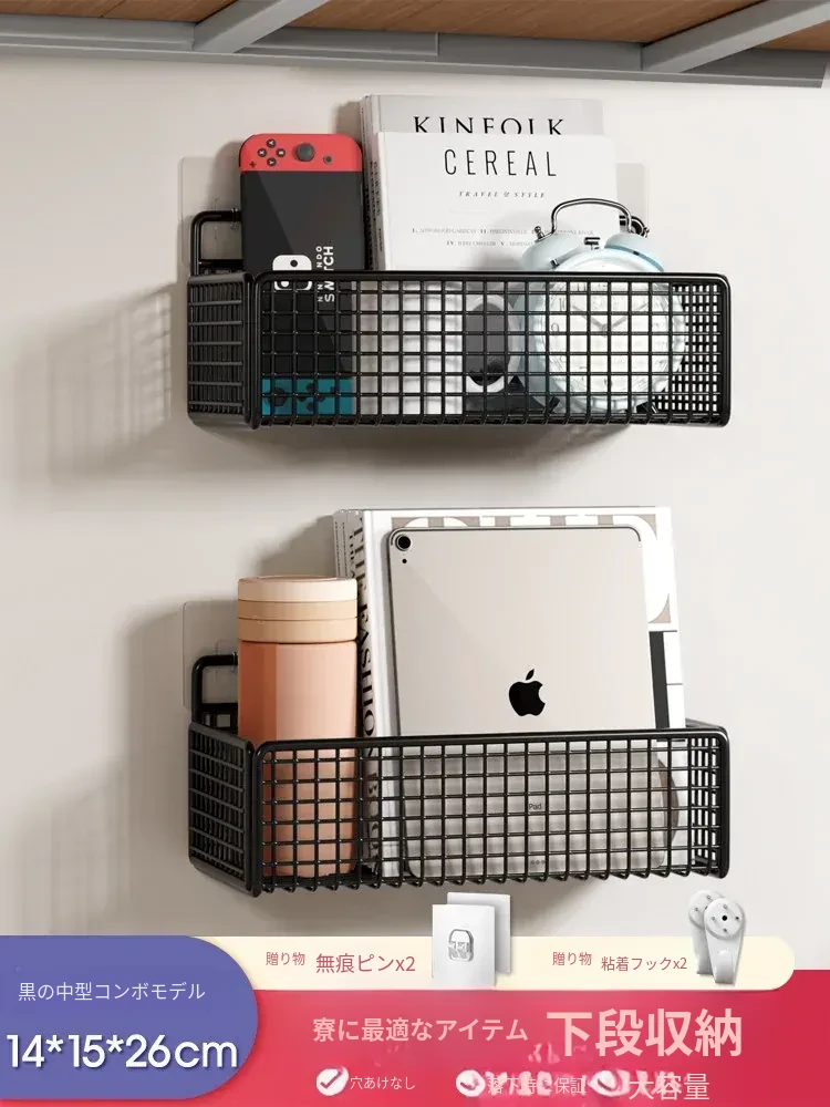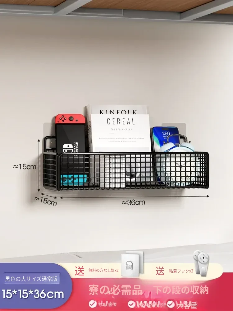 壁掛け収納ラック 寝室に最適!打孔不要のアイアンシェルフ 宿舎の必需品!スペースを有効活用し、すっきりとした空間を実現。上段ベッドにも最適な便利な収納ボックス!
