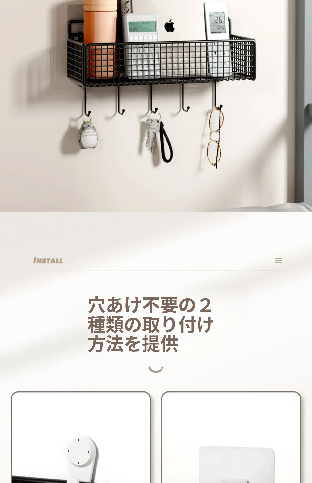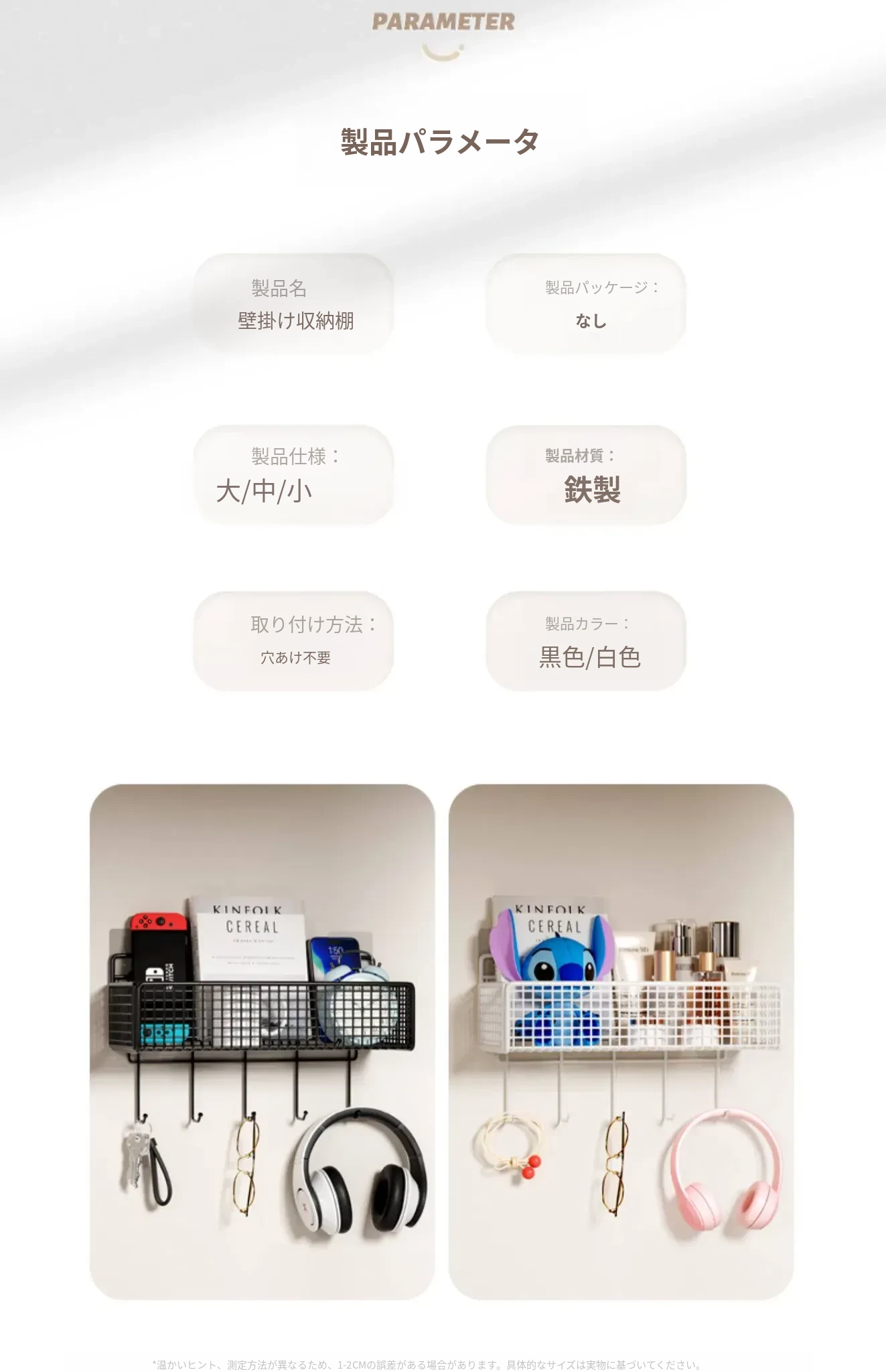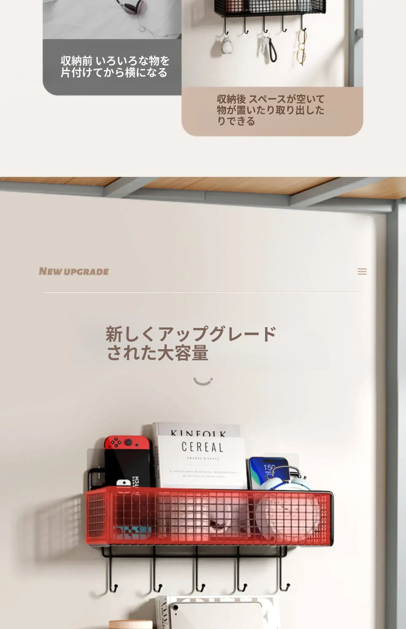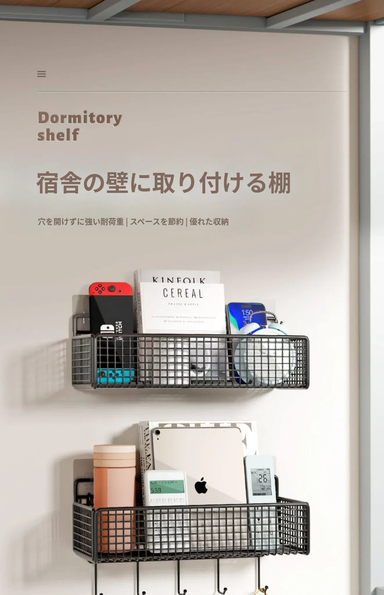 壁掛け収納ラック 寝室に最適!打孔不要のアイアンシェルフ 宿舎の必需品!スペースを有効活用し、すっきりとした空間を実現。上段ベッドにも最適な便利な収納ボックス!