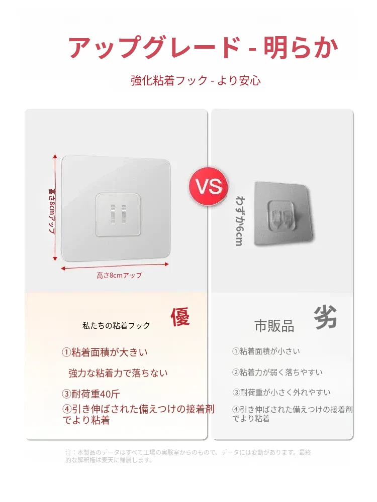 黒の大サイズフック - 厚みを増した【無痕釘+免釘接着剤付き】