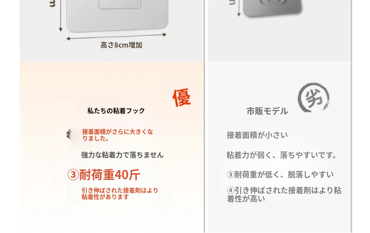 2層黒の大サイズフック付き - 厚みを増した【無痕釘+免釘接着剤付き】