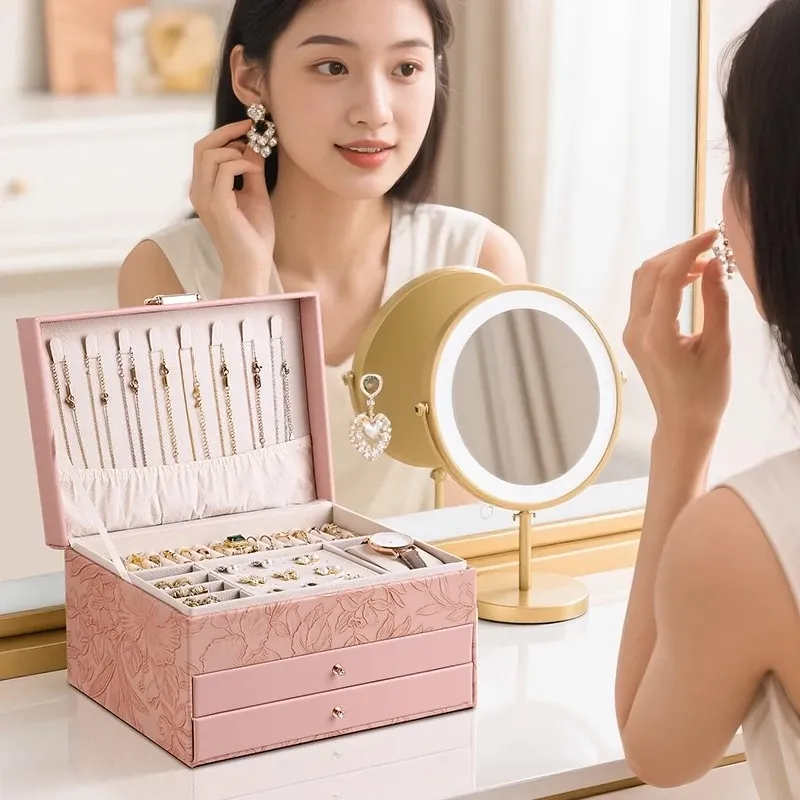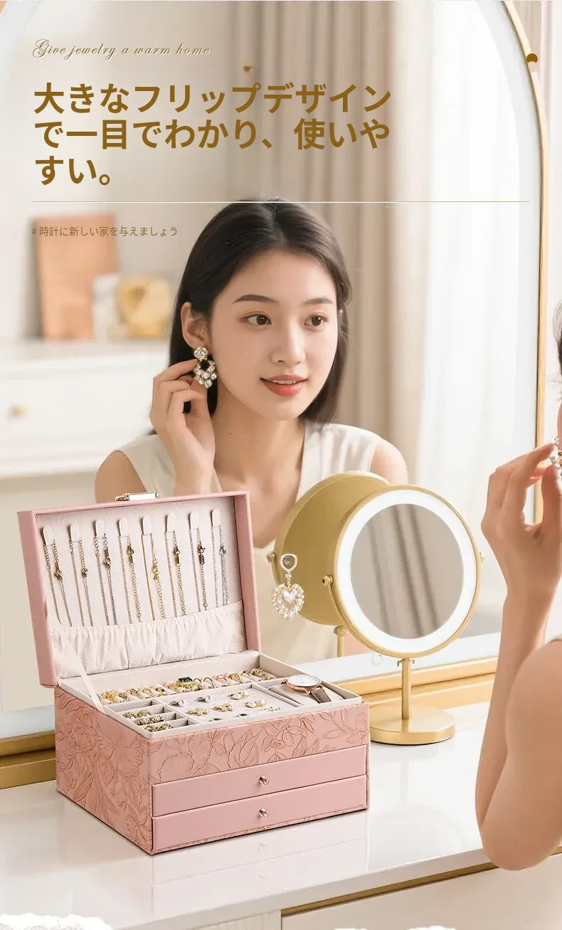 新作ジュエリーボックス 高級感あふれる大容量ピアス&イヤリング収納ケース 結婚・誕生日にぴったりの素敵なギフト!