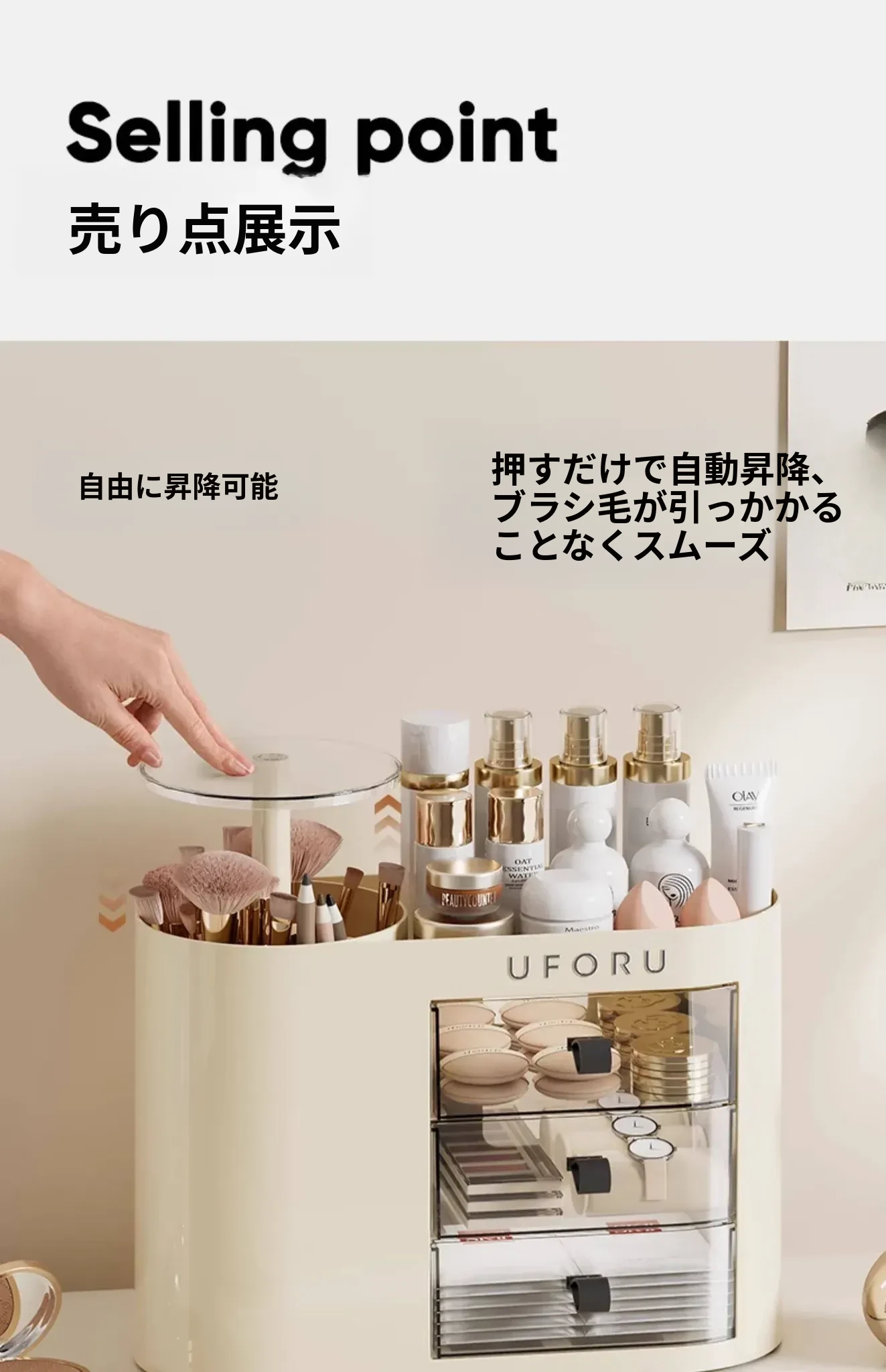 クリームホワイト⭐【プレス昇降|多層仕切り】