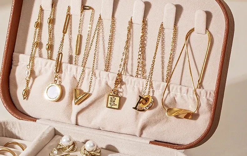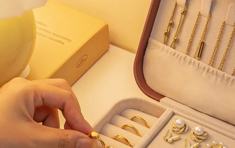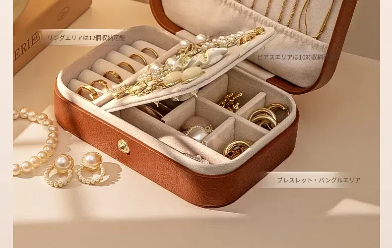 高級感あふれる携帯用ジュエリーボックス - メラード製の洗練された小型デザイン、イヤリング、リング、ネックレス、ゴールドアクセサリーを旅行に最適なスタイルで収納!