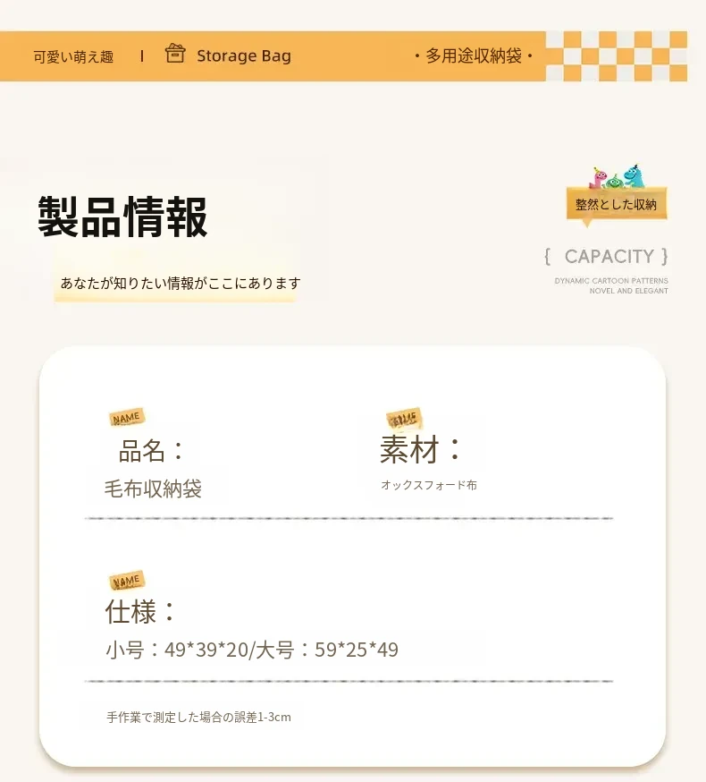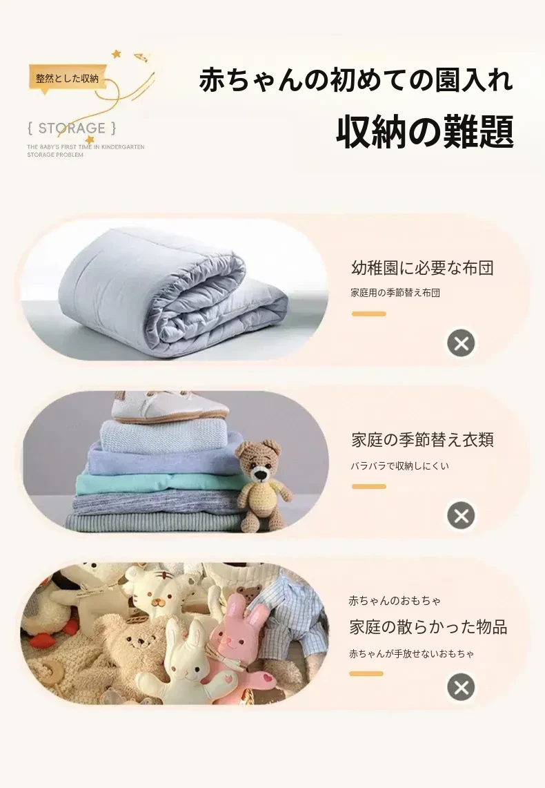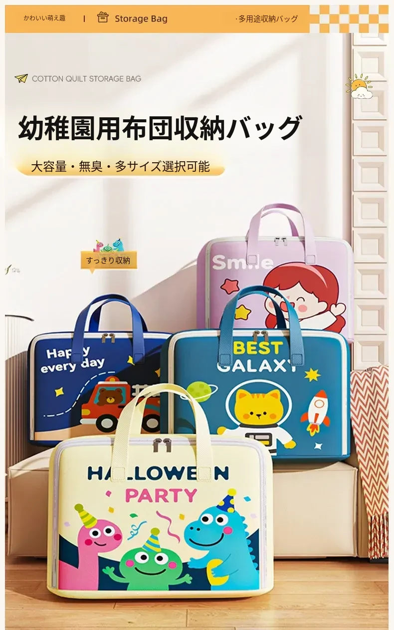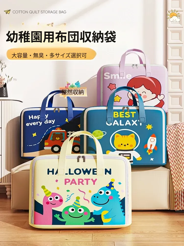 幼稚園用超大容量収納袋!厚手オックスフォード布製で、布団や衣類の引越し・整理に最適!お子様の大切なアイテムをスッキリ収納し、持ち運びもラクラク!