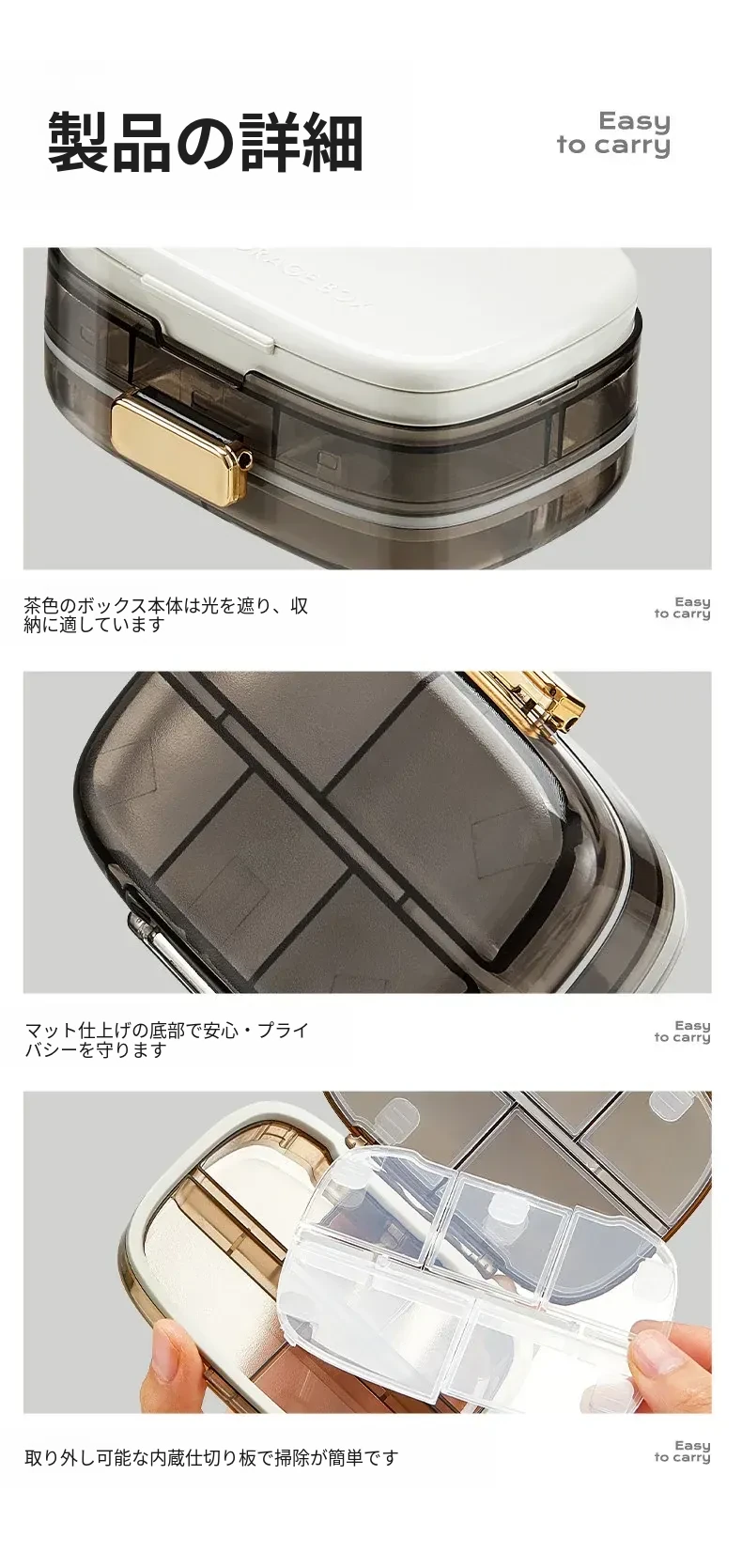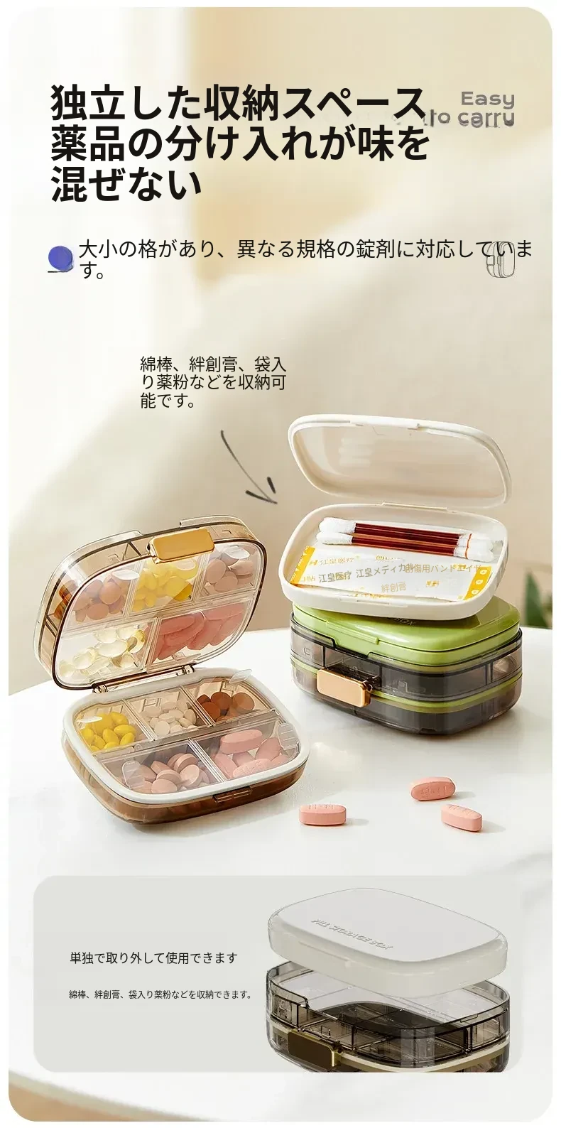 食品グレードの薬分包ボックス - 1週間分の7日間ポータブルミニ薬ケース!密封&防湿設計で、あなたの大切な薬をしっかり守ります。旅行や外出に最適な便利アイテム!