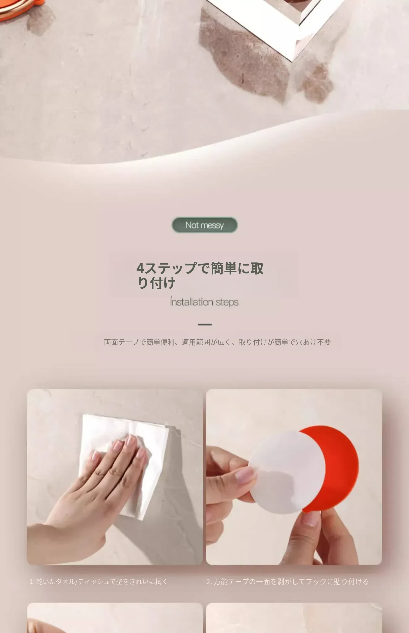穴あけ不要!強力無痕粘着フック - キッチンやバスルームに最適!大容量を支える壁掛け衣類ハンガー、創造的な吊り下げフックでスッキリ収納!