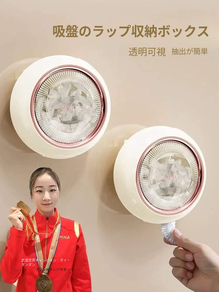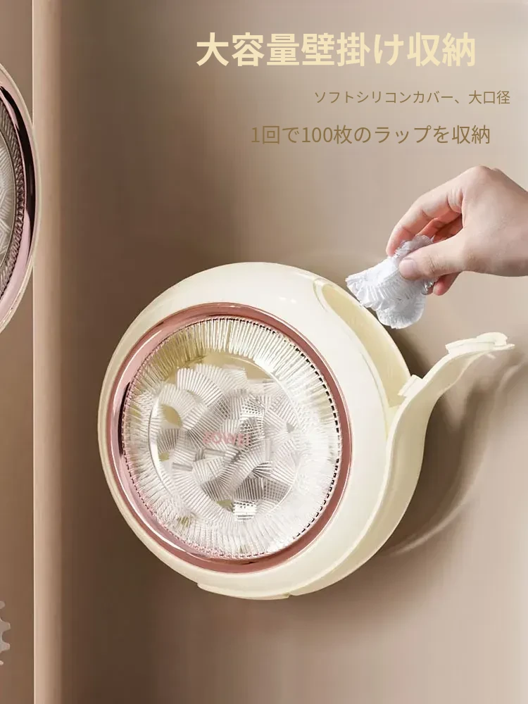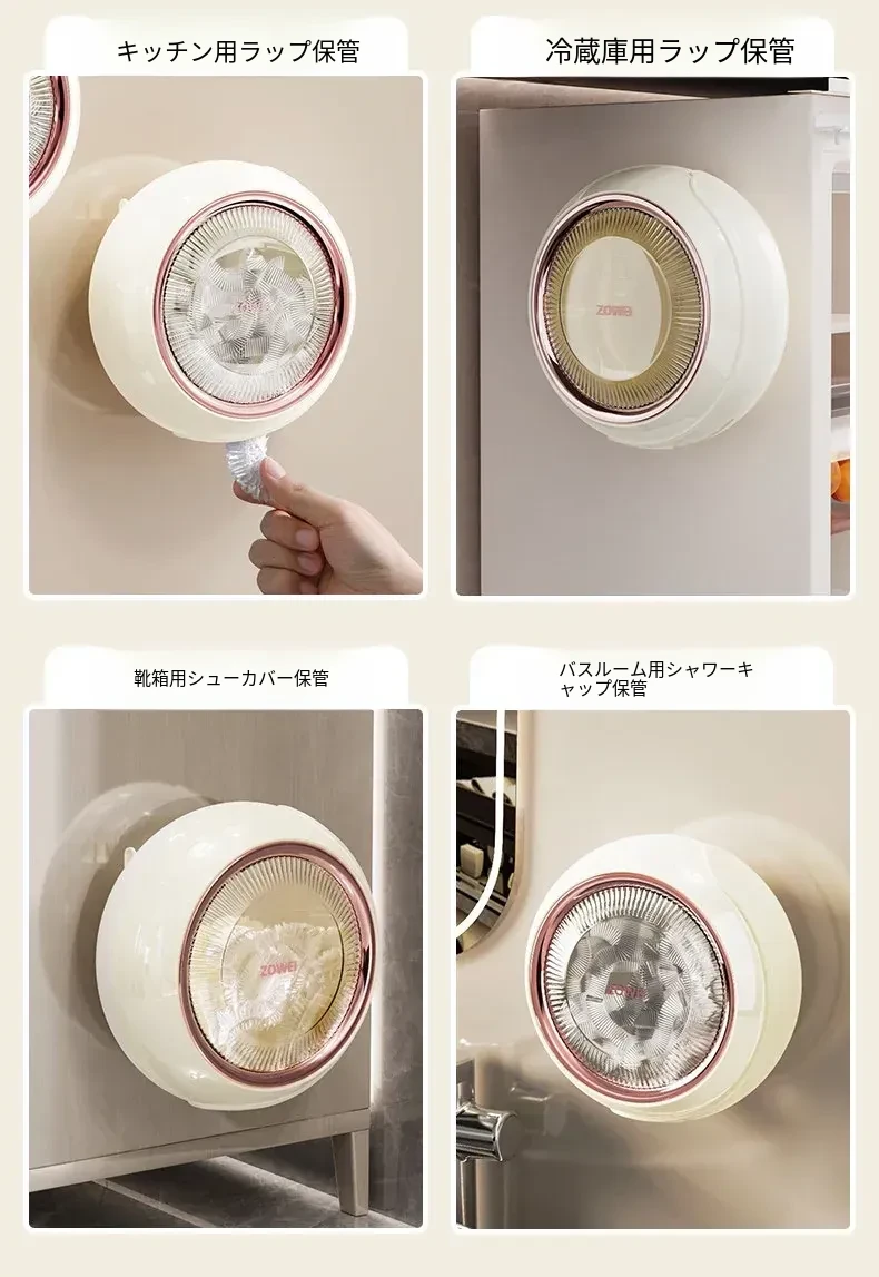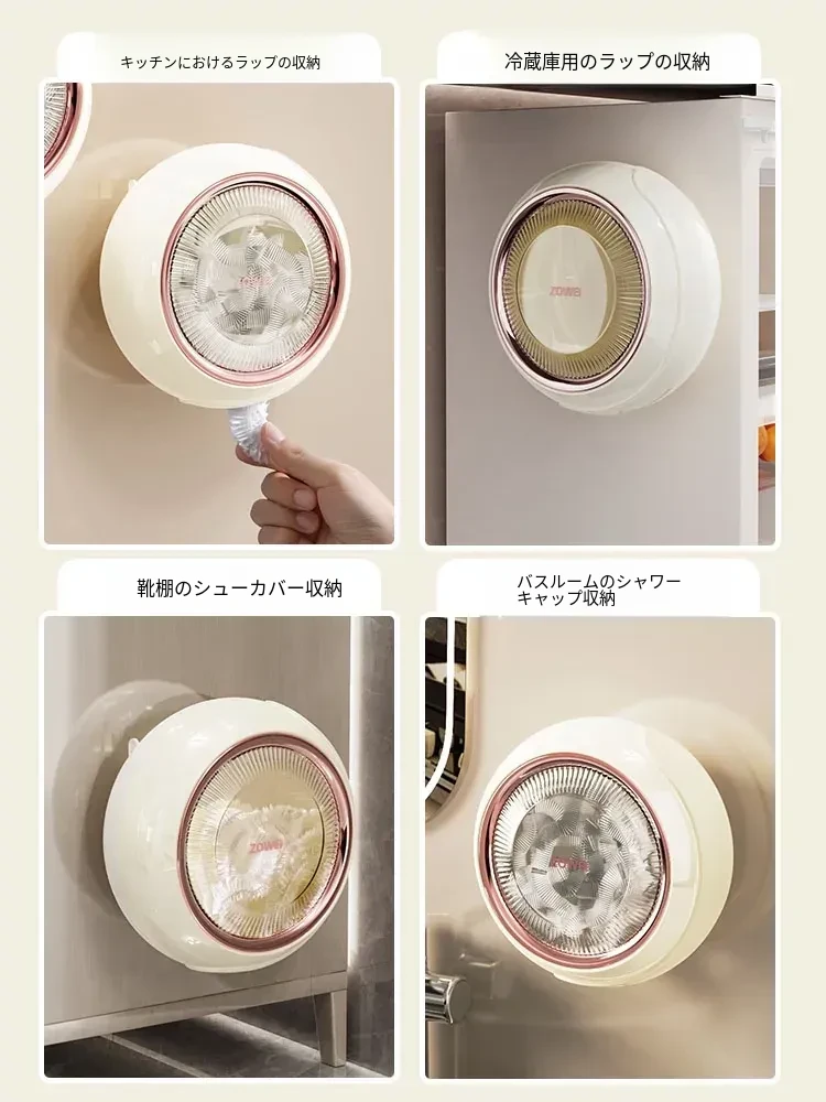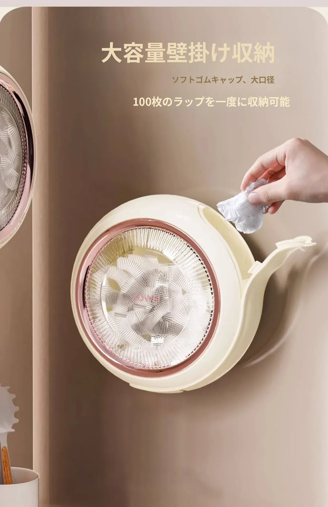 大容量吸盤式保鮮袋収納ボックス - 壁掛け設計で取り出し簡単!穴あけ不要の便利アイテムで、キッチンをスッキリ整理!使い捨て保鮮袋もスマートに収納!