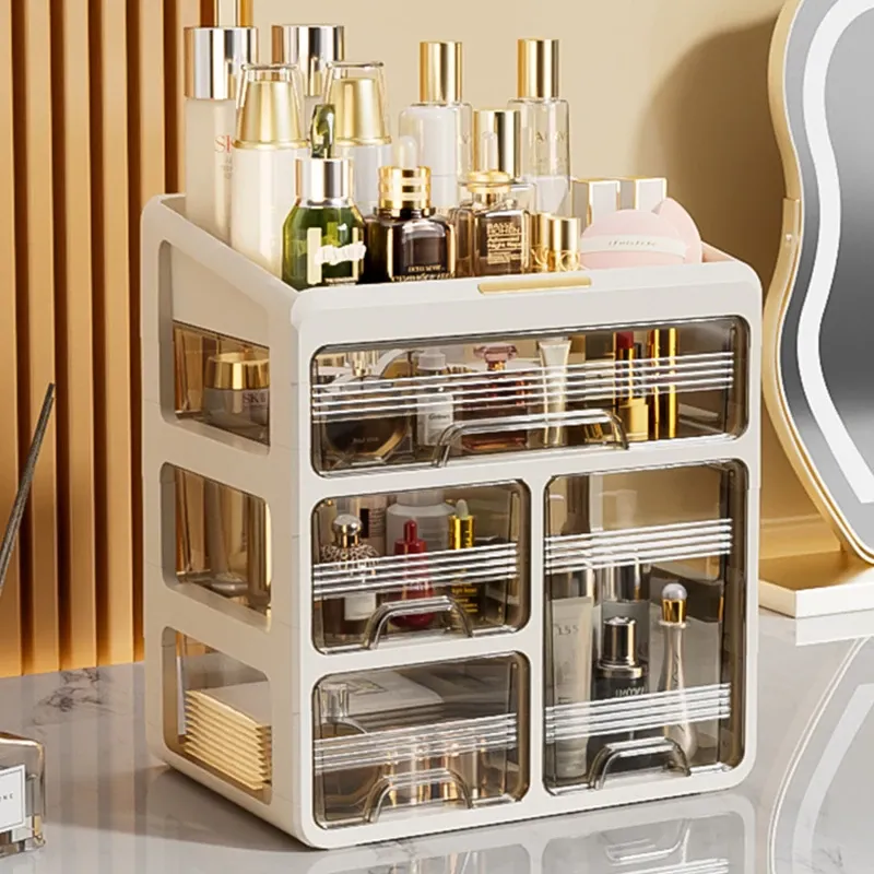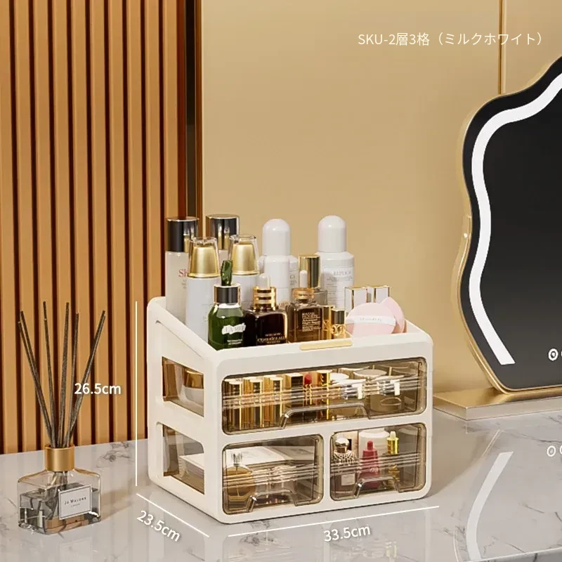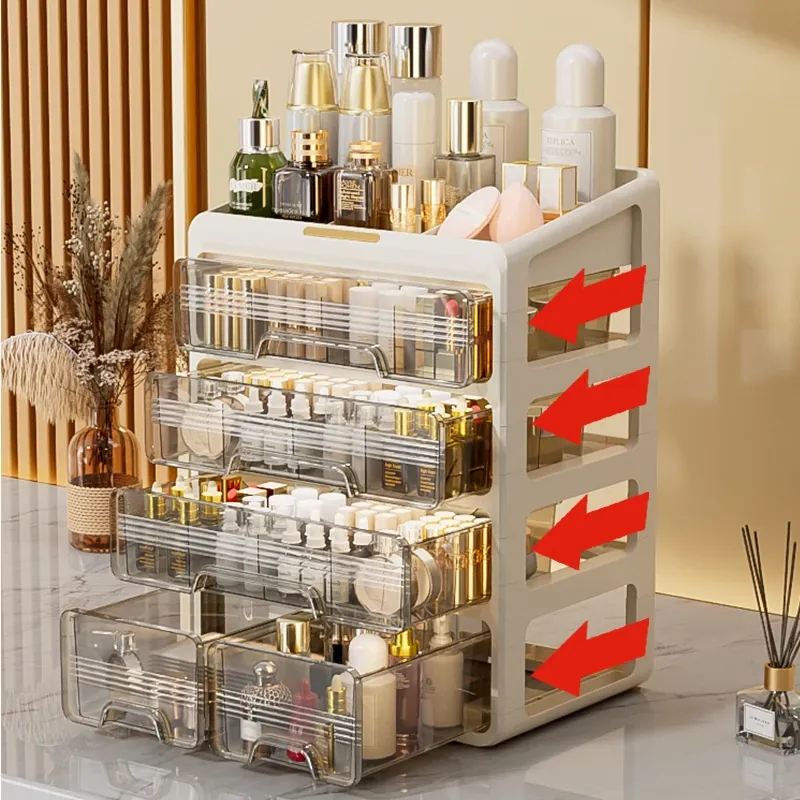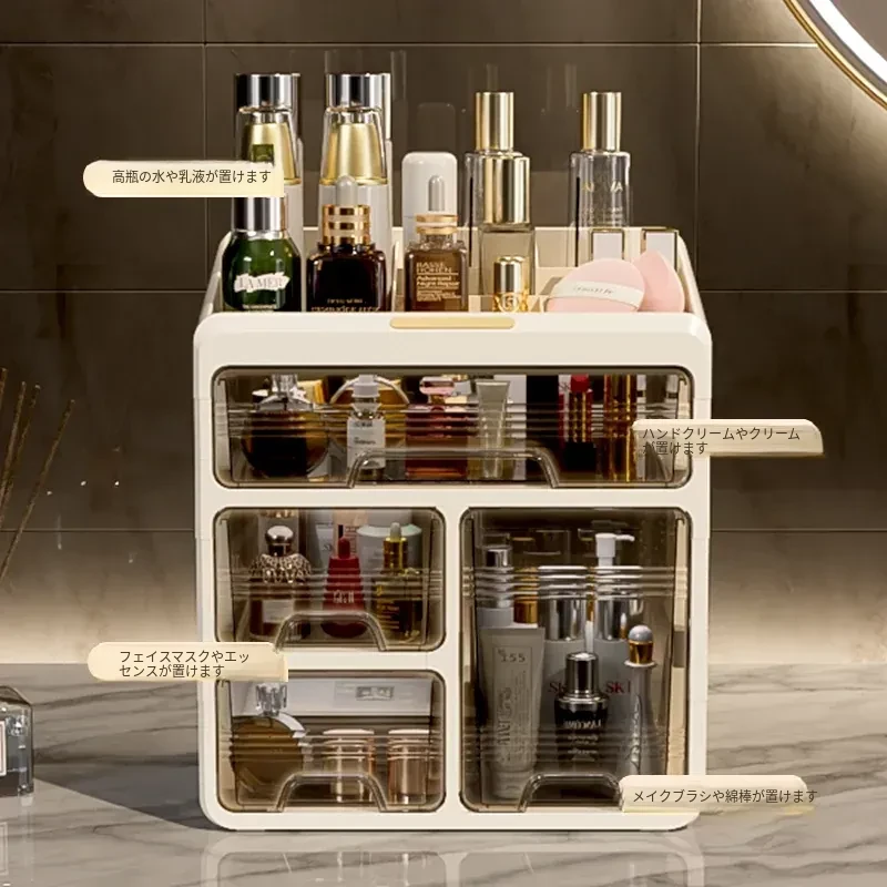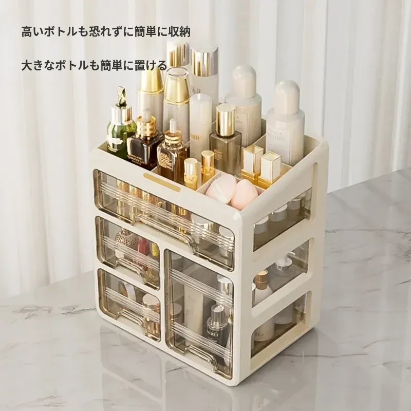 大容量透明化粧品収納ボックス!デスク上をすっきり整理する引き出し式口紅・化粧ブラシホルダー。寮や自宅のドレッサーに最適なアイテムで、美しさを手軽に引き出しましょう!