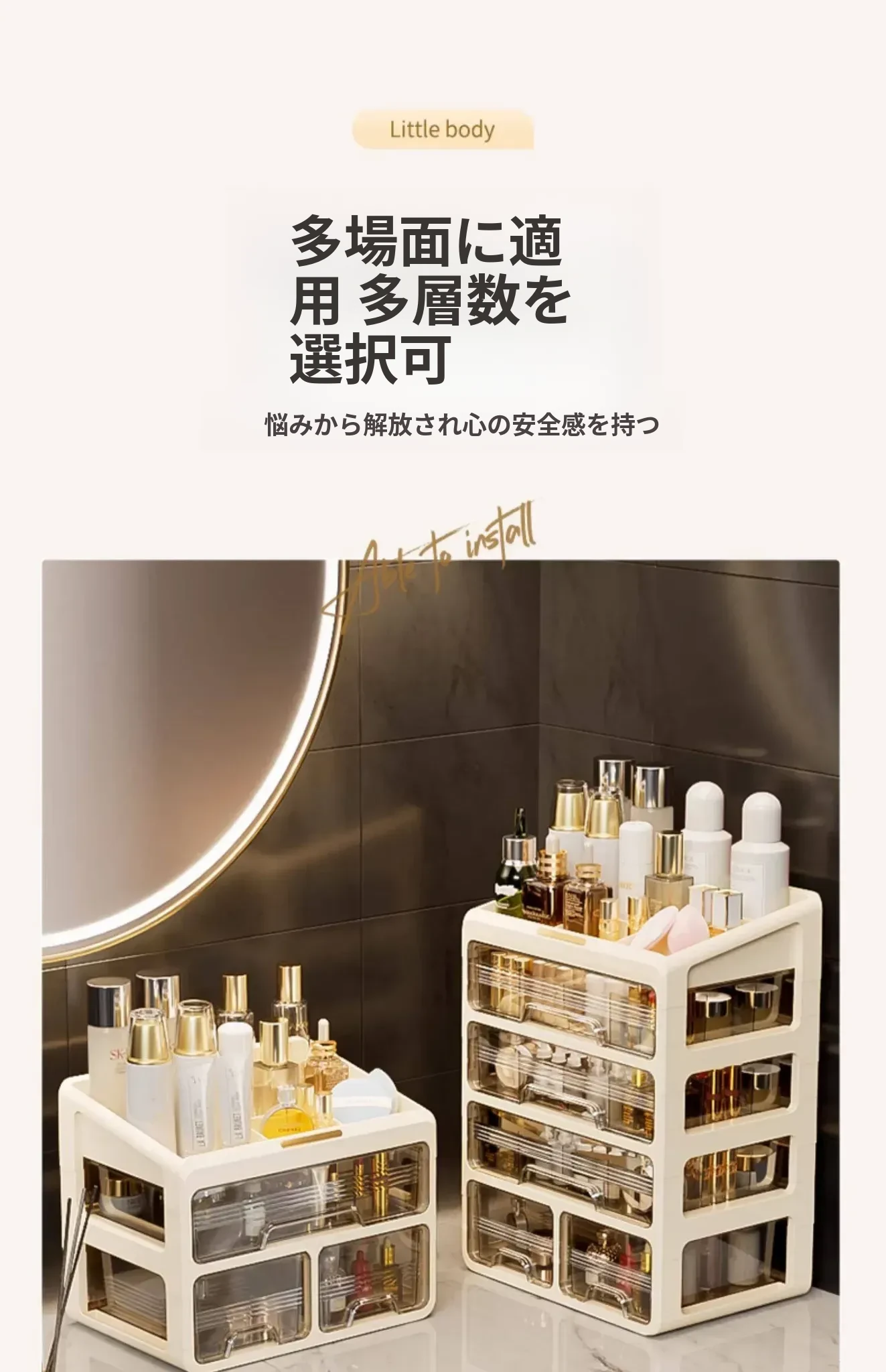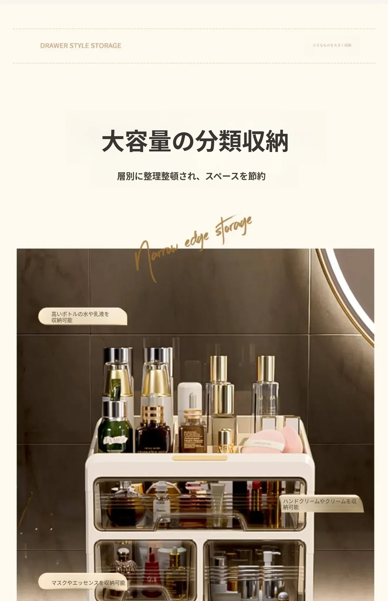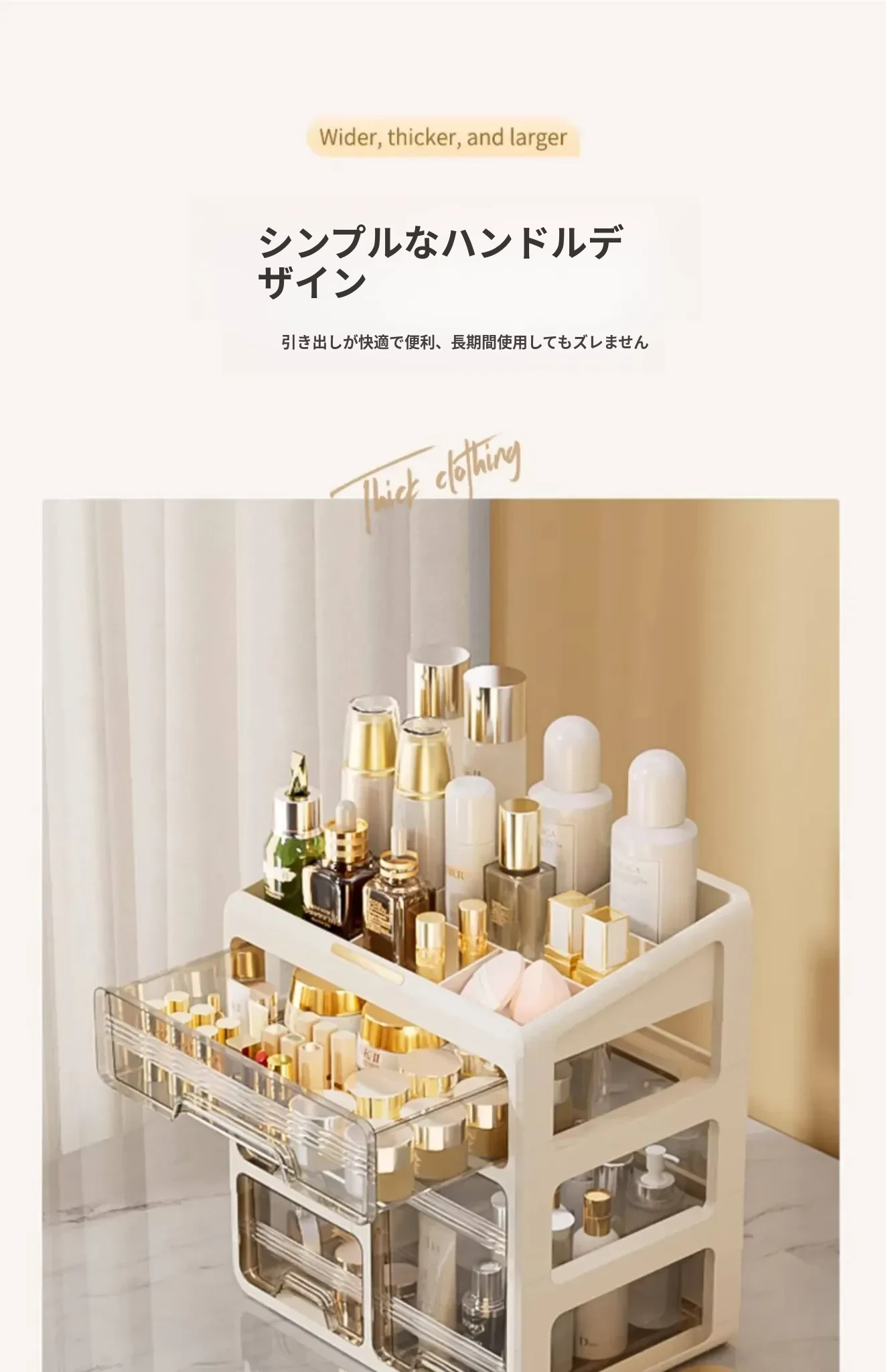 大容量透明化粧品収納ボックス!デスク上をすっきり整理する引き出し式口紅・化粧ブラシホルダー。寮や自宅のドレッサーに最適なアイテムで、美しさを手軽に引き出しましょう!