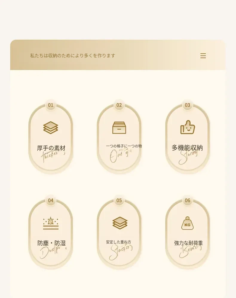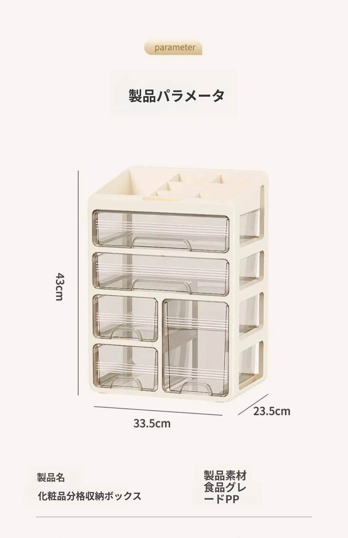4段5仕切りクリームホワイト収納ボックス【防塵・取り付け不要】