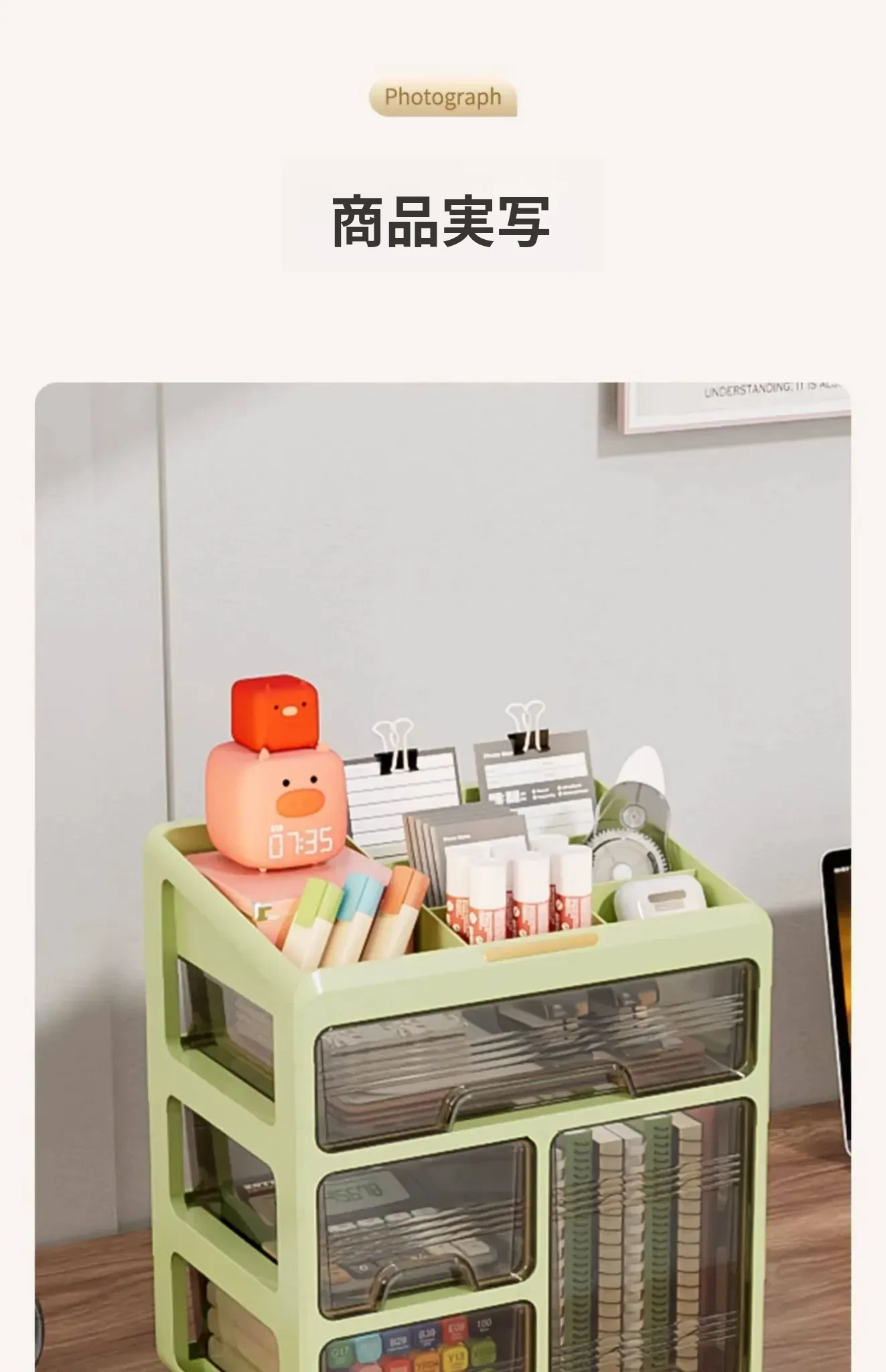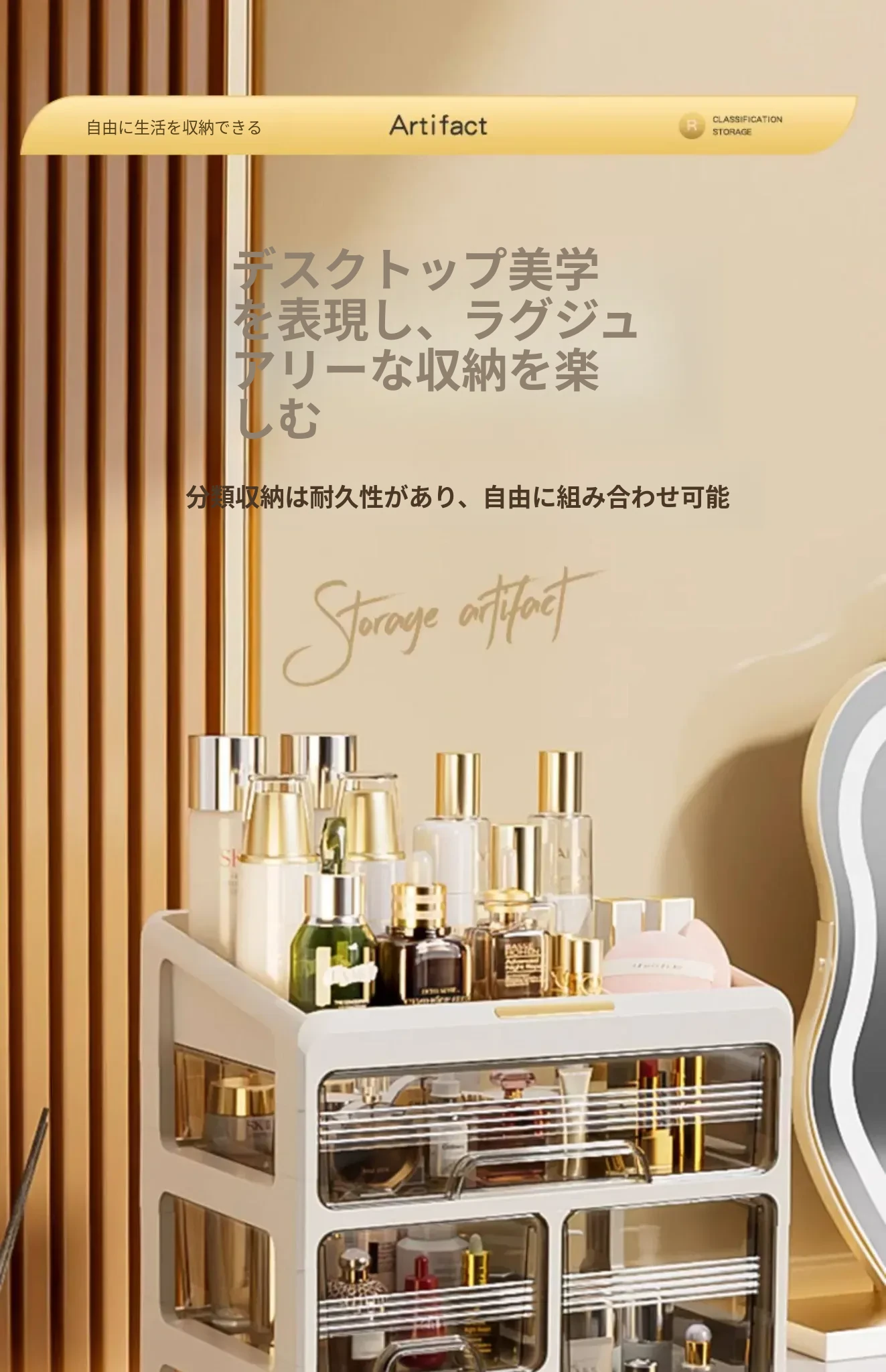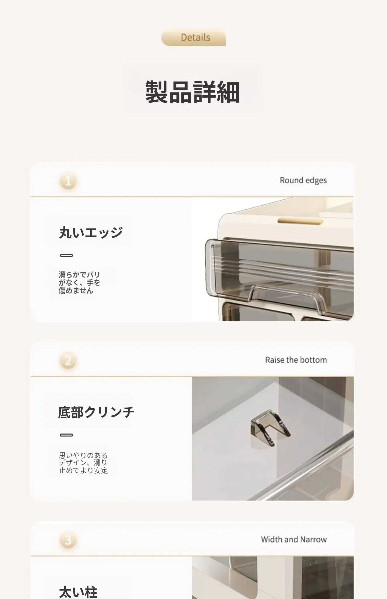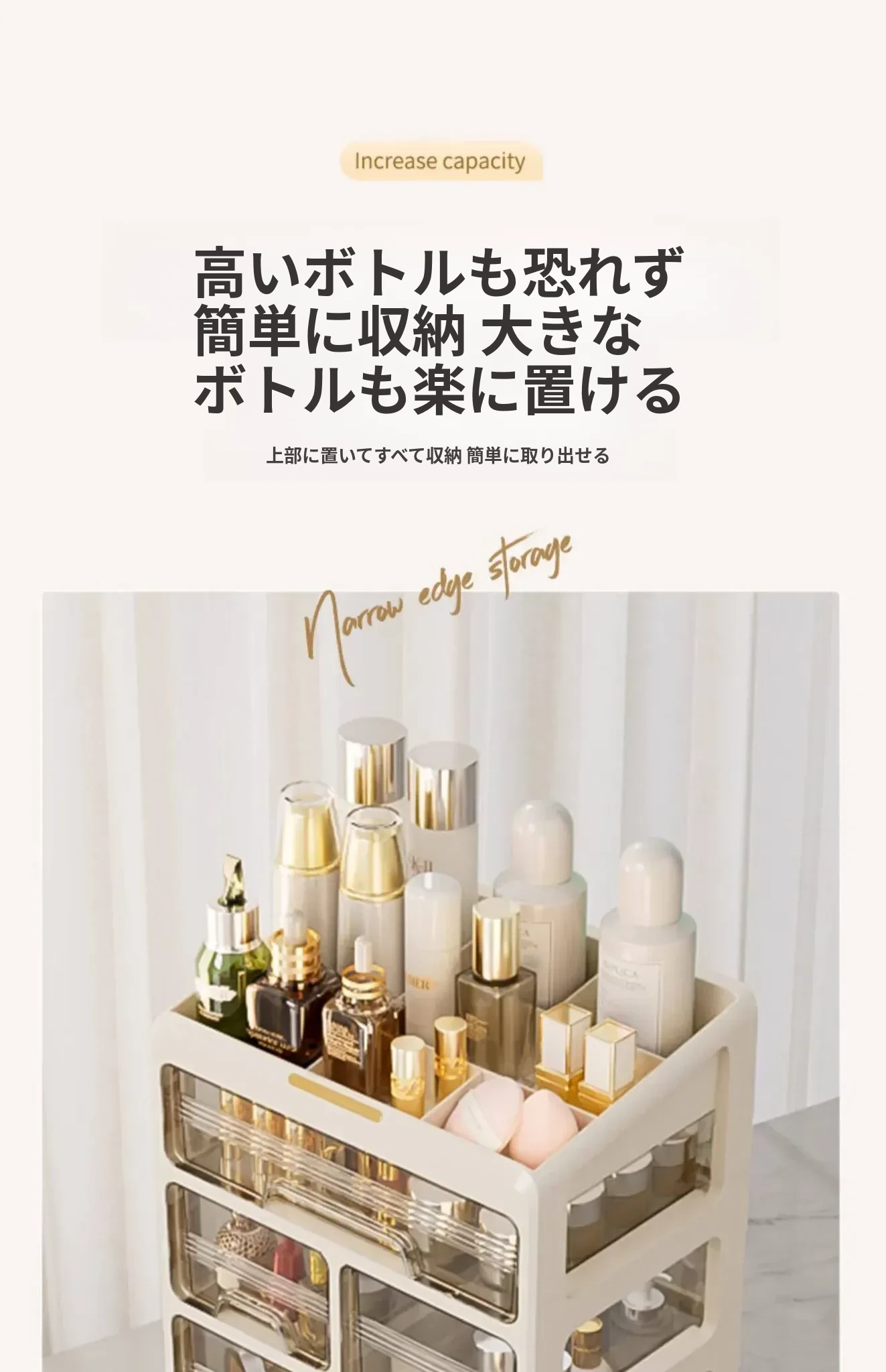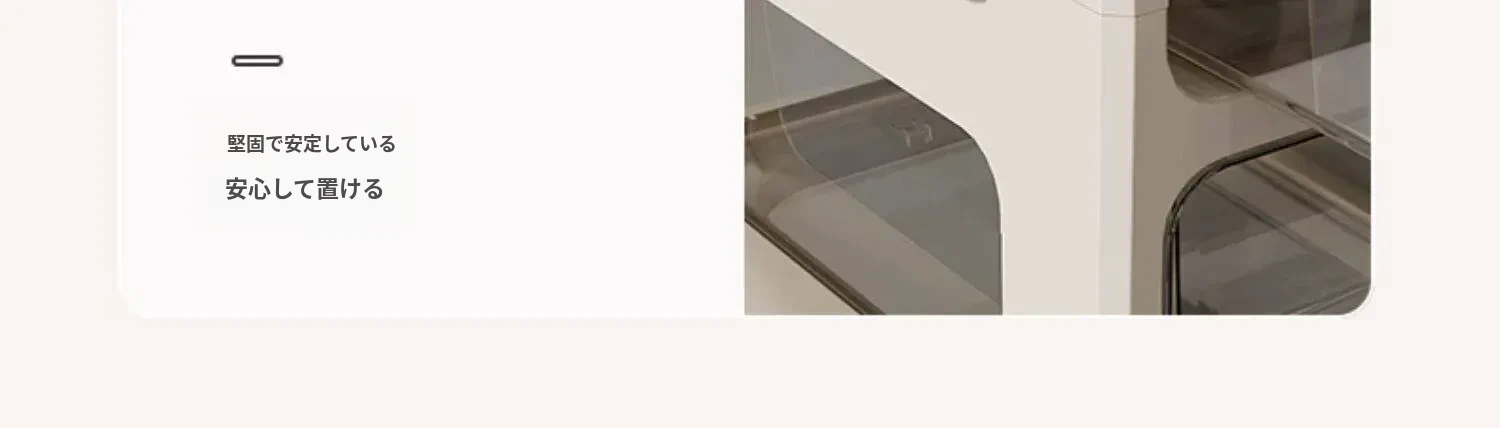 3段4仕切りクリームホワイト収納ボックス【防塵・取り付け不要】