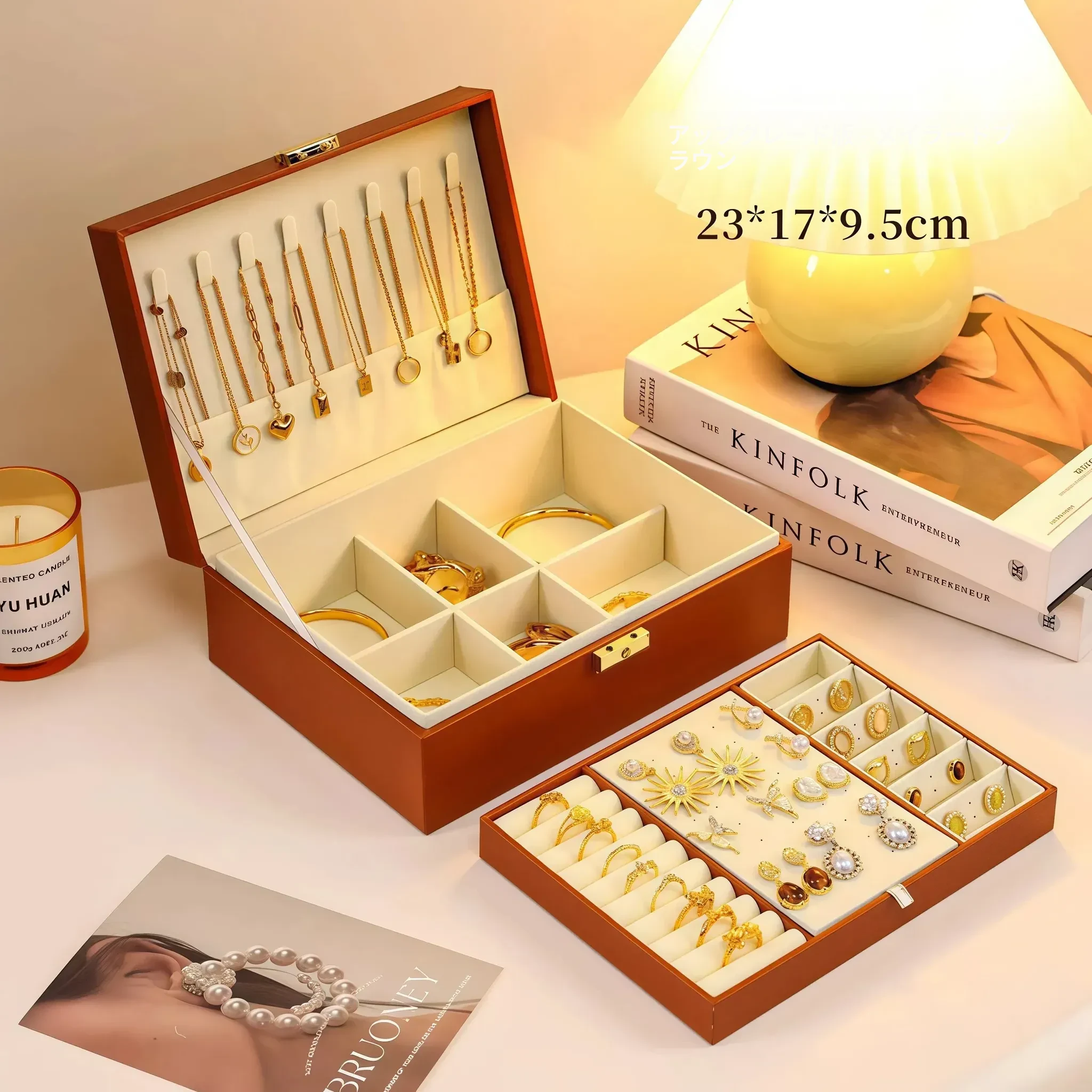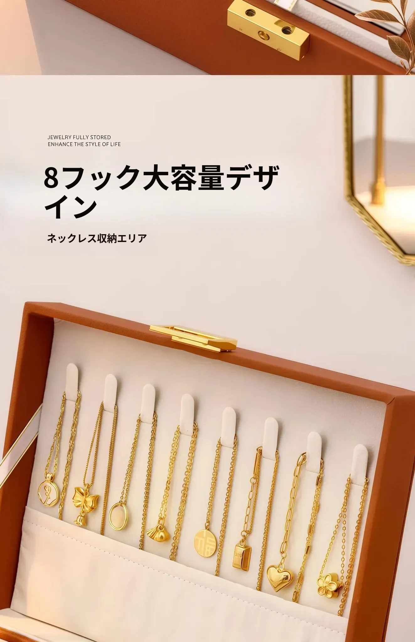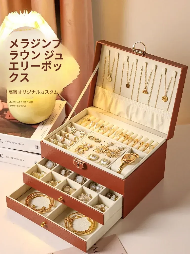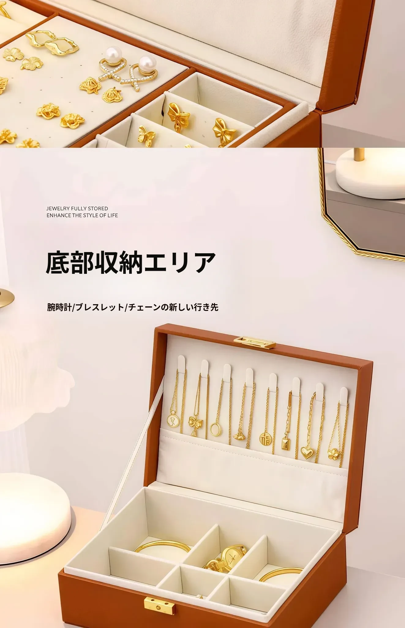 高級感あふれるゴールドジュエリーボックス - 新作!酸化防止機能付き、イヤリング・ネックレス・ピアス・アクセサリーを美しく収納。大切なジュエリーを守る、洗練されたデザインの収納ボックス!