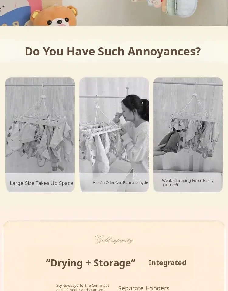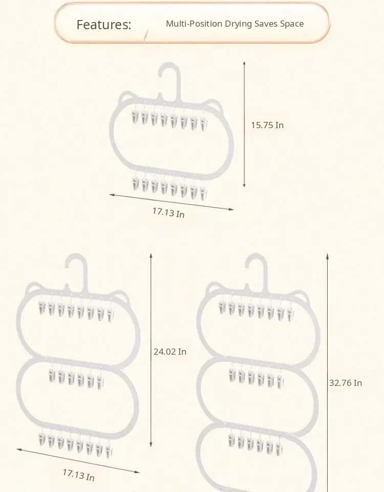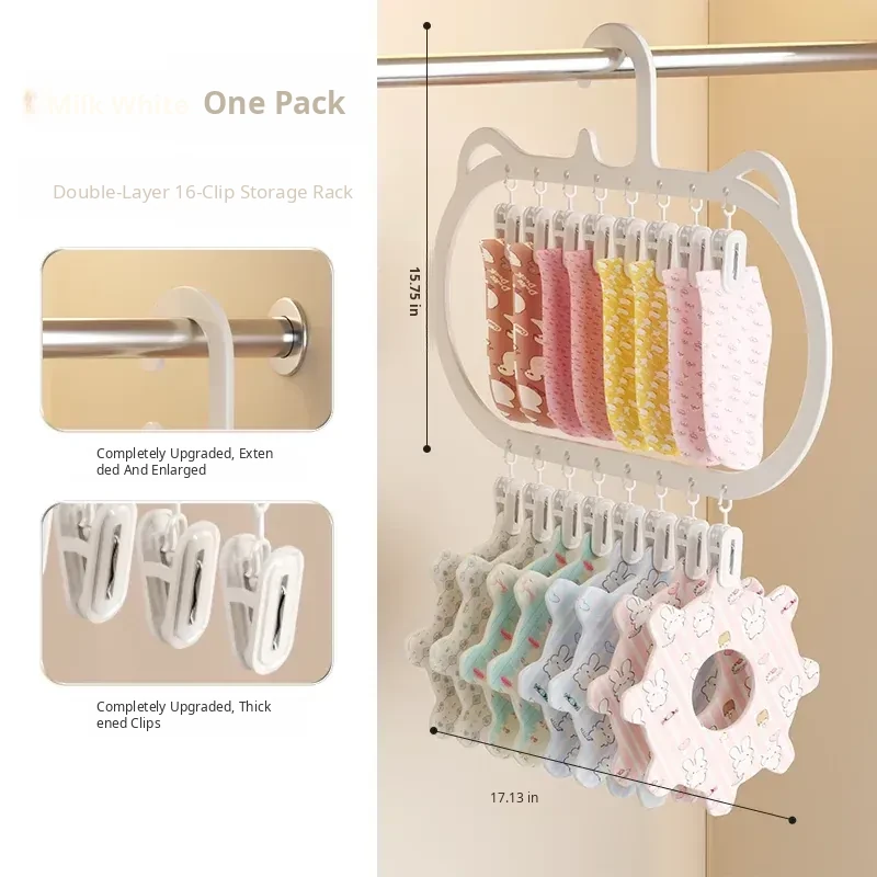 Creamy White Double-Layer 16-Clip Hanger❤Integrated Drying Rack | Ultra-Space Saving