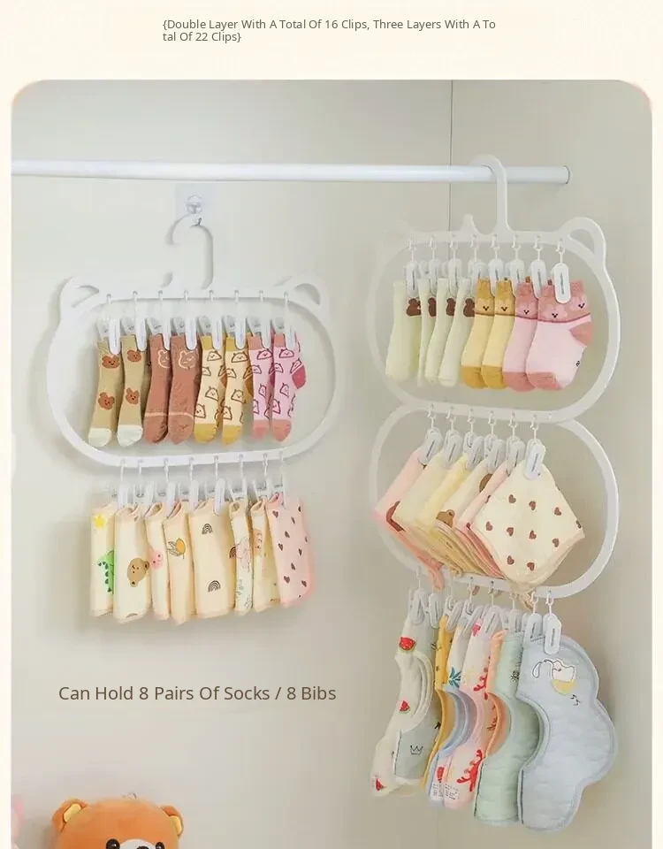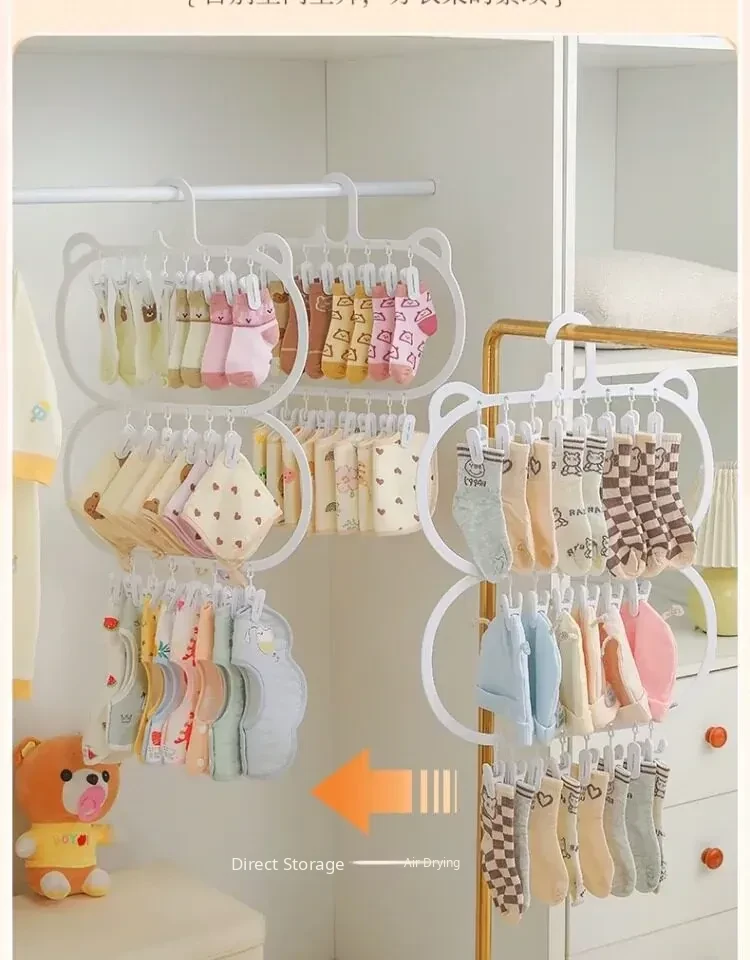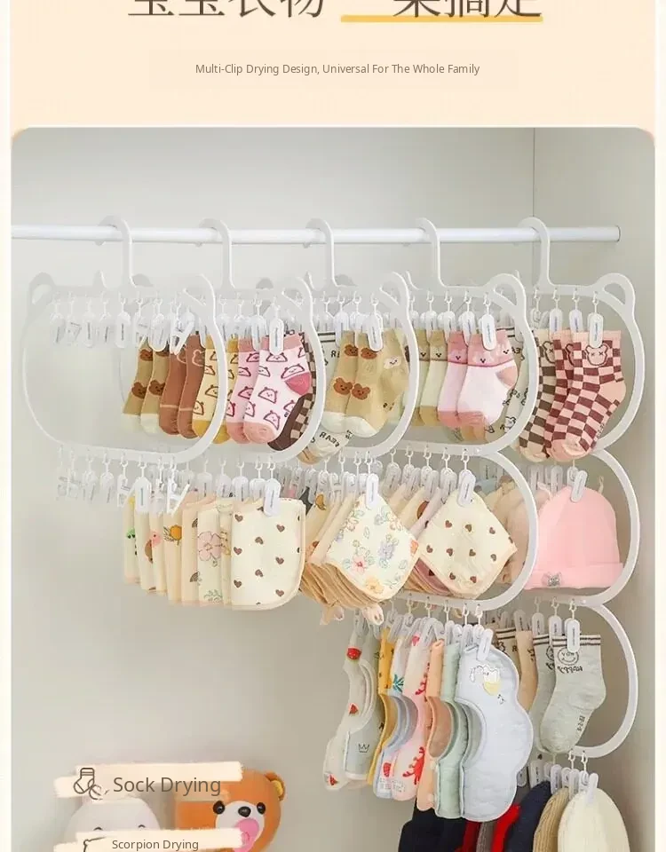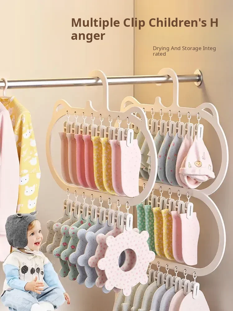 Multifunctional Baby Clothes Hangers with Clips - Space-Saving Sock Drying Rack for Kids' Wardrobe, Perfect Home Storage Solution!