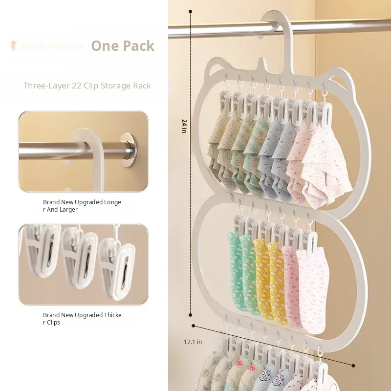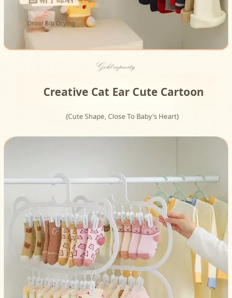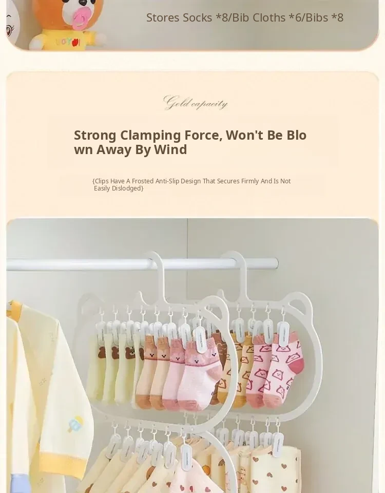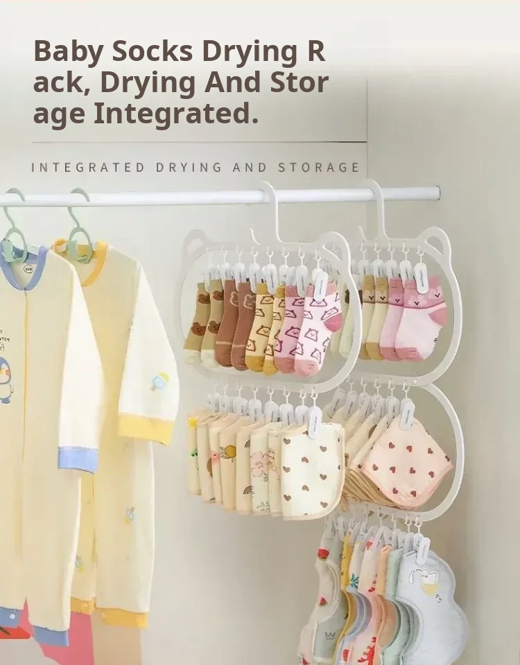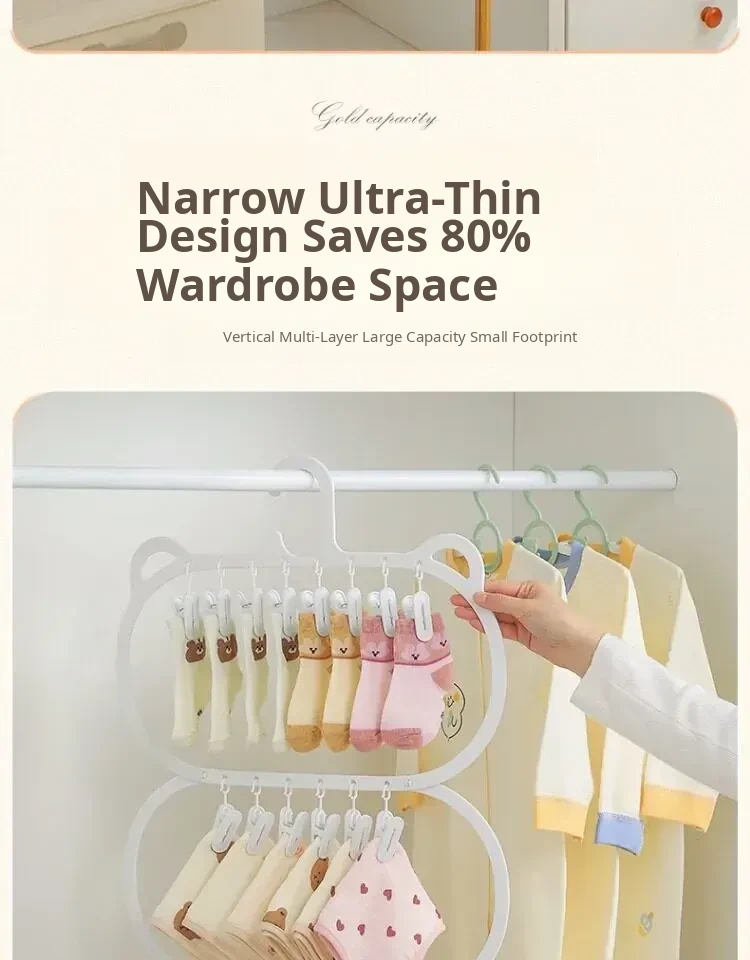 Multifunctional Baby Clothes Hangers with Clips - Space-Saving Sock Drying Rack for Kids' Wardrobe, Perfect Home Storage Solution!
