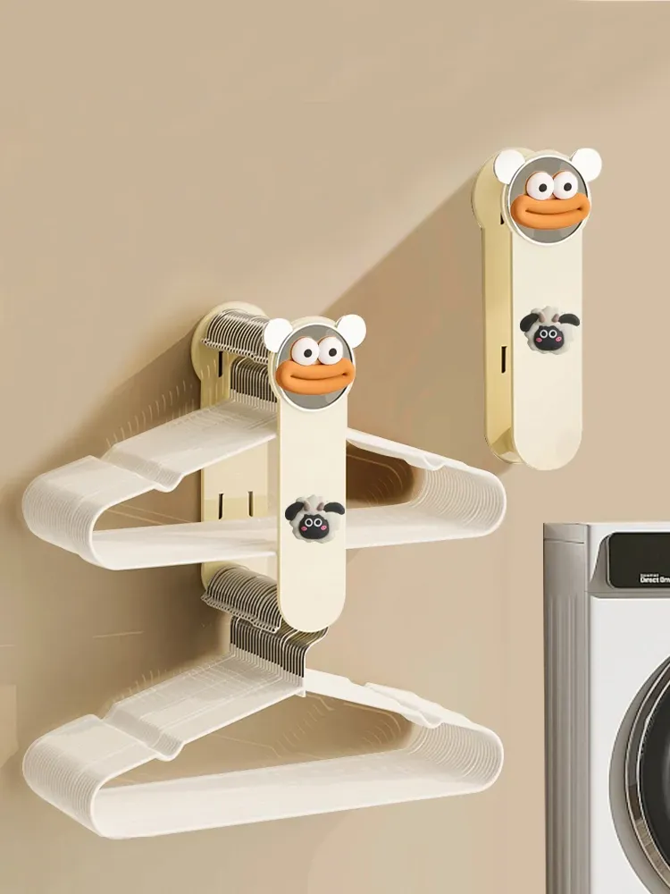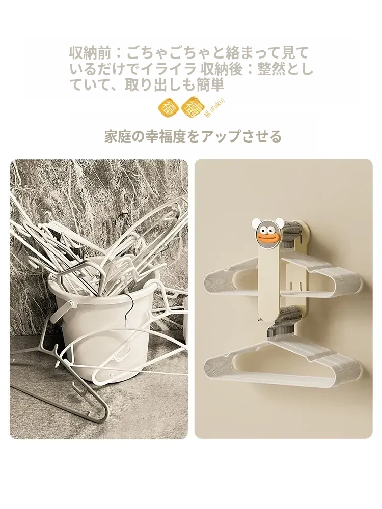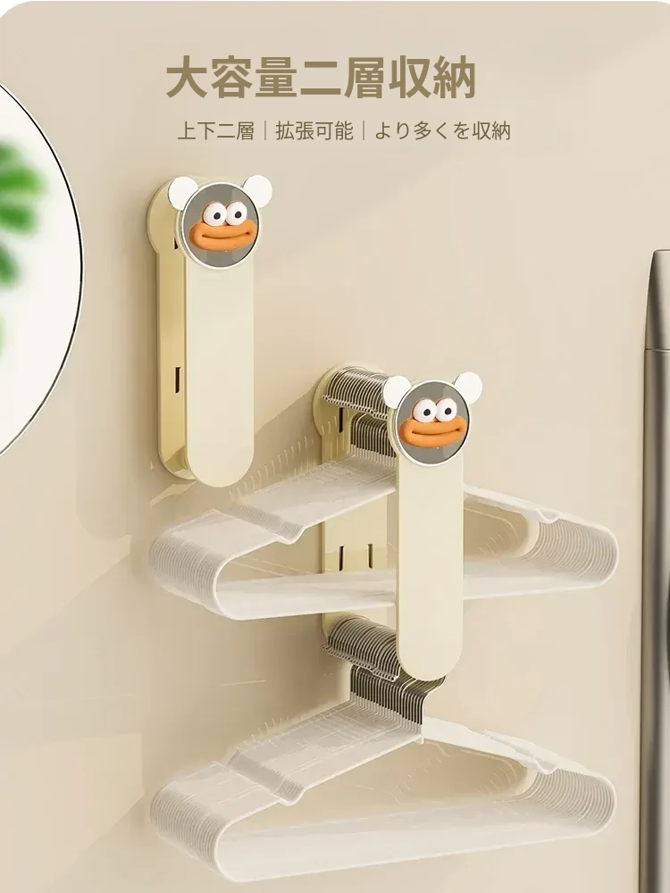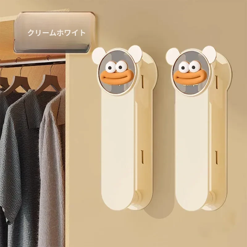 クリーム風【アップグレード粘着タイプ】ソーセージ口プレゼント 伸縮衣類ハンガー収納ラック