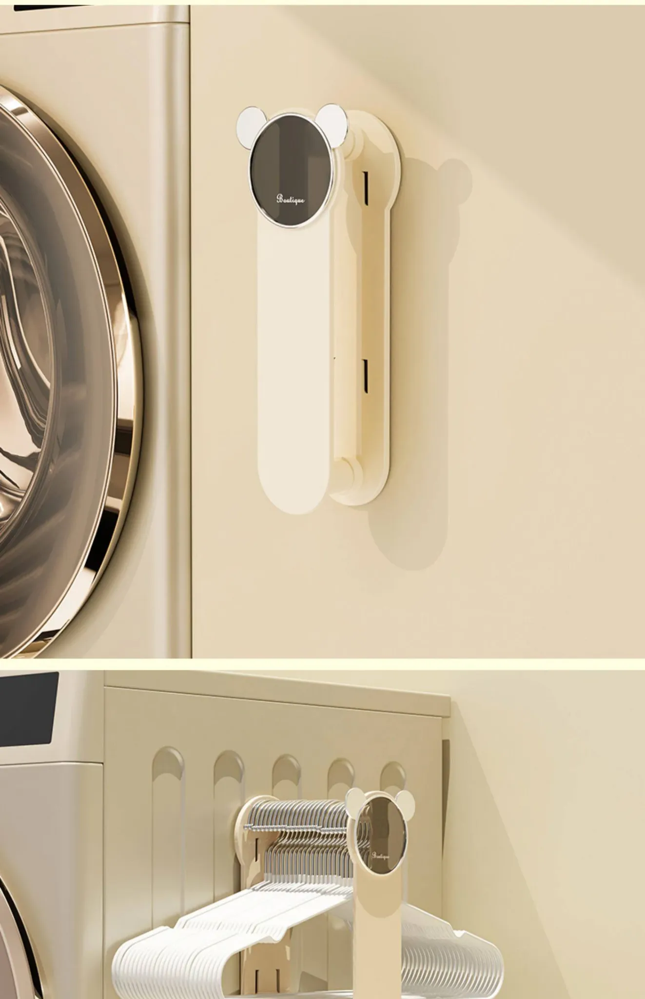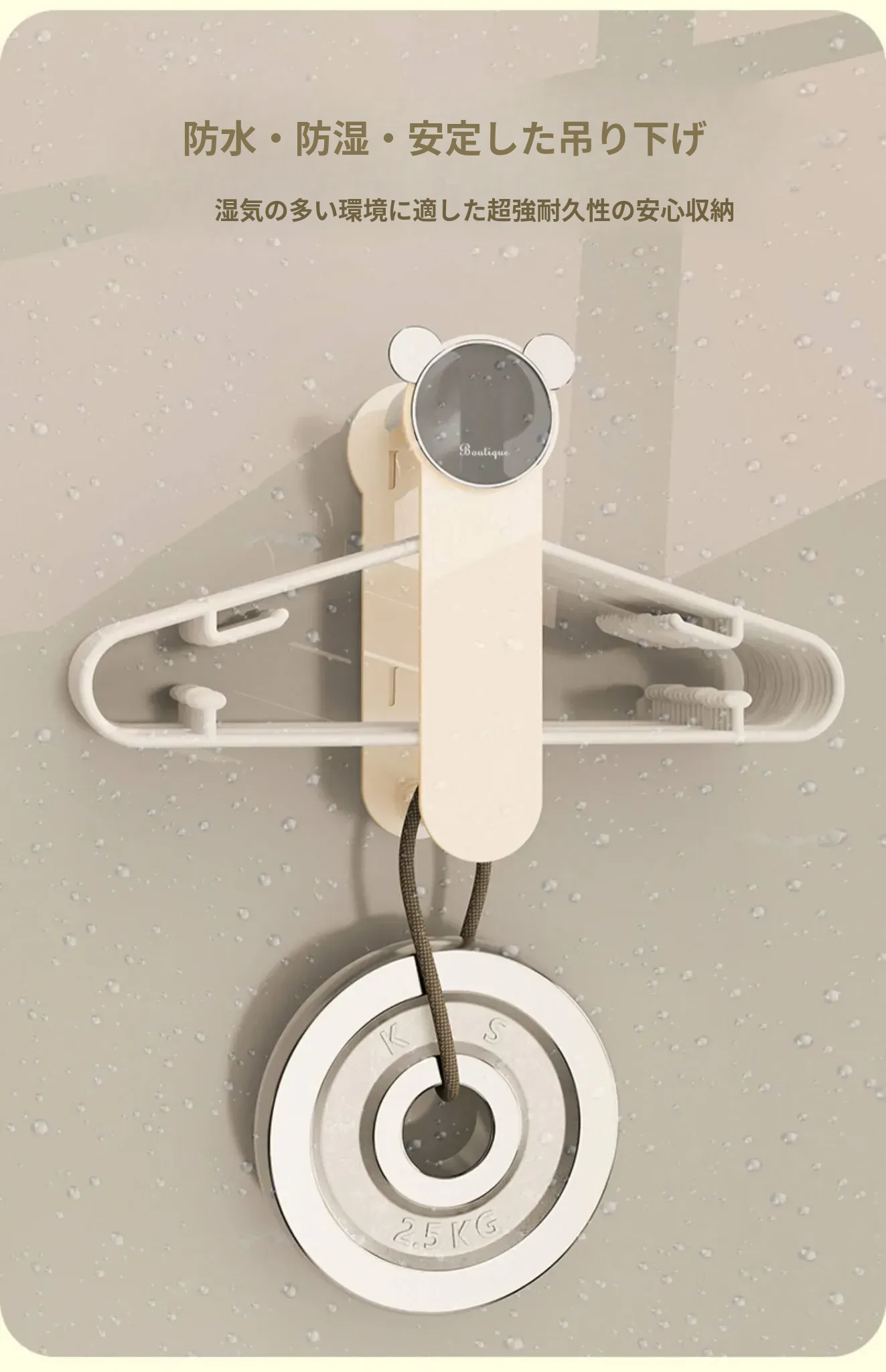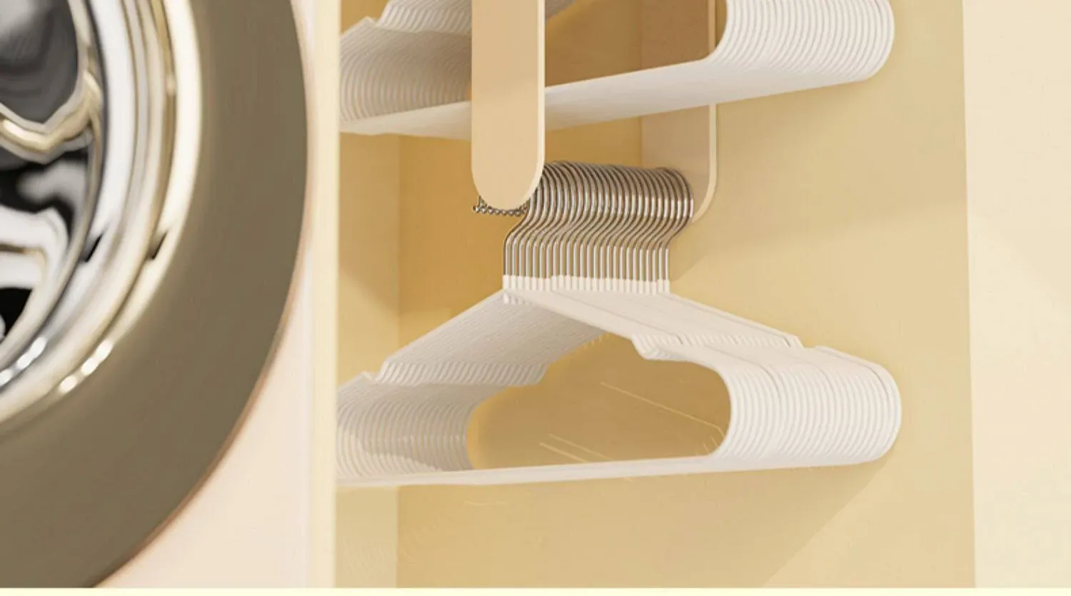 クリーム風【アップグレード粘着タイプ】ソーセージ口プレゼント 伸縮衣類ハンガー収納ラック