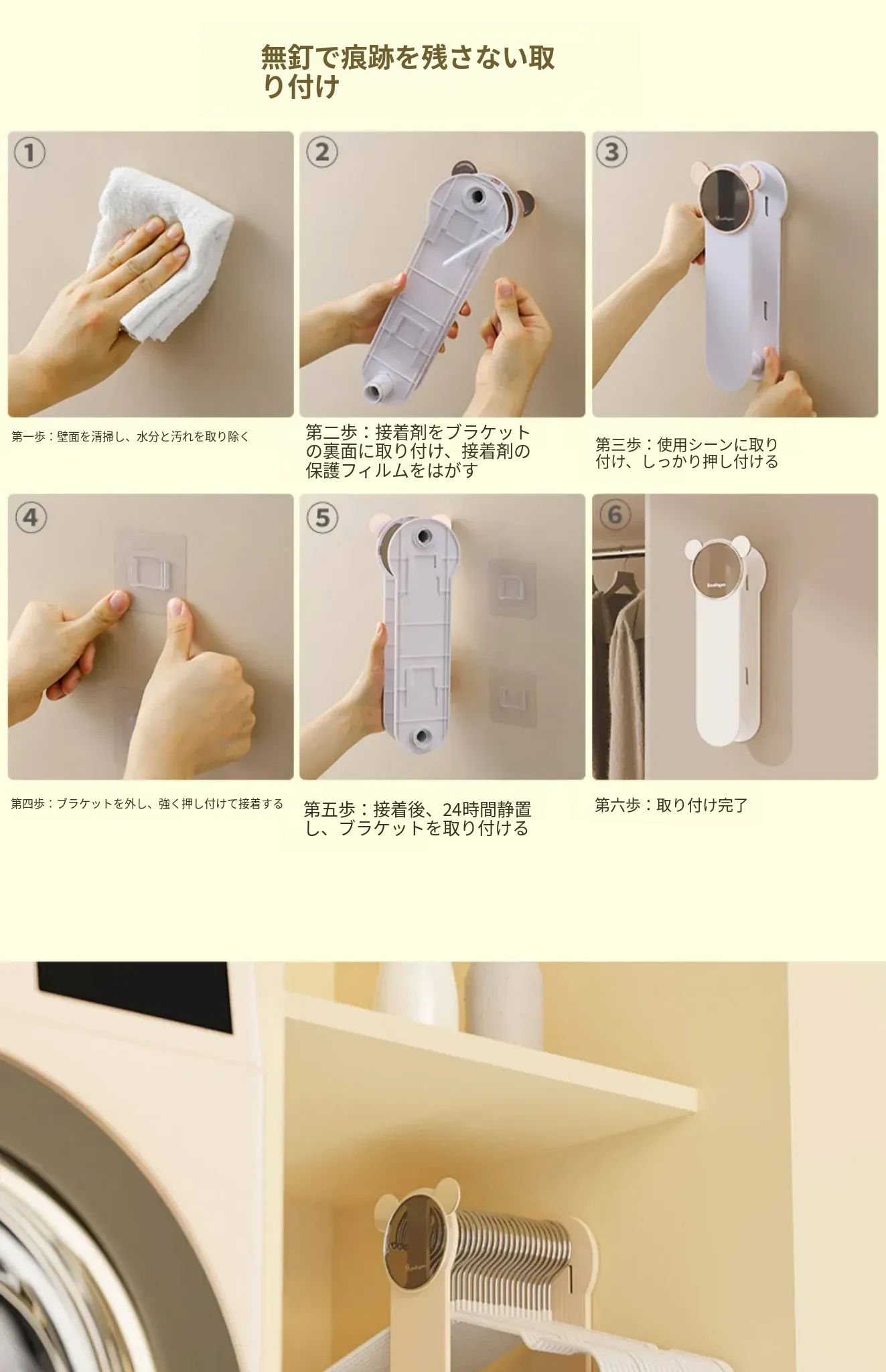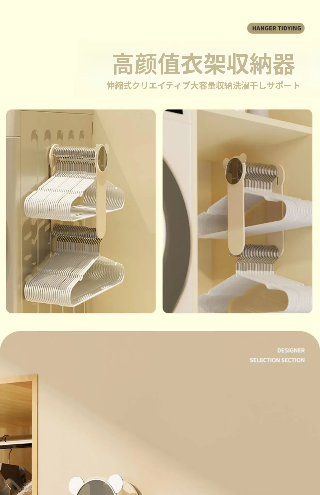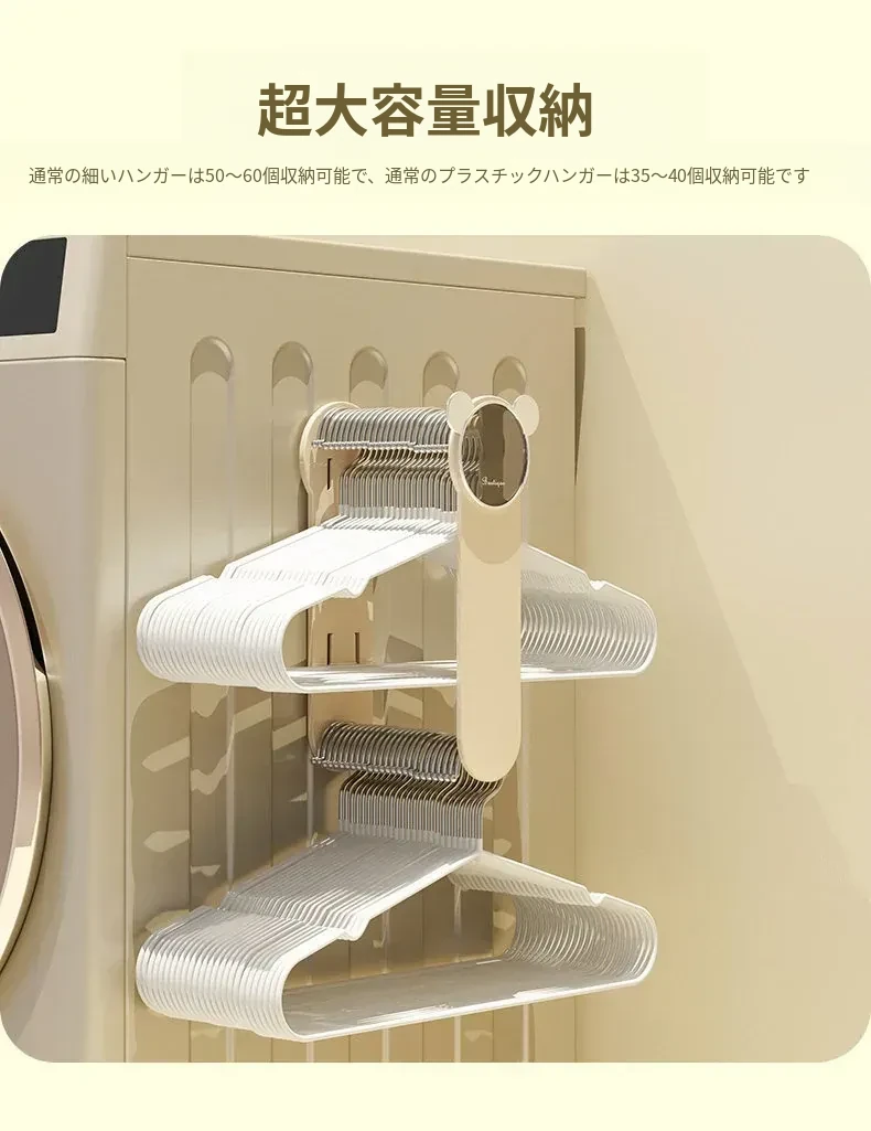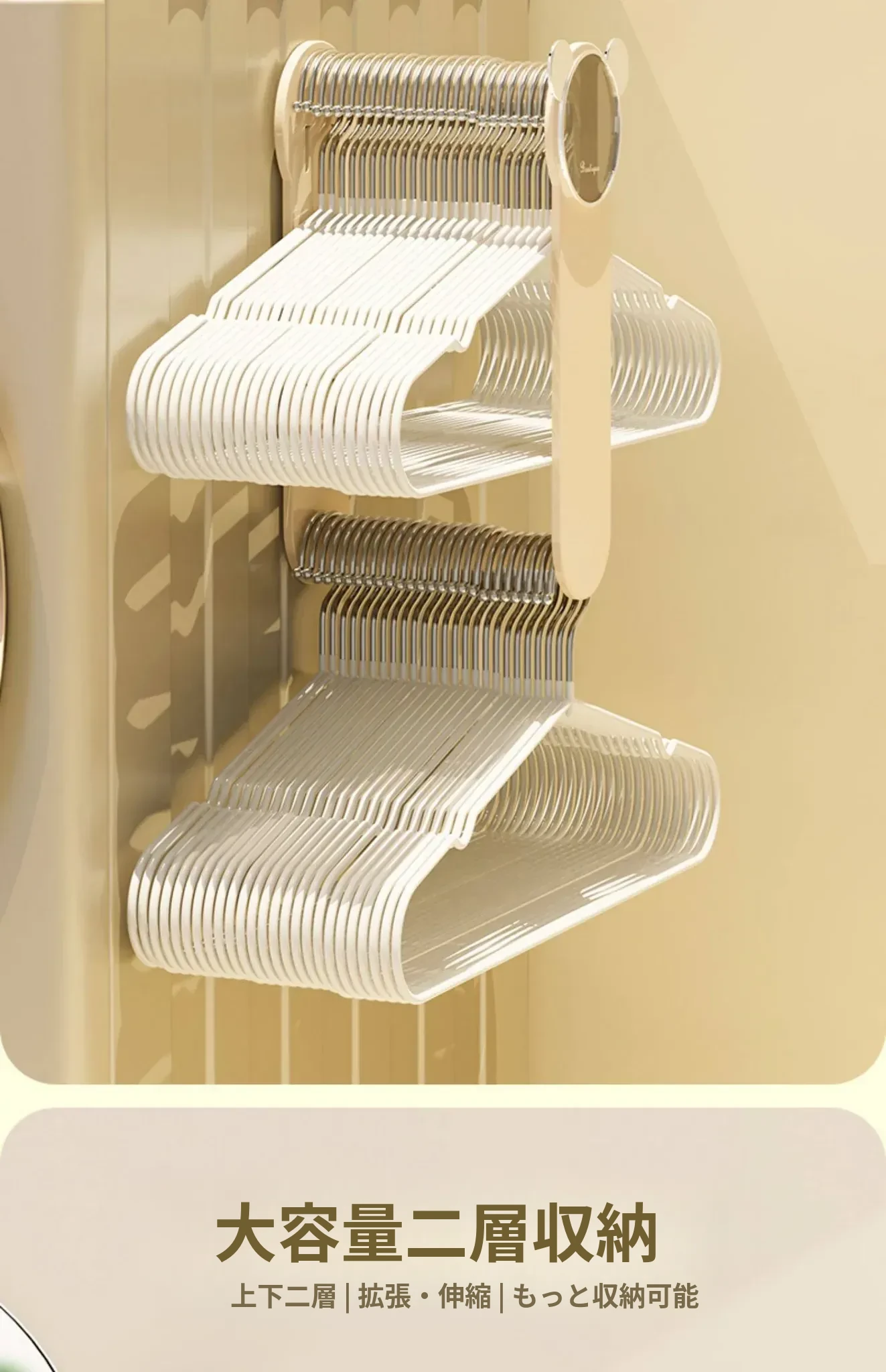 クリーム風【アップグレード粘着タイプ】伸縮衣類ハンガー収納ラック