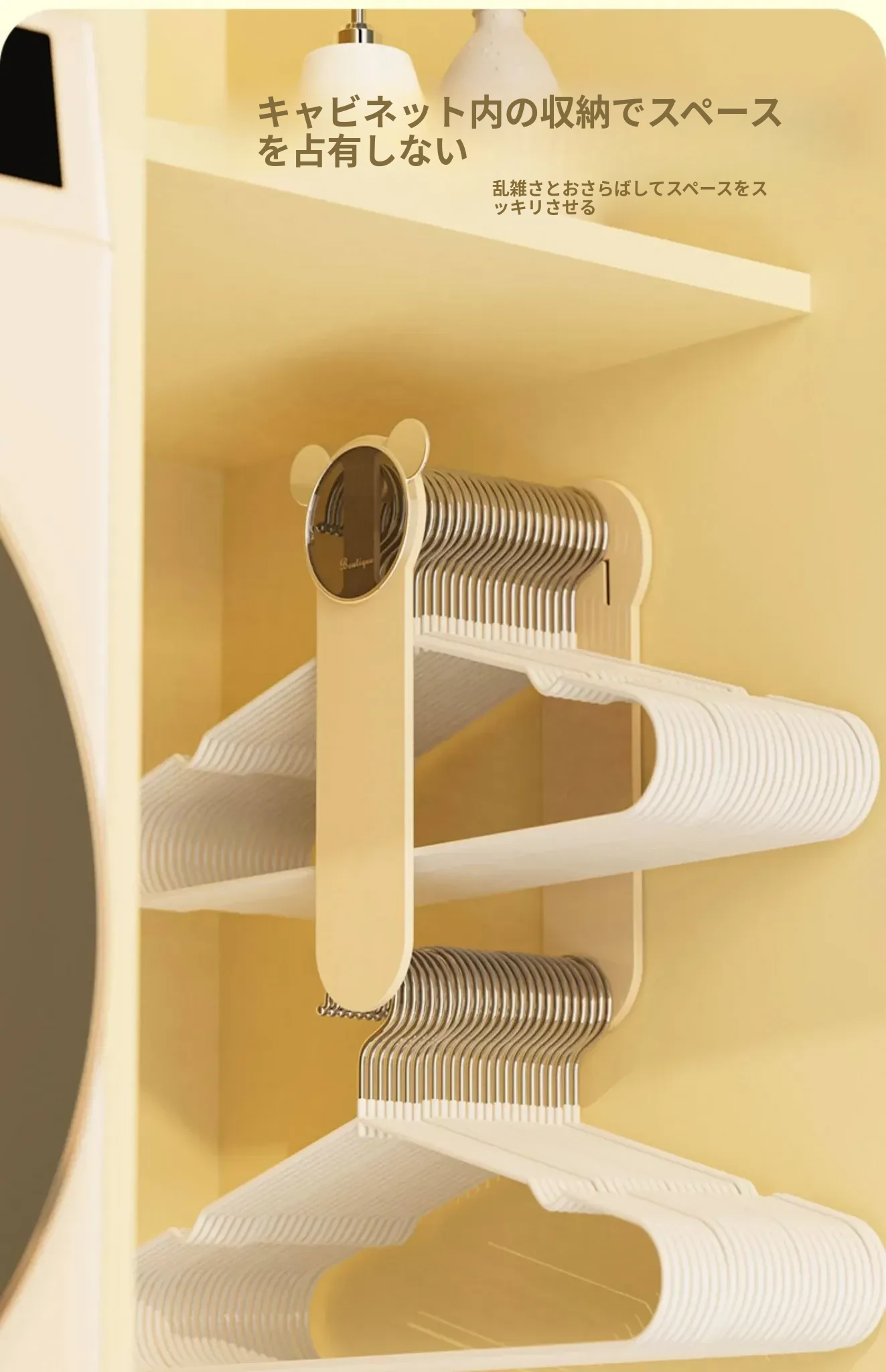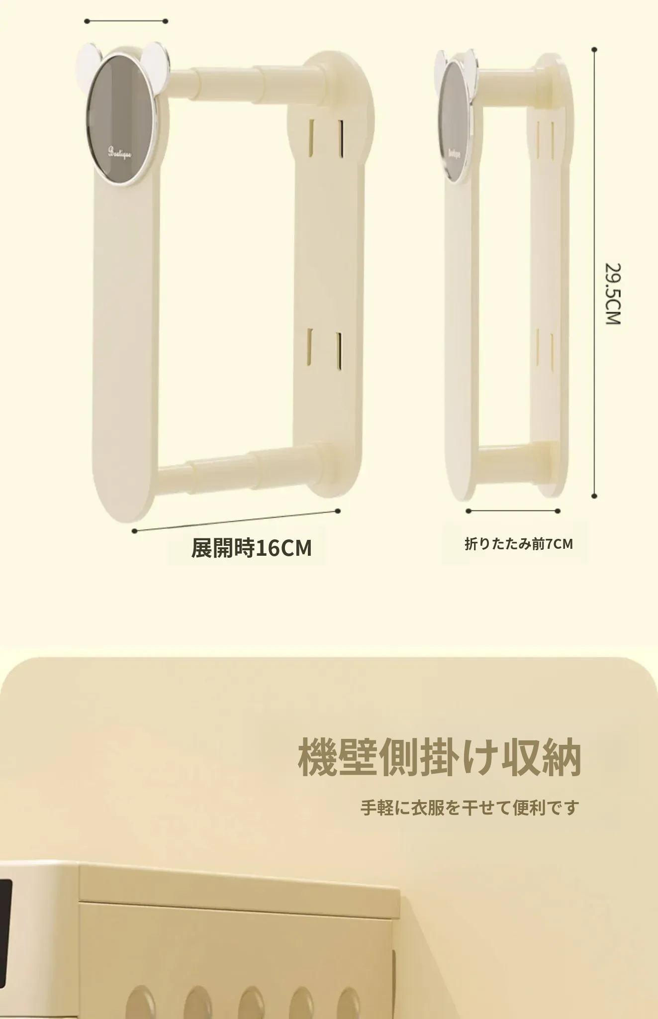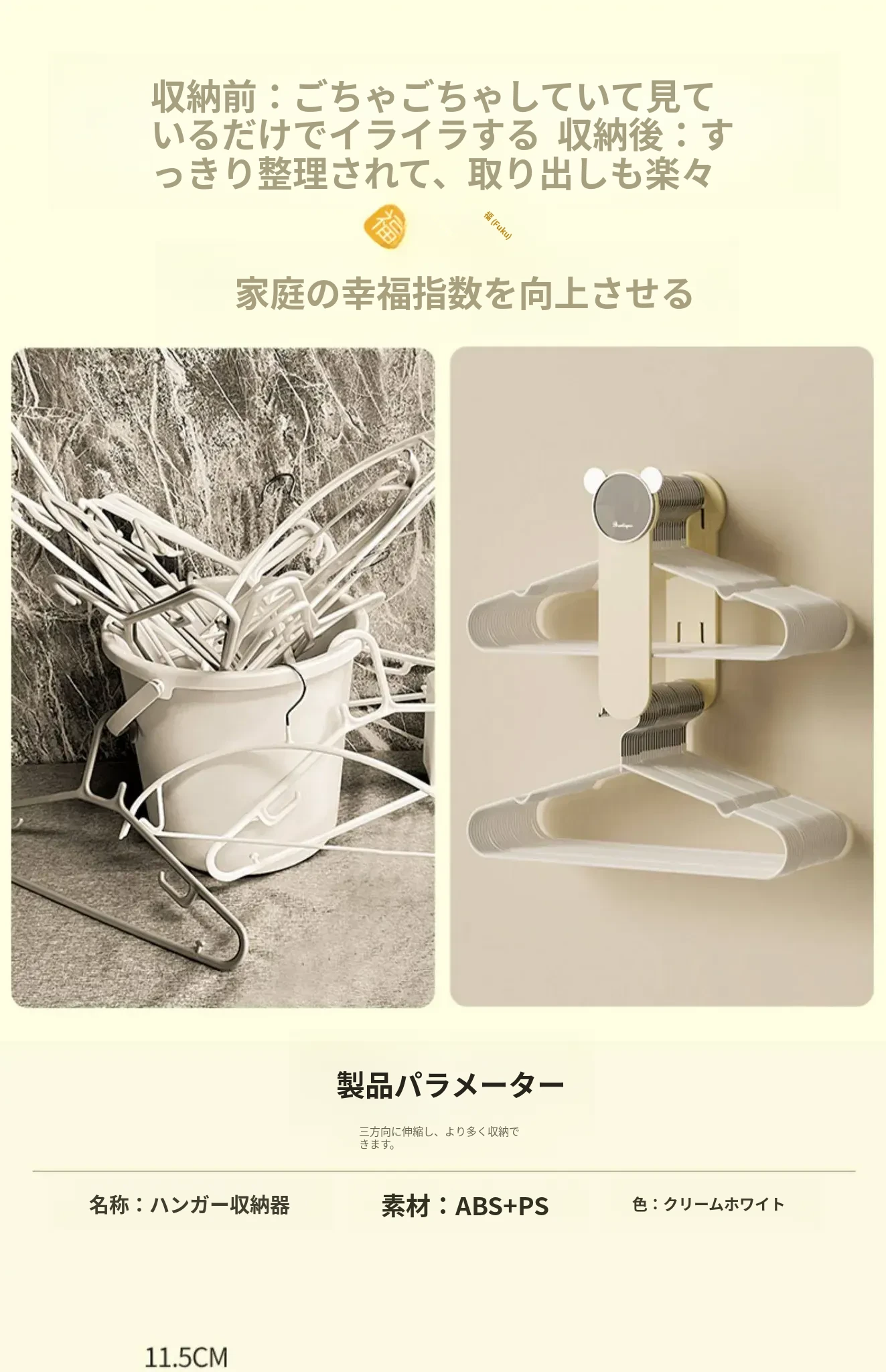 クリーム風【アップグレード粘着タイプ】伸縮衣類ハンガー収納ラック