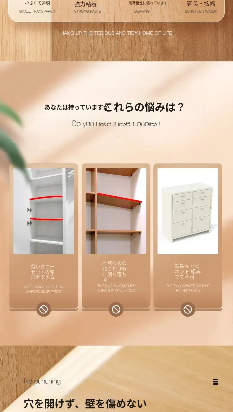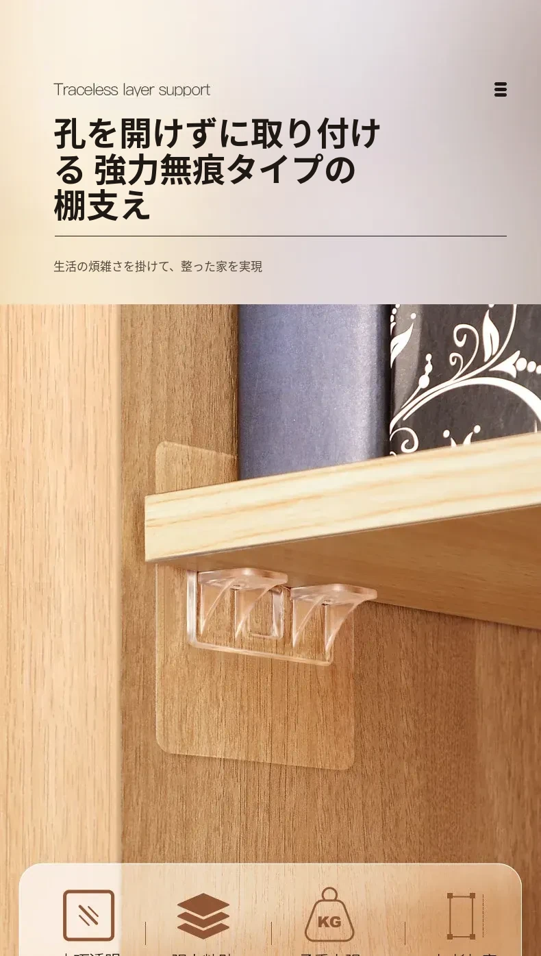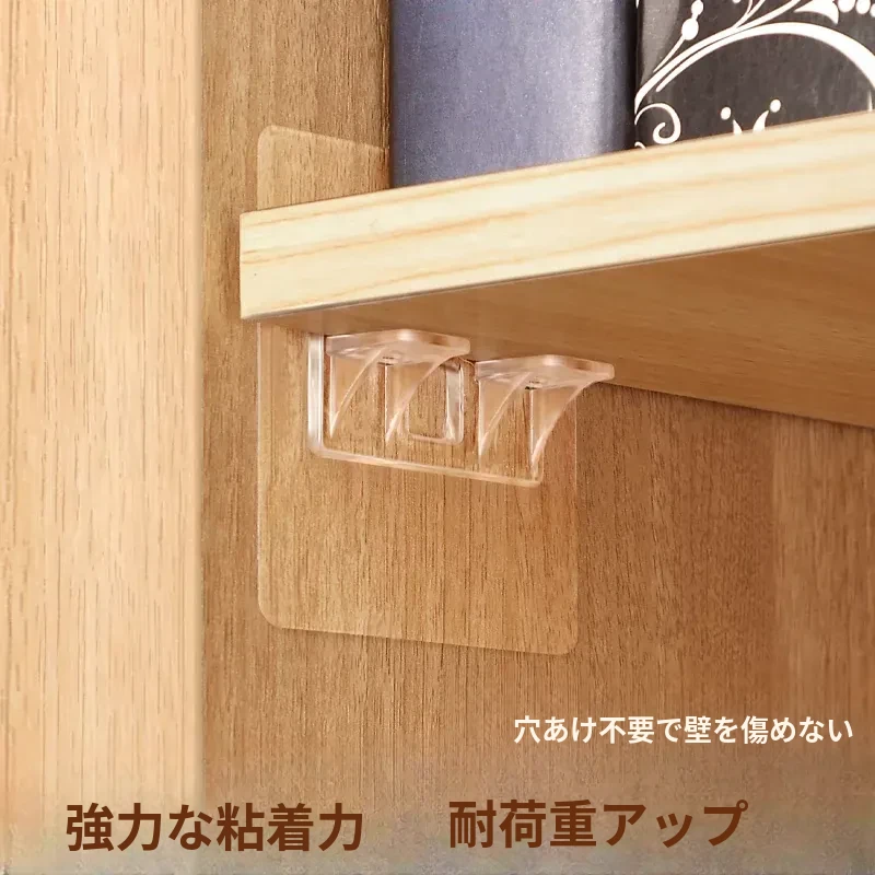 穴あけ不要!強力粘着の無痕棚受けで、クローゼットをスッキリ整理!耐荷重設計で安心して収納力アップ!お部屋のスペースを有効活用できる便利アイテムです。