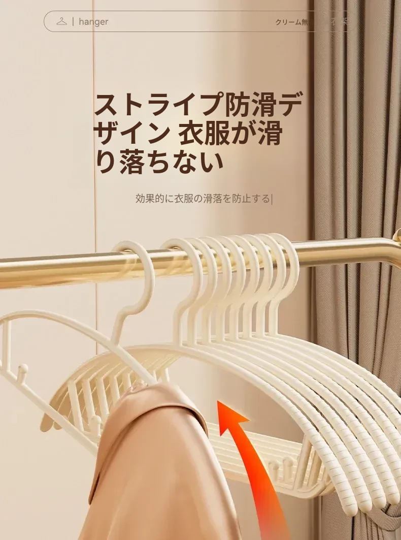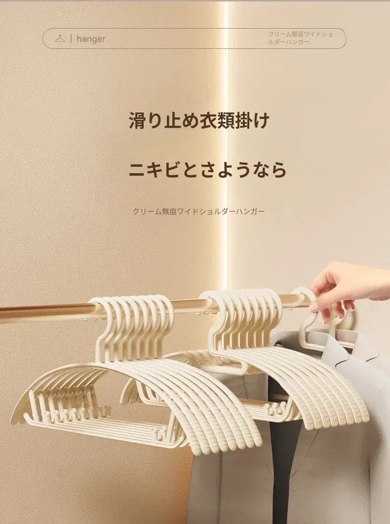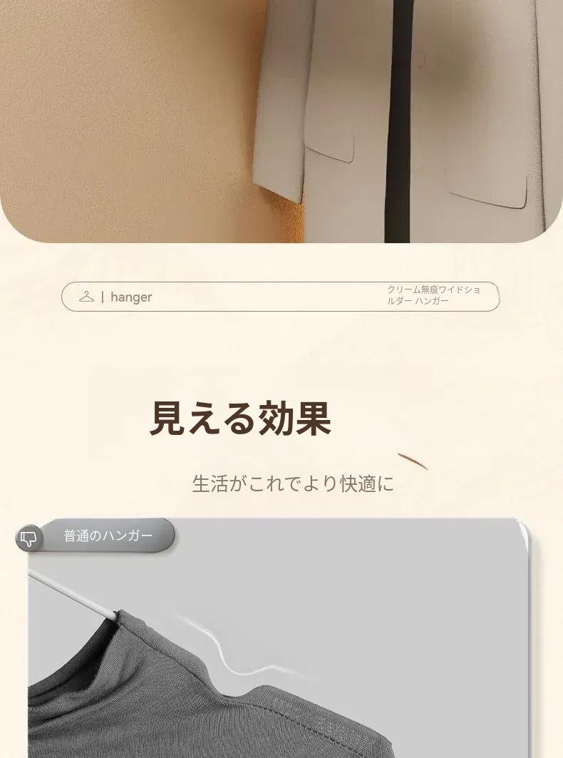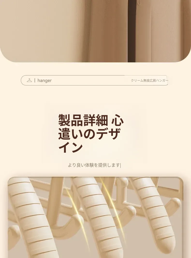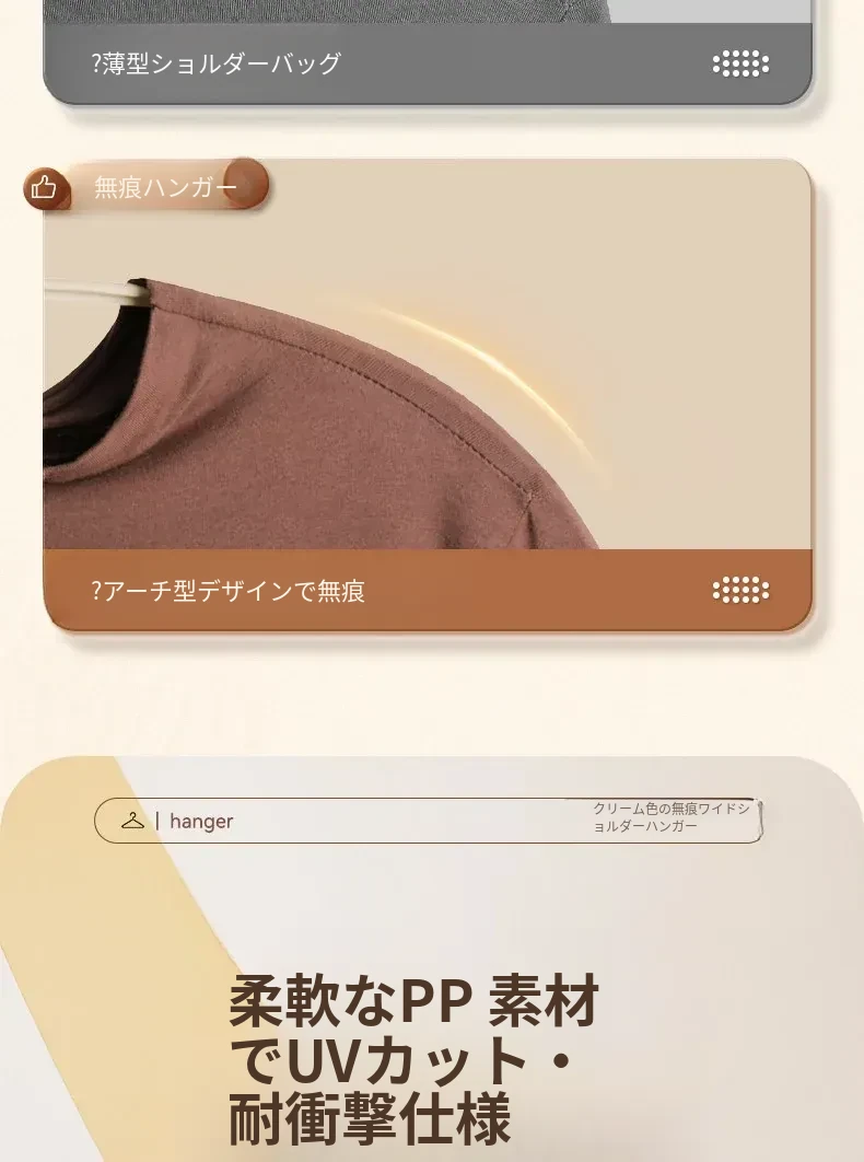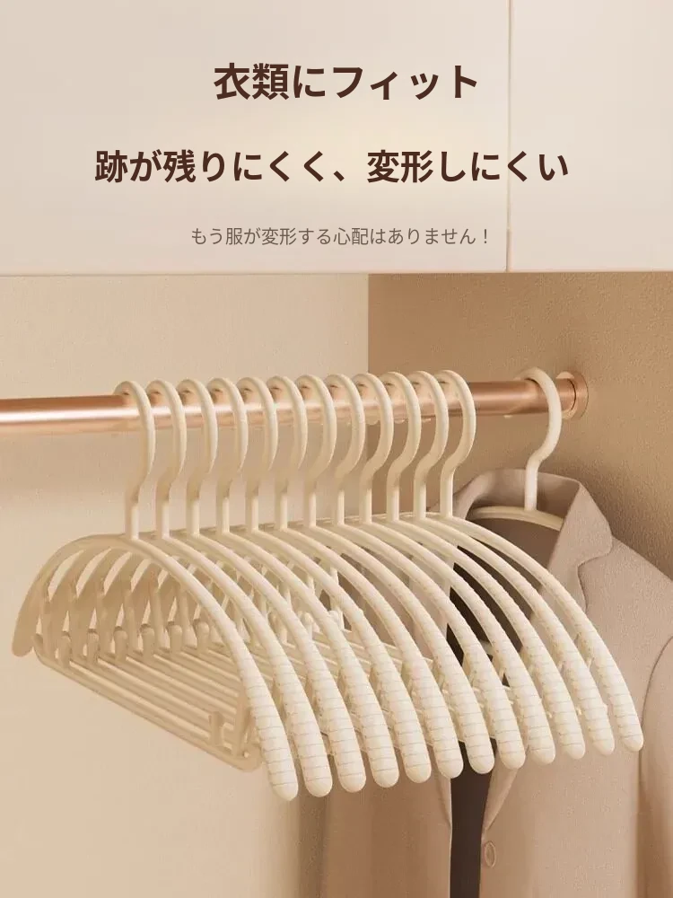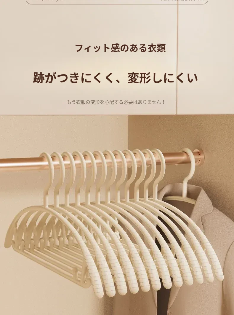 無痕デザインの家用ハンガー!肩の角を気にせず、学生寮や自宅で大活躍!衣類をしっかり支え、スマートに乾燥・収納できる便利アイテム。これで衣服のお手入れも簡単に!