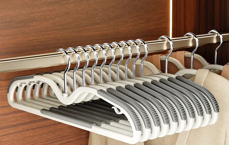 滑り止め付き短いネックの衣類ハンガー - 家庭用クローゼットに最適!肩の角を防ぎ、太めのデザインでしっかり支えられ、360度回転可能で使いやすい!シワになりにくく、衣類を美しく保つための必需品です。